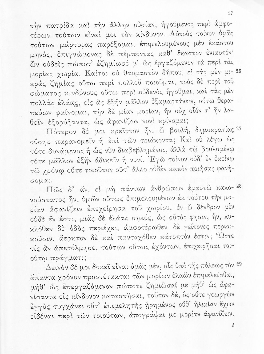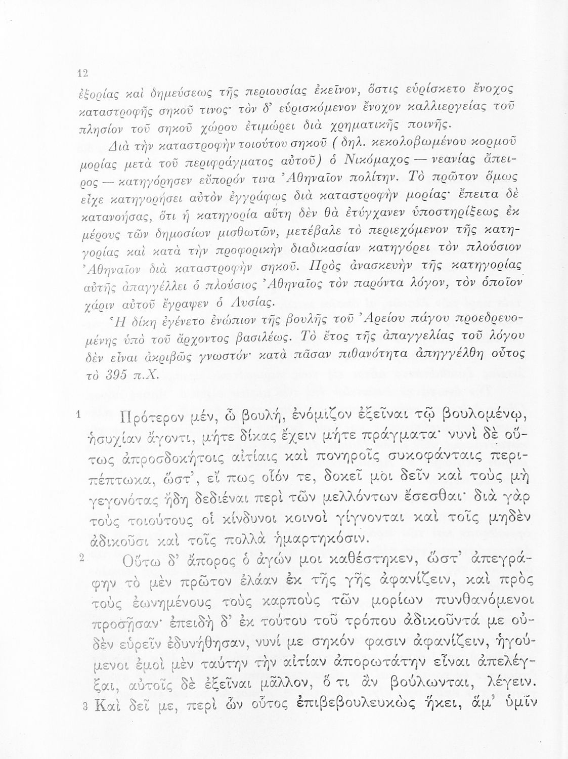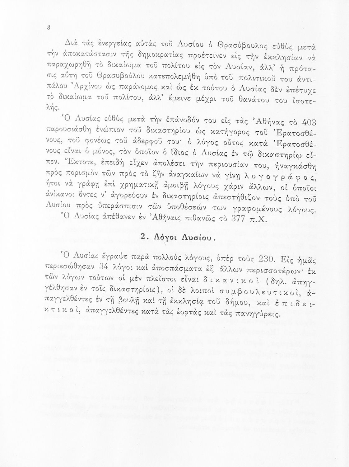 Σχολικό εγχειρίδιο Αρχαίων Ελληνικών Γ΄ Γυμνασίου που περιλαμβάνει τους Λόγους του Λυσία Περί του σηκού απολογία, Υπέρ του αδυνάτου, και Κατά των σιτοπωλών και του Ισοκράτη Προς Δημόνικον, Προς Νικοκλέα και Ευαγόρας, εισαγωγή στους Λόγους και ερμηνευτικά σχόλια.