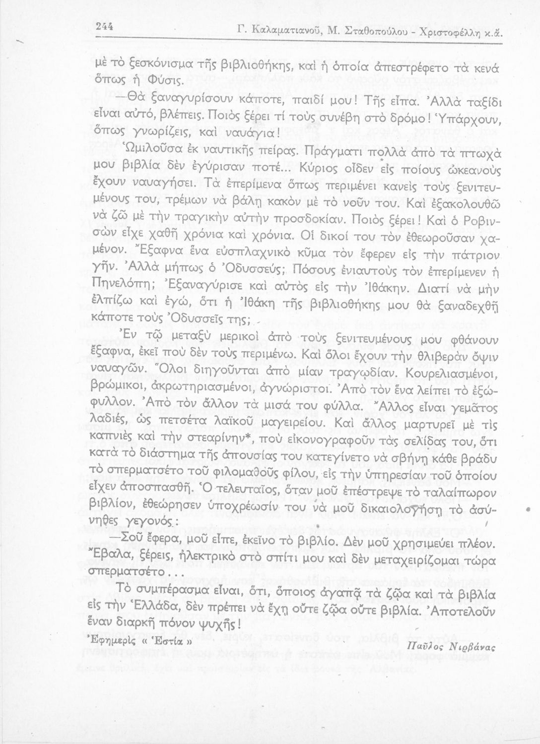 Γ. Καλαματιανός, Η. Λάγιος, Μ. Σταθοπούλου-Χριστοφέλλη