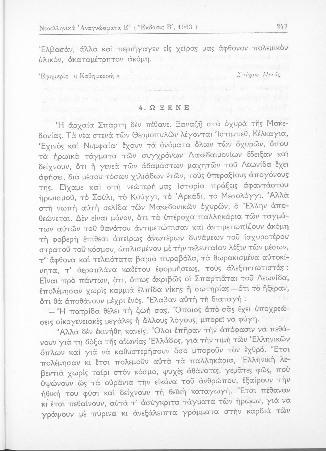 Σχολικό εγχειρίδιο Νέων Ελληνικών Δ΄ Γυμνασίου και Β΄ Αστικού Σχολείου που περιέχει πεζά και ποιήματα Ελλήνων συγγραφέων εμπνευσμένα από τη θρησκευτική και κοινωνική ζωή, την ελληνική μυθολογία, την αρχαία και