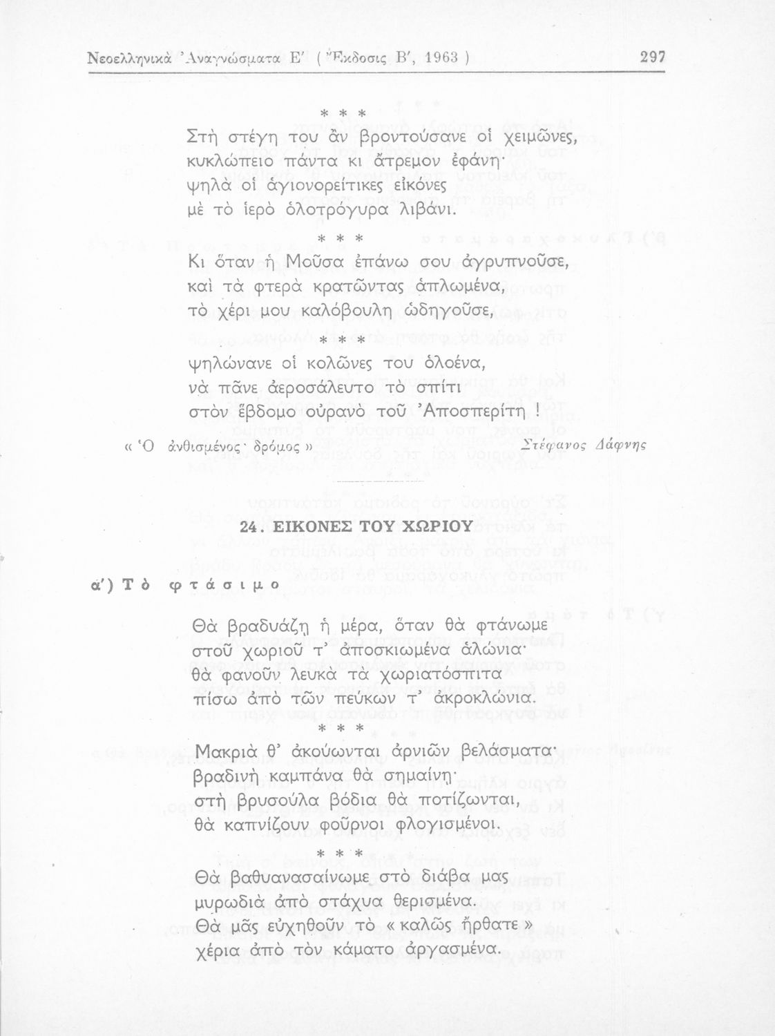 Σχολικό εγχειρίδιο Νέων Ελληνικών Δ΄ Γυμνασίου και Β΄ Αστικού Σχολείου που περιέχει πεζά και ποιήματα Ελλήνων συγγραφέων εμπνευσμένα από τη θρησκευτική και κοινωνική ζωή, την ελληνική μυθολογία, την αρχαία και