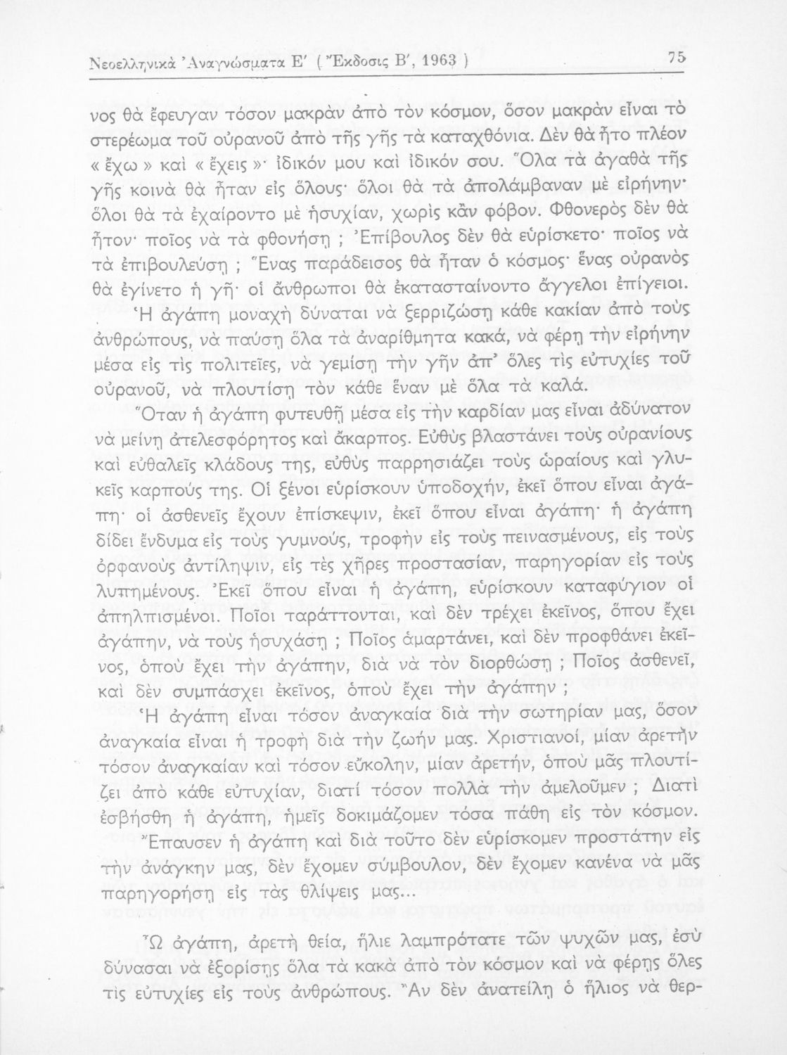 Σχολικό εγχειρίδιο Νέων Ελληνικών Δ΄ Γυμνασίου και Β΄ Αστικού Σχολείου που περιέχει πεζά και ποιήματα Ελλήνων συγγραφέων εμπνευσμένα από τη θρησκευτική και κοινωνική ζωή, την ελληνική μυθολογία, την αρχαία και
