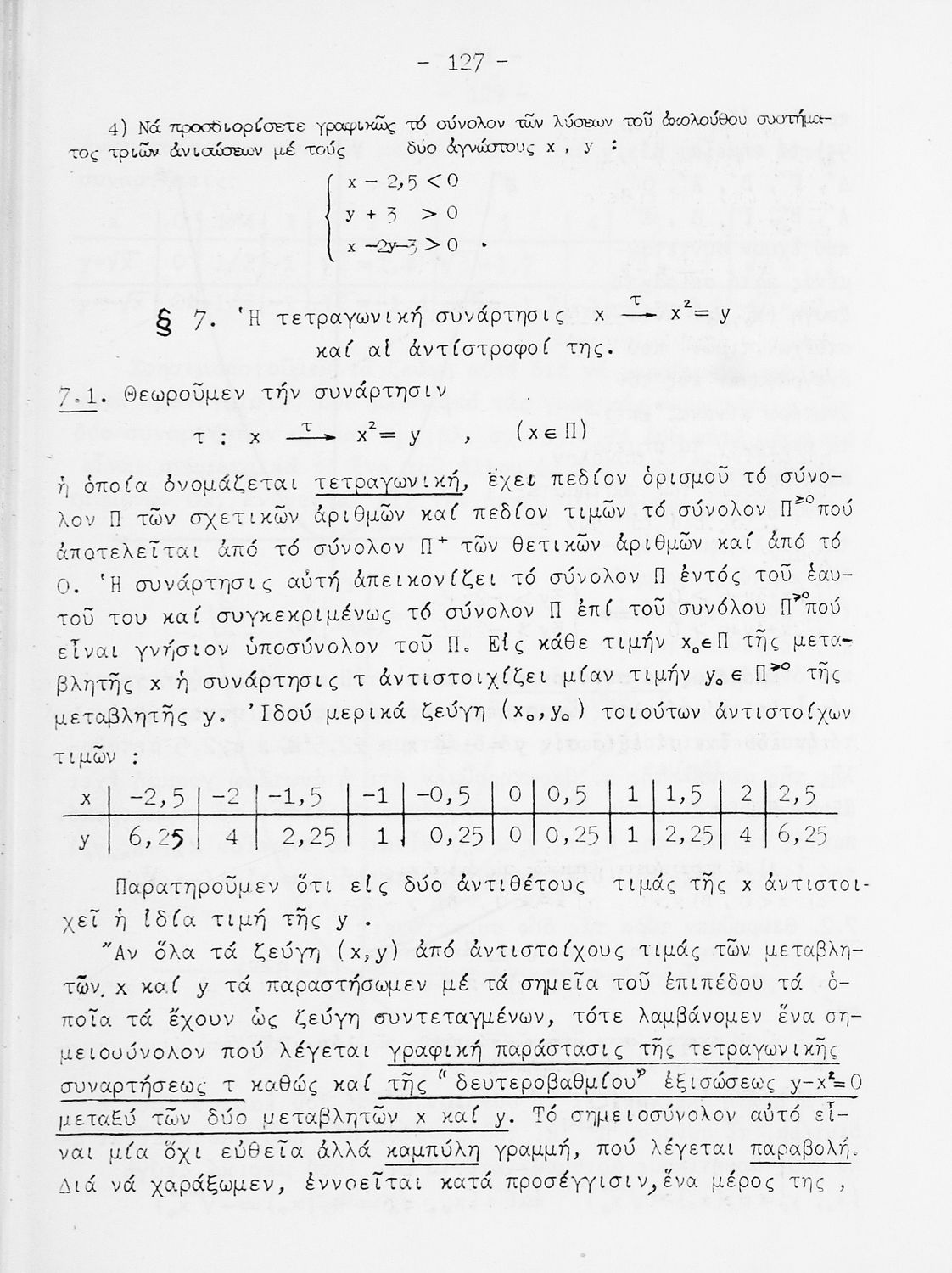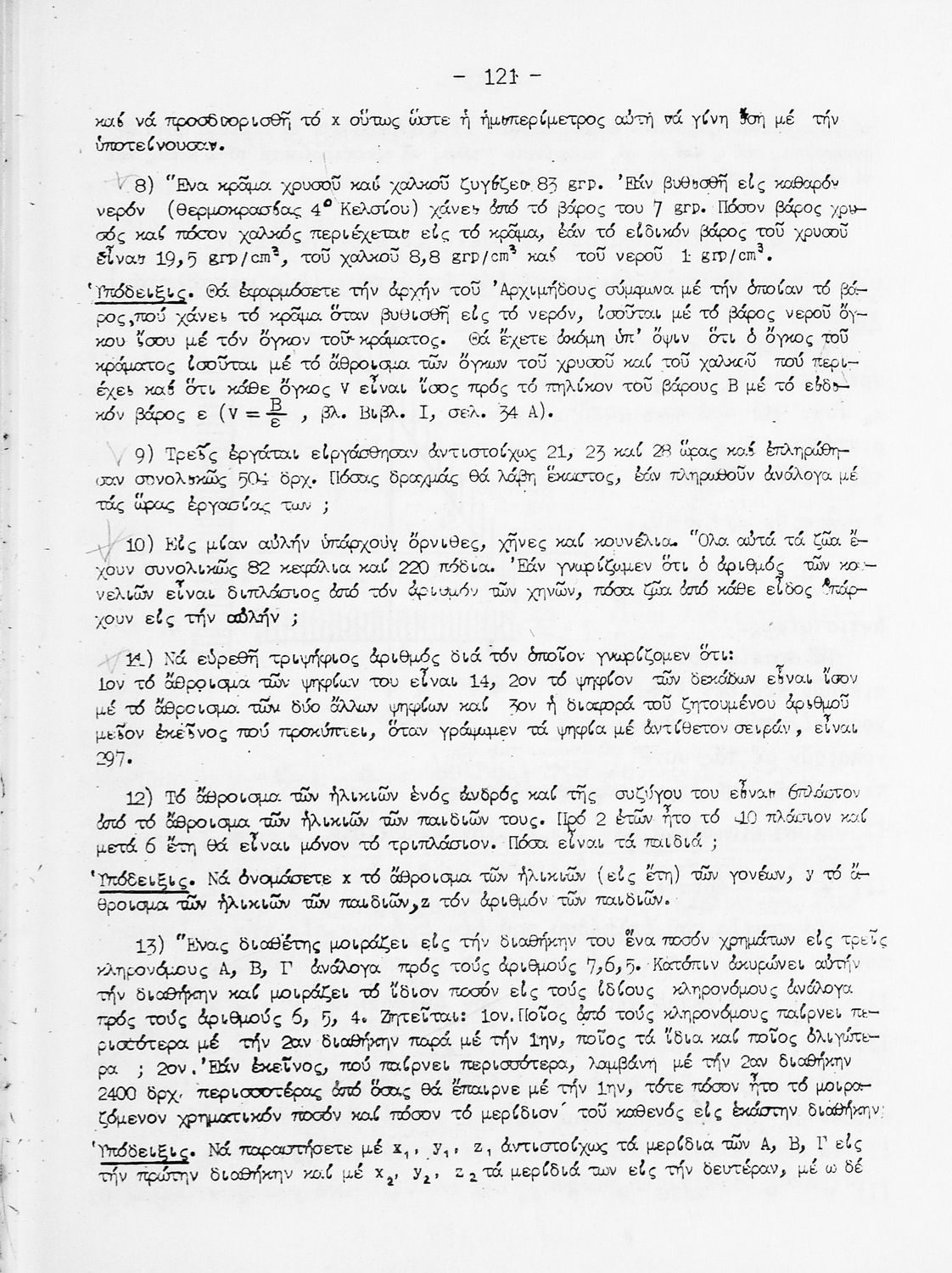 Τάξη:  Α' Γυμνασίου / Β' Γυμνασίου / Γ' Γυμνασίου / Ανωτέρα Παρθεναγωγεία