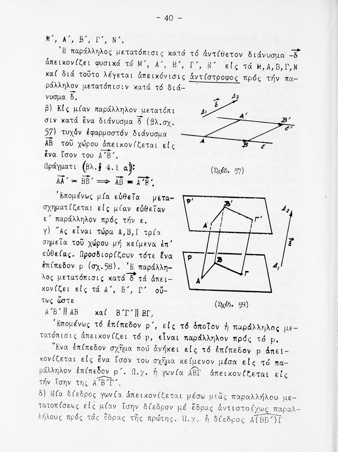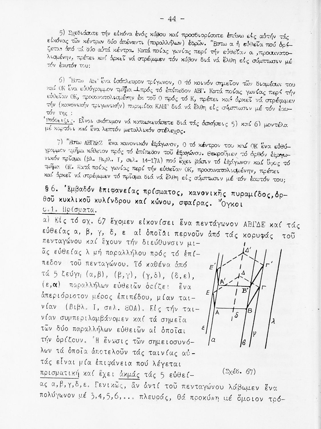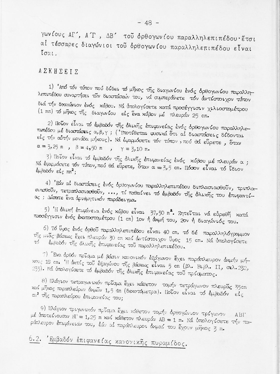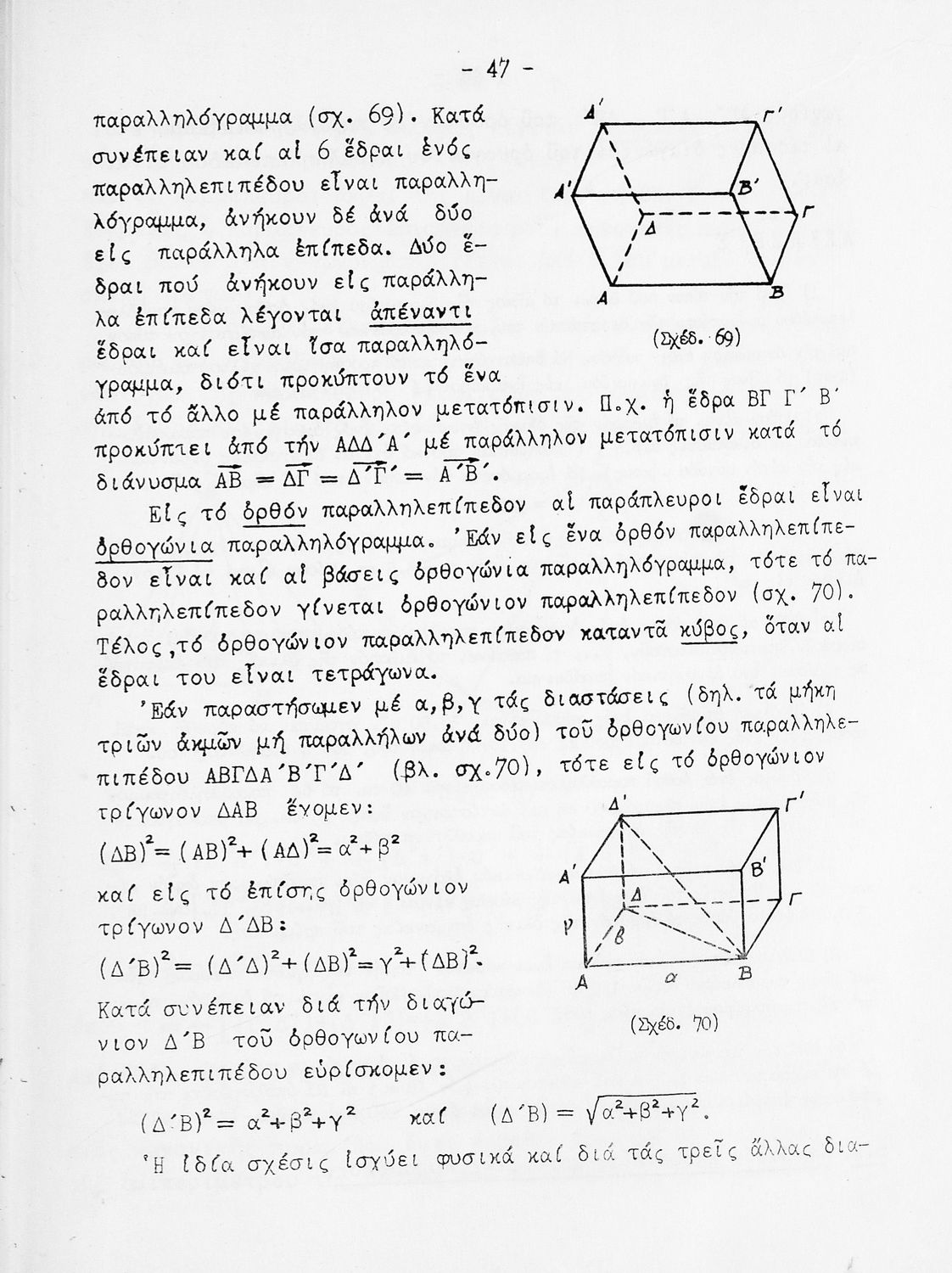 Σχολικό εγχειρίδιο Γεωμετρίας για τις Α΄, Β΄, Γ΄ Γυμνασίου που είναι χωρισμένο σε Επιπεδομετρία και Στερεομετρία και περιλαμβάνει θεωρία και ασκήσεις.