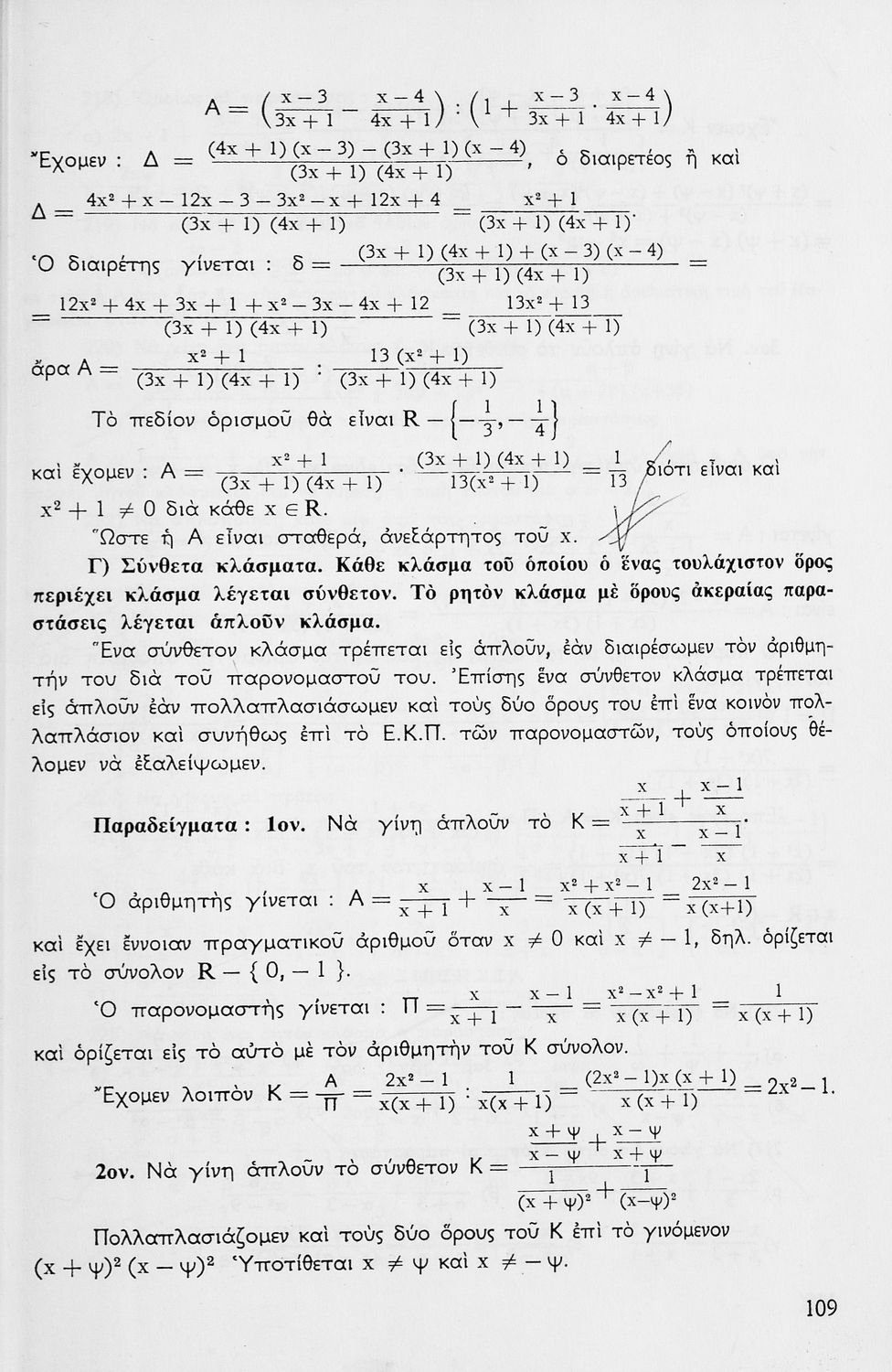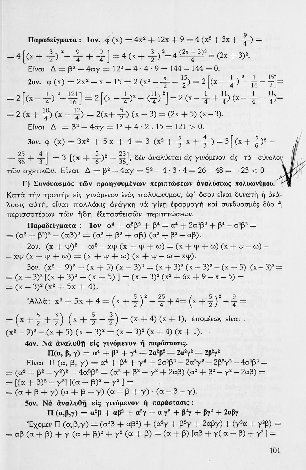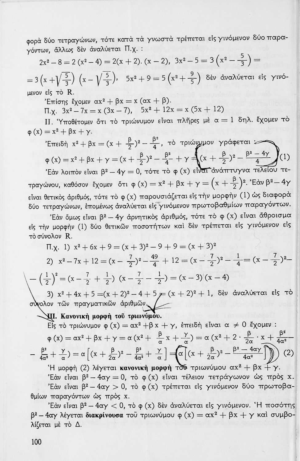 Σχολικό εγχειρίδιο μαθηματικών Γ΄ Γυμνασίου που περιλαμβάνει θεωρία, παραδείγματα και ασκήσεις. Φέρει το σύμβολο της δικτατορίας.