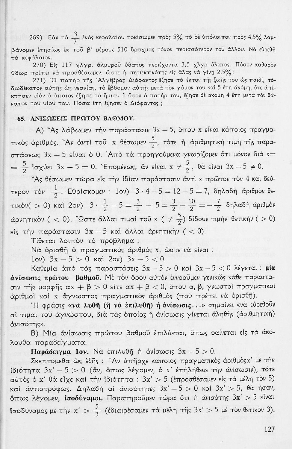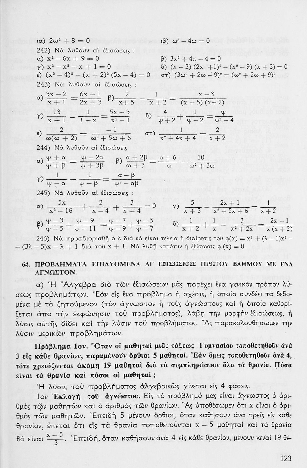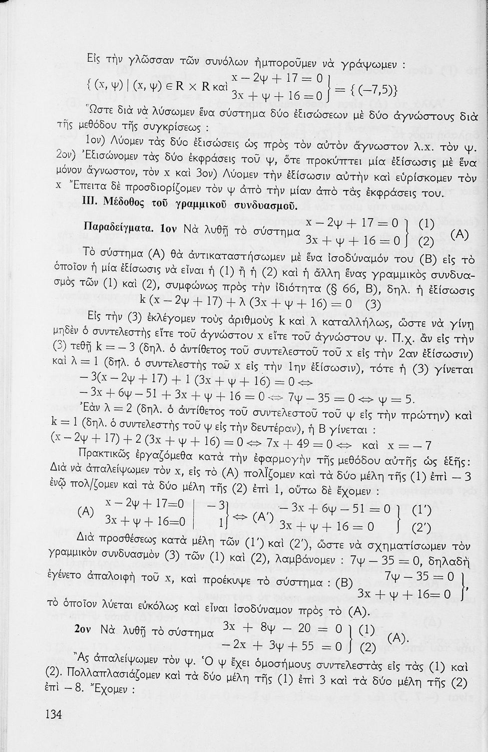 Σχολικό εγχειρίδιο μαθηματικών Γ΄ Γυμνασίου που περιλαμβάνει θεωρία, παραδείγματα και ασκήσεις. Φέρει το σύμβολο της δικτατορίας.