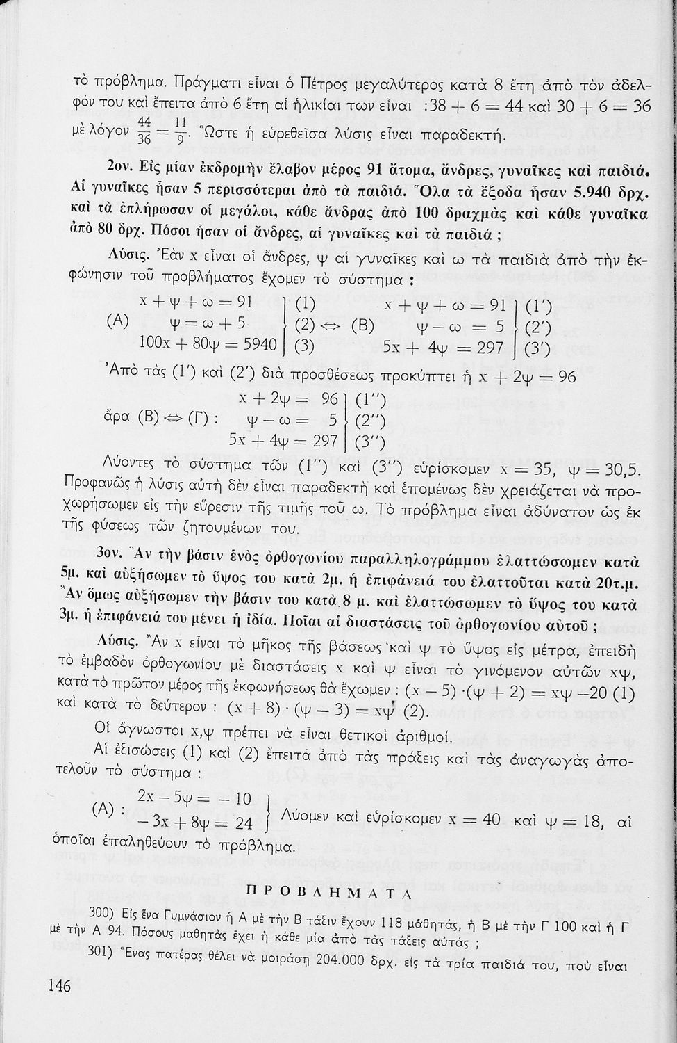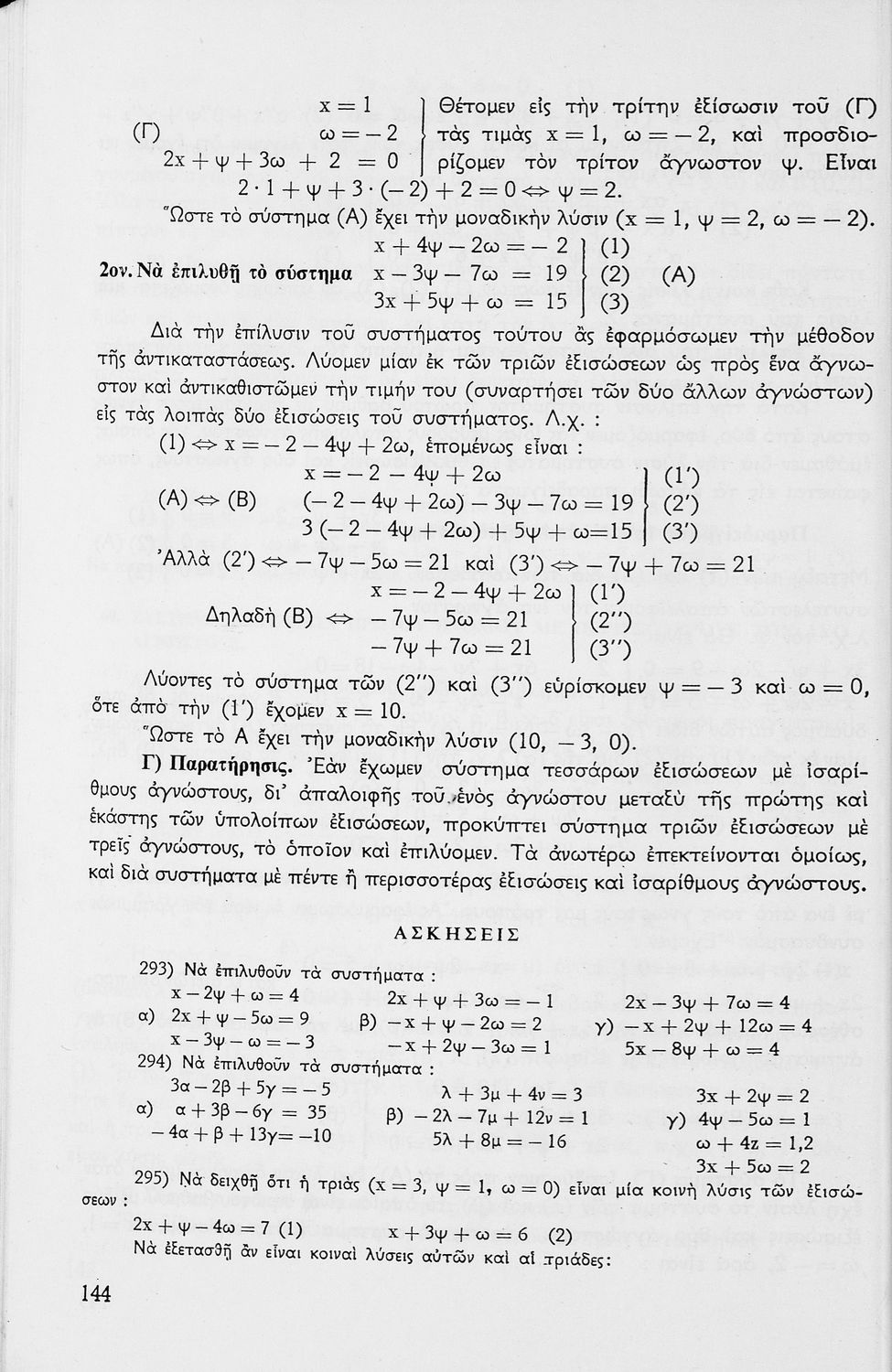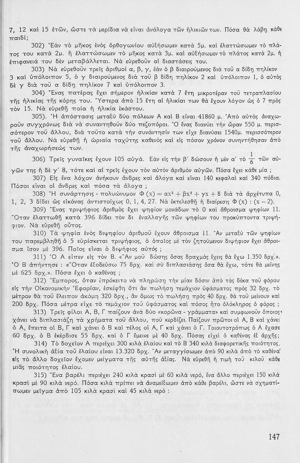 Σχολικό εγχειρίδιο μαθηματικών Γ΄ Γυμνασίου που περιλαμβάνει θεωρία, παραδείγματα και ασκήσεις. Φέρει το σύμβολο της δικτατορίας.