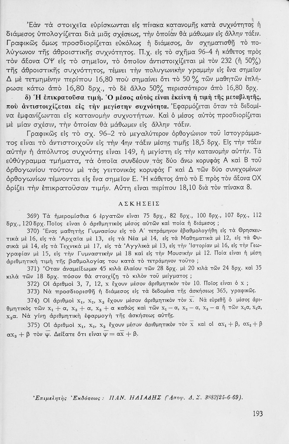 Βαθμίδα εκπαίδευσης: Δευτεροβάθμια Τάξη: Γ' Γυμνασίου Μάθημα: Μαθηματικά Γλώσσα: Απλή καθαρεύουσα Παρουσίαση περιεχομένου: Σχολικό εγχειρίδιο μαθηματικών Γ΄ Γυμνασίου που περιλαμβάνει θεωρία, παραδείγματα και ασκήσεις. Φέρει το σύμβολο της δικτατορίας. |