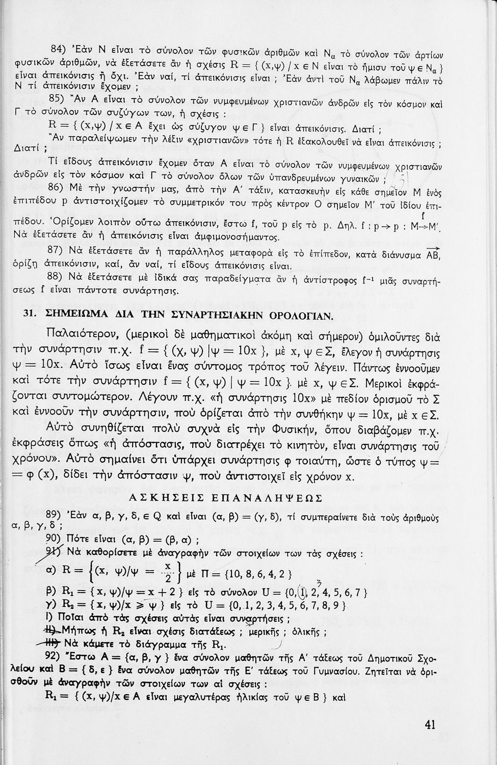 Βαθμίδα εκπαίδευσης: Δευτεροβάθμια Τάξη: Γ' Γυμνασίου Μάθημα: Μαθηματικά Γλώσσα: Απλή καθαρεύουσα Παρουσίαση περιεχομένου: Σχολικό εγχειρίδιο μαθηματικών Γ΄ Γυμνασίου που περιλαμβάνει θεωρία, παραδείγματα και ασκήσεις. Φέρει το σύμβολο της δικτατορίας. |