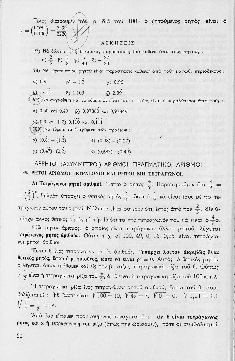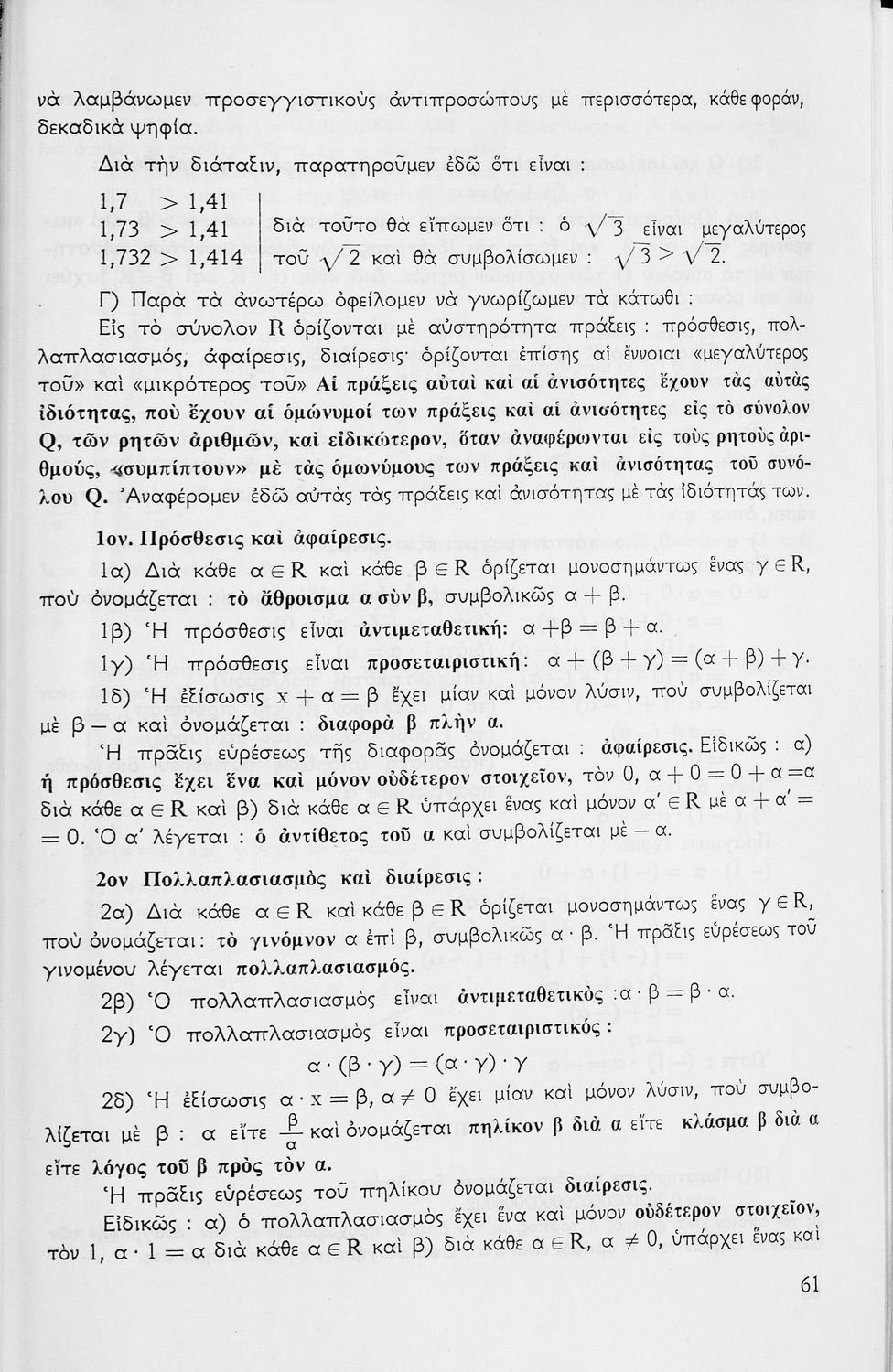Σχολικό εγχειρίδιο μαθηματικών Γ΄ Γυμνασίου που περιλαμβάνει θεωρία, παραδείγματα και ασκήσεις. Φέρει το σύμβολο της δικτατορίας.