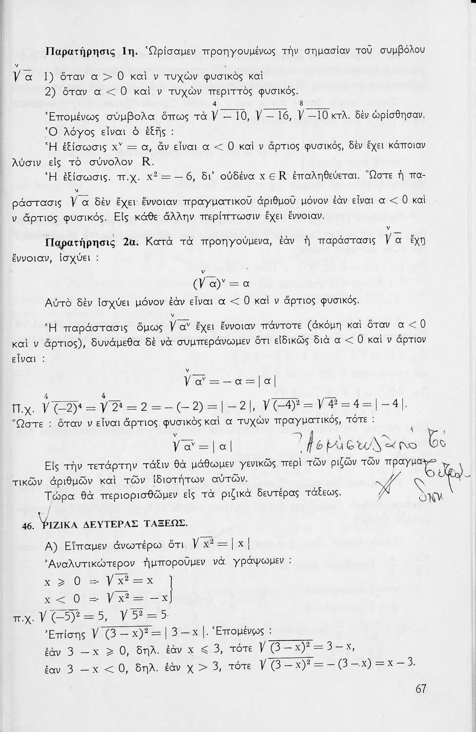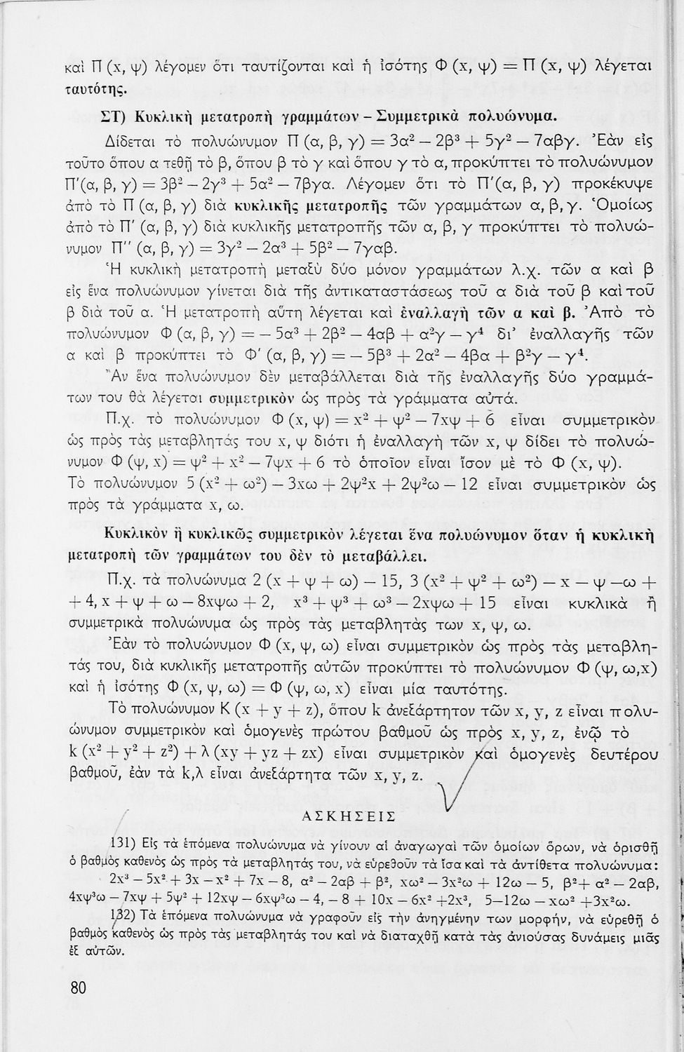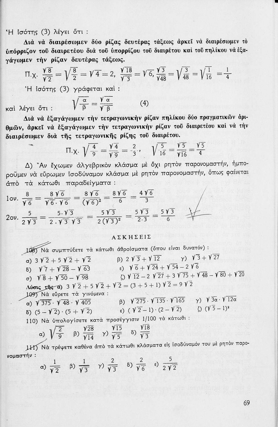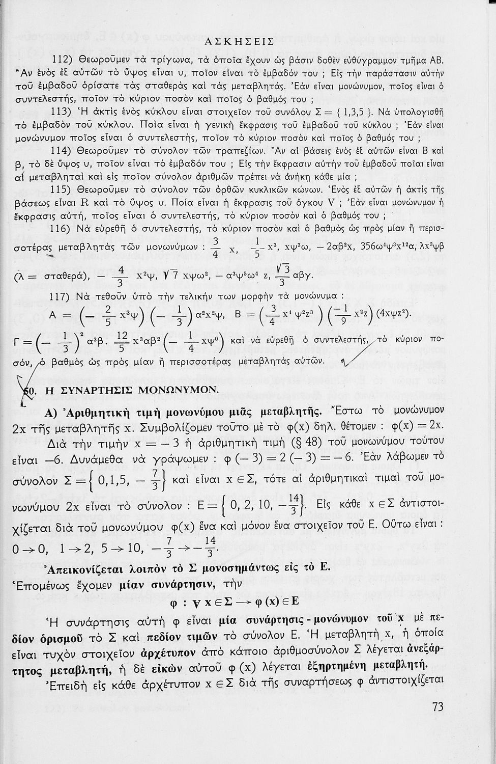 Σχολικό εγχειρίδιο μαθηματικών Γ΄ Γυμνασίου που περιλαμβάνει θεωρία, παραδείγματα και ασκήσεις. Φέρει το σύμβολο της δικτατορίας.