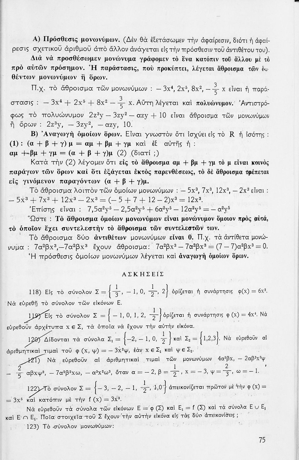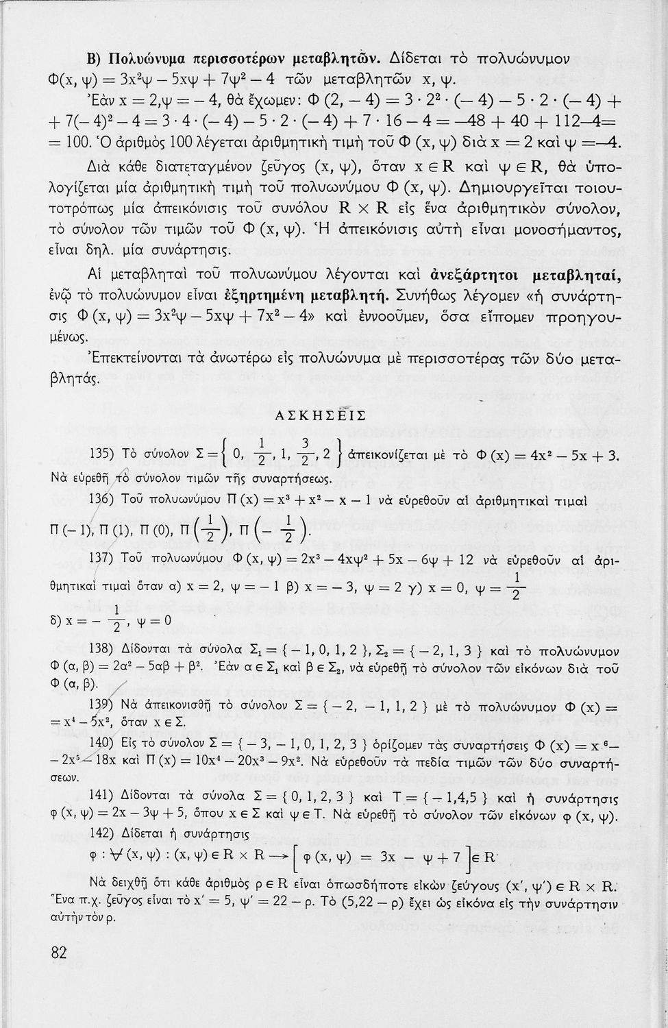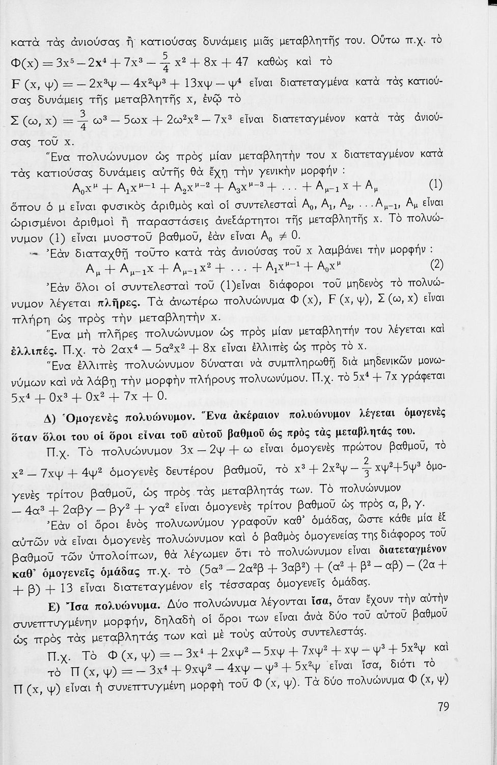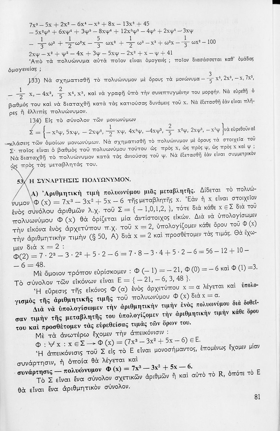 Σχολικό εγχειρίδιο μαθηματικών Γ΄ Γυμνασίου που περιλαμβάνει θεωρία, παραδείγματα και ασκήσεις. Φέρει το σύμβολο της δικτατορίας.