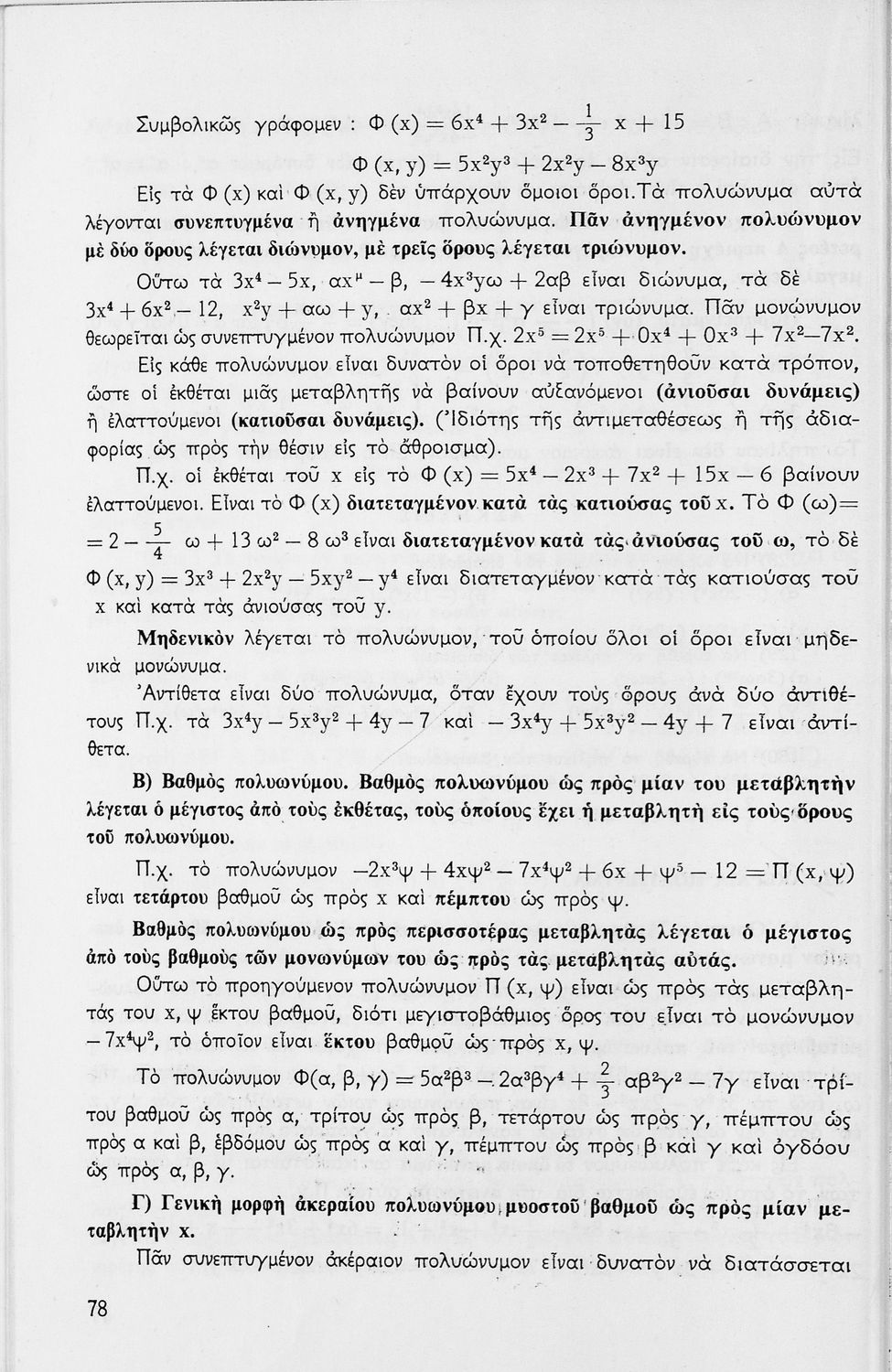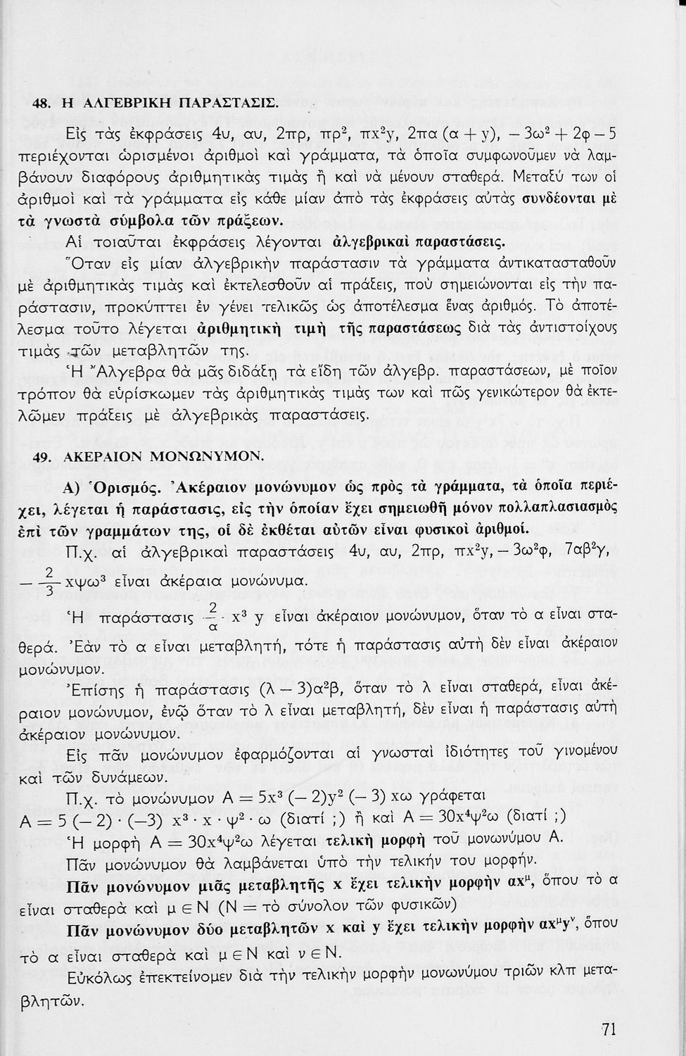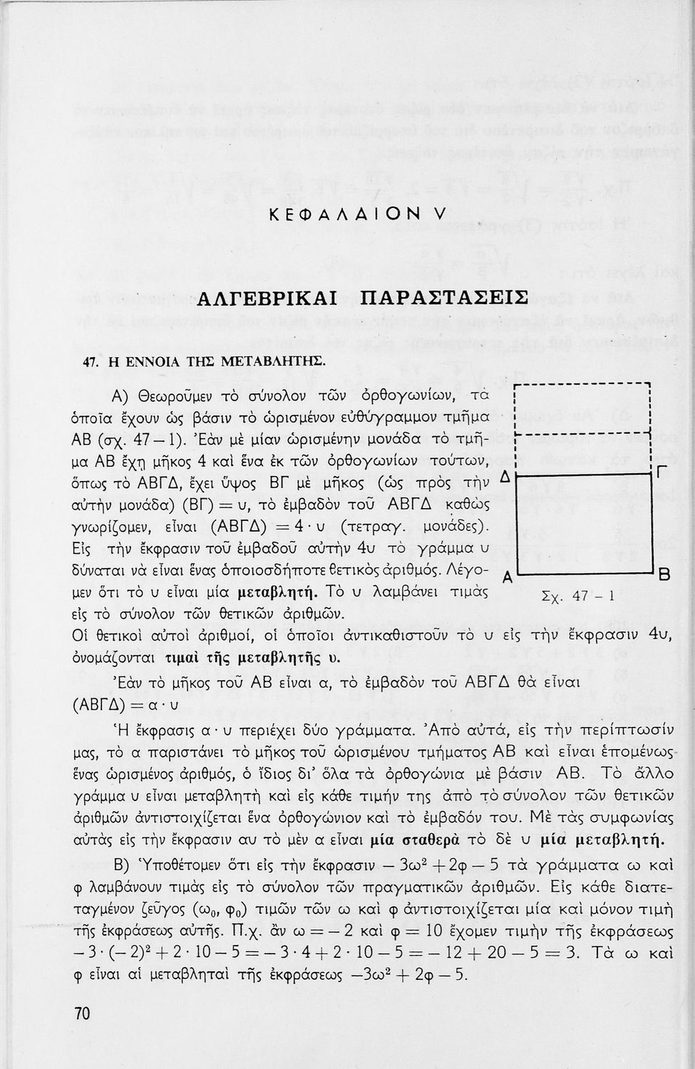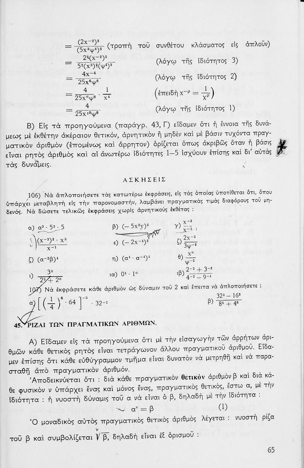 Σχολικό εγχειρίδιο μαθηματικών Γ΄ Γυμνασίου που περιλαμβάνει θεωρία, παραδείγματα και ασκήσεις. Φέρει το σύμβολο της δικτατορίας.