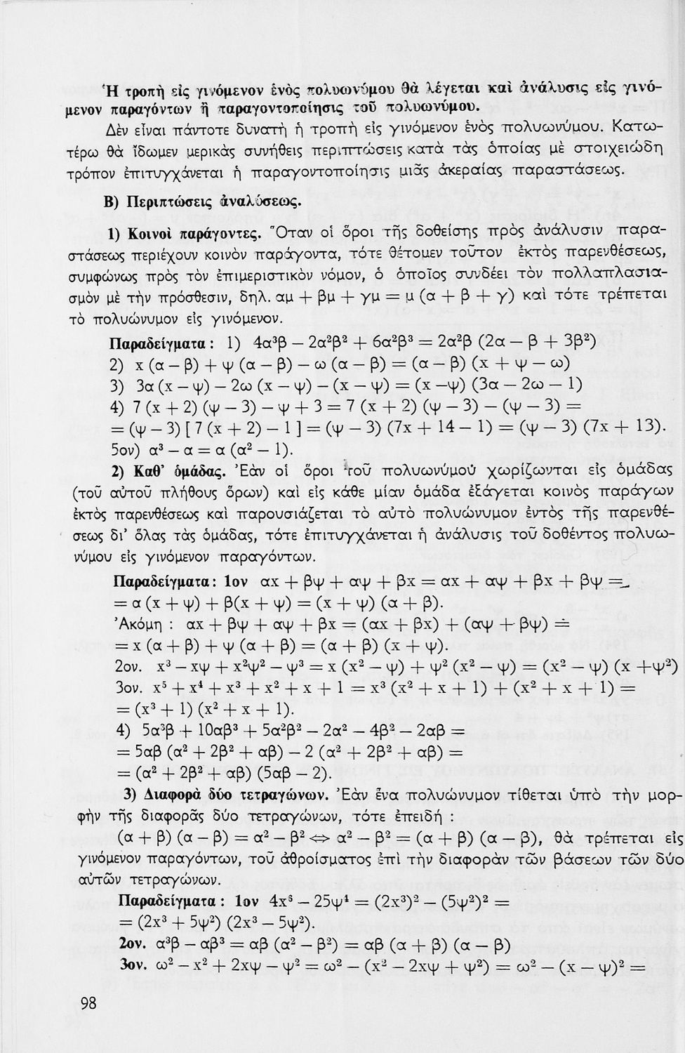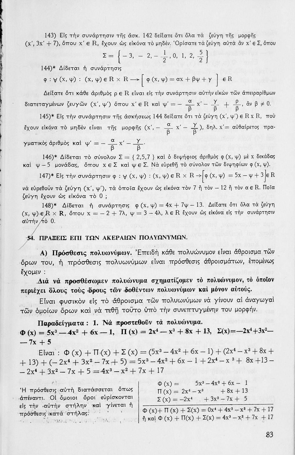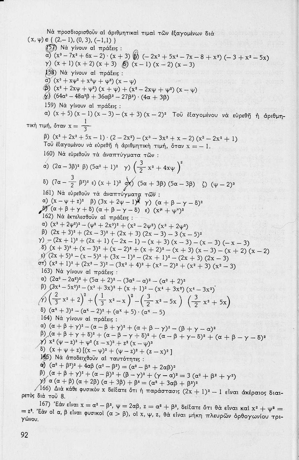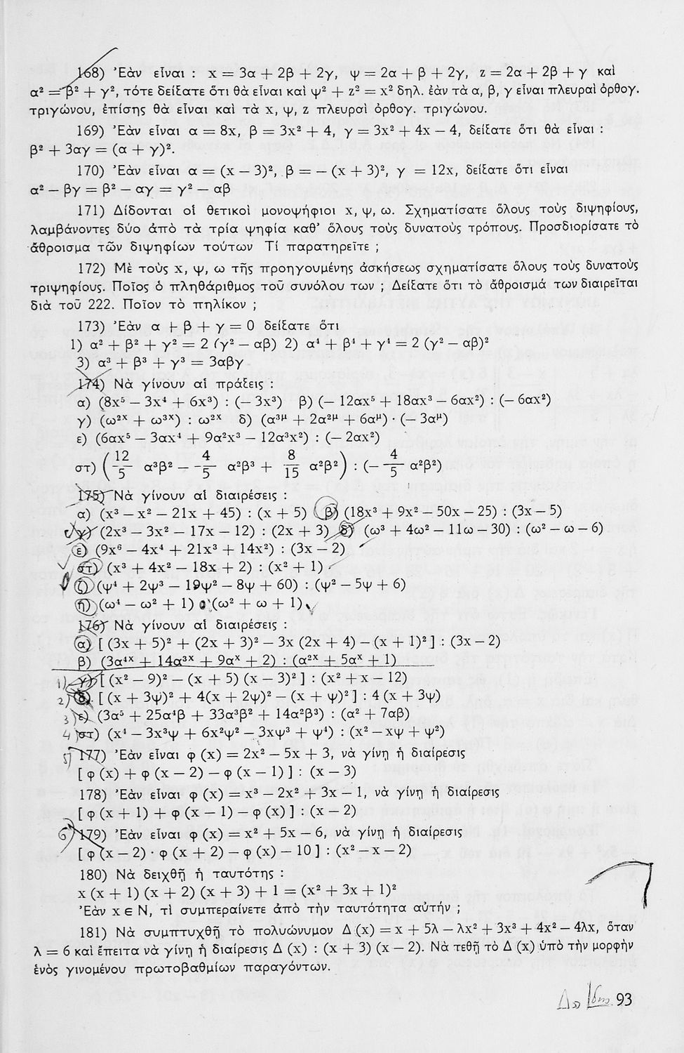 Σχολικό εγχειρίδιο μαθηματικών Γ΄ Γυμνασίου που περιλαμβάνει θεωρία, παραδείγματα και ασκήσεις. Φέρει το σύμβολο της δικτατορίας.