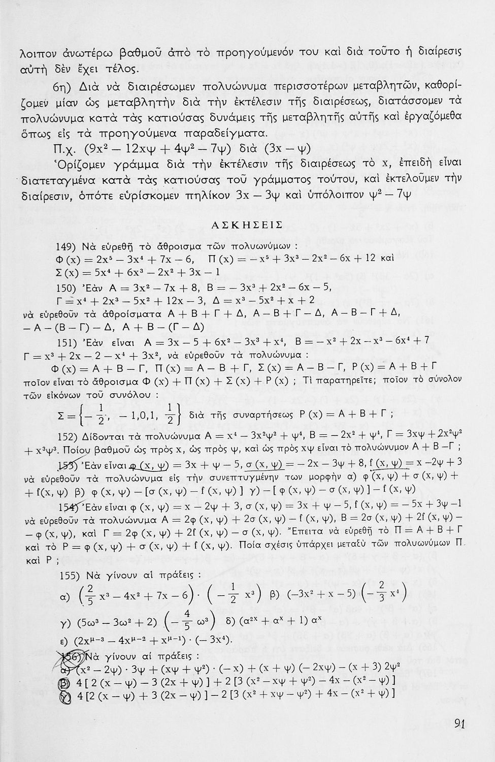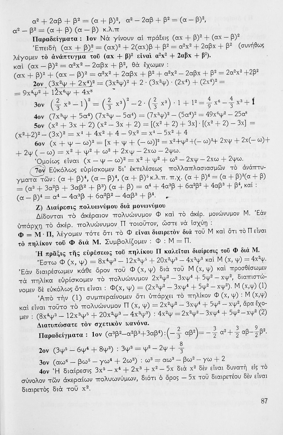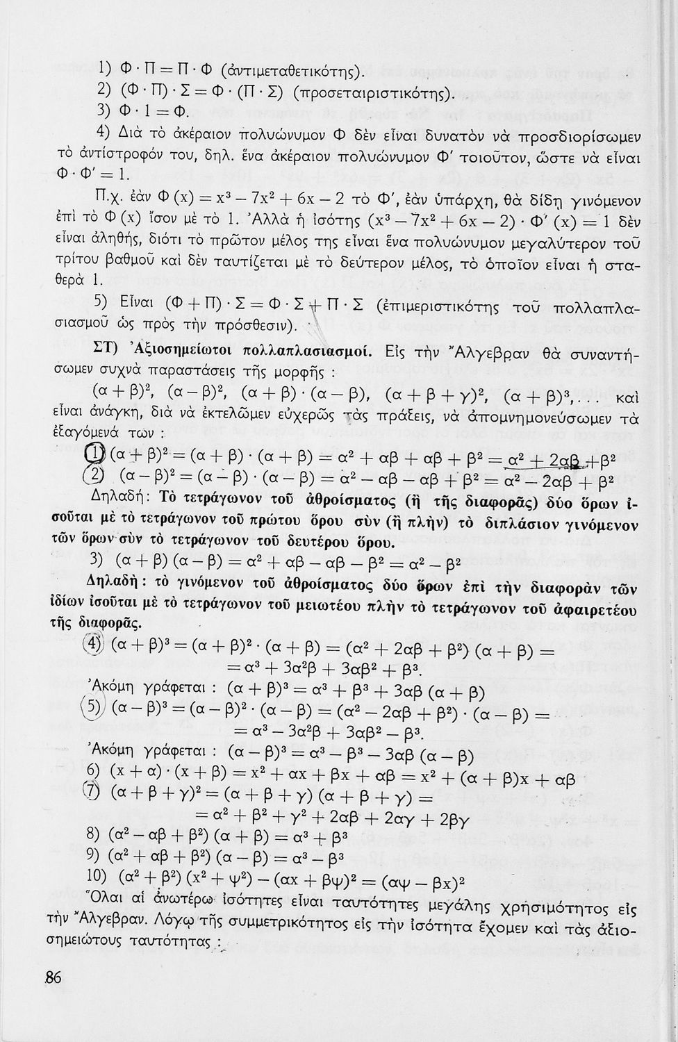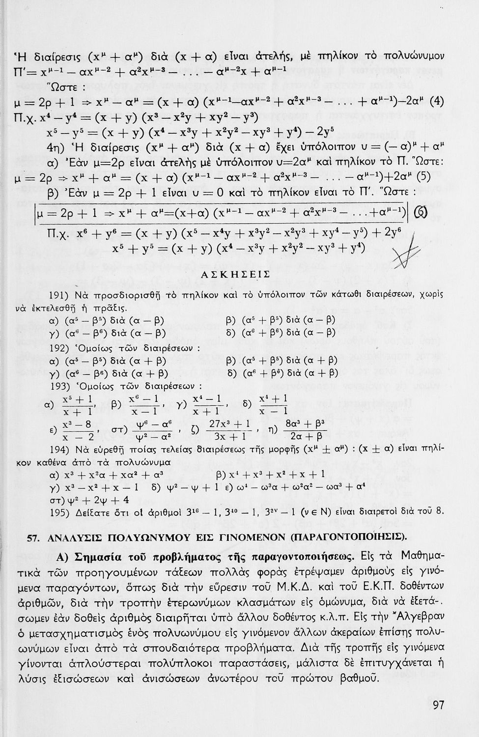 Σχολικό εγχειρίδιο μαθηματικών Γ΄ Γυμνασίου που περιλαμβάνει θεωρία, παραδείγματα και ασκήσεις. Φέρει το σύμβολο της δικτατορίας.