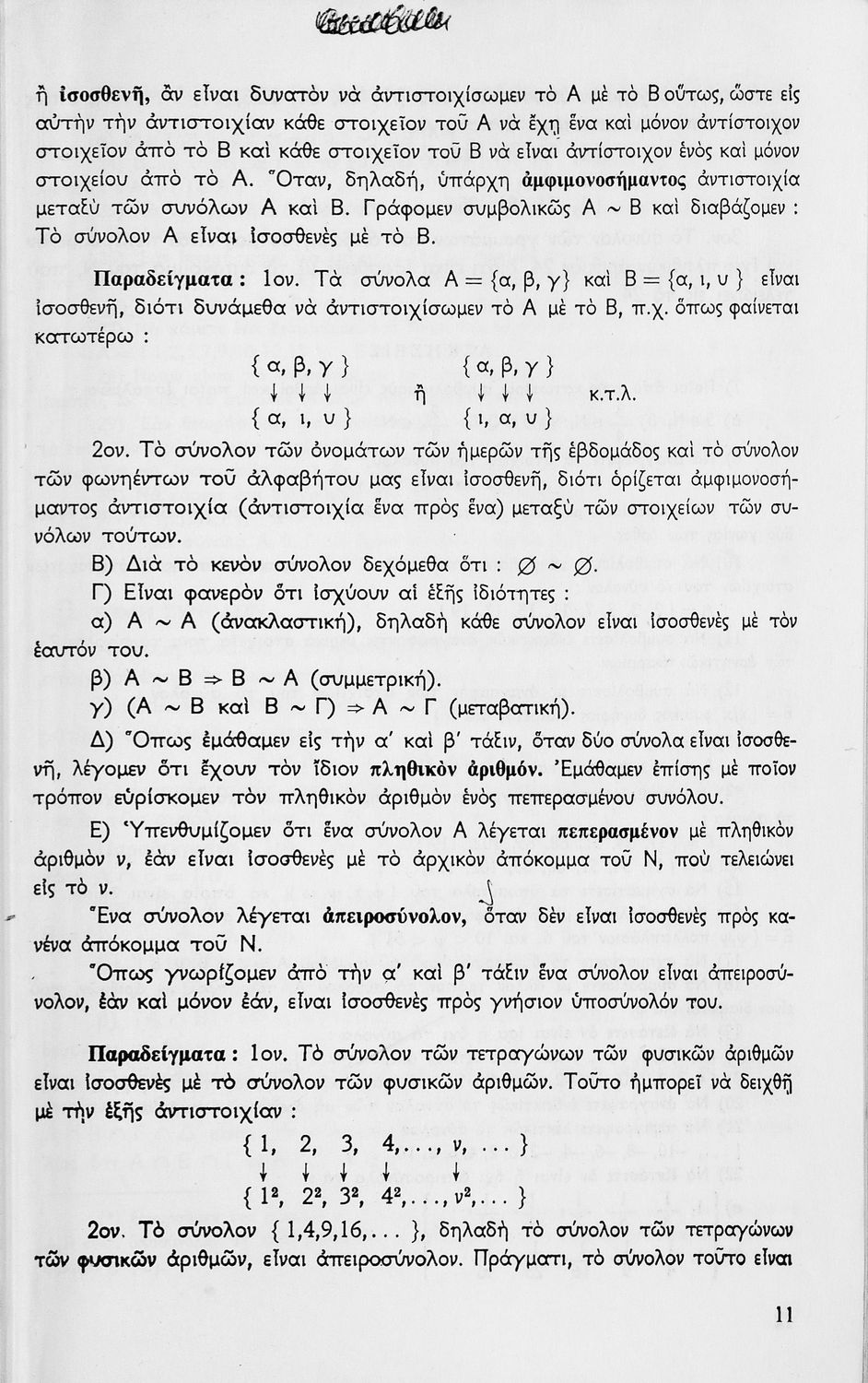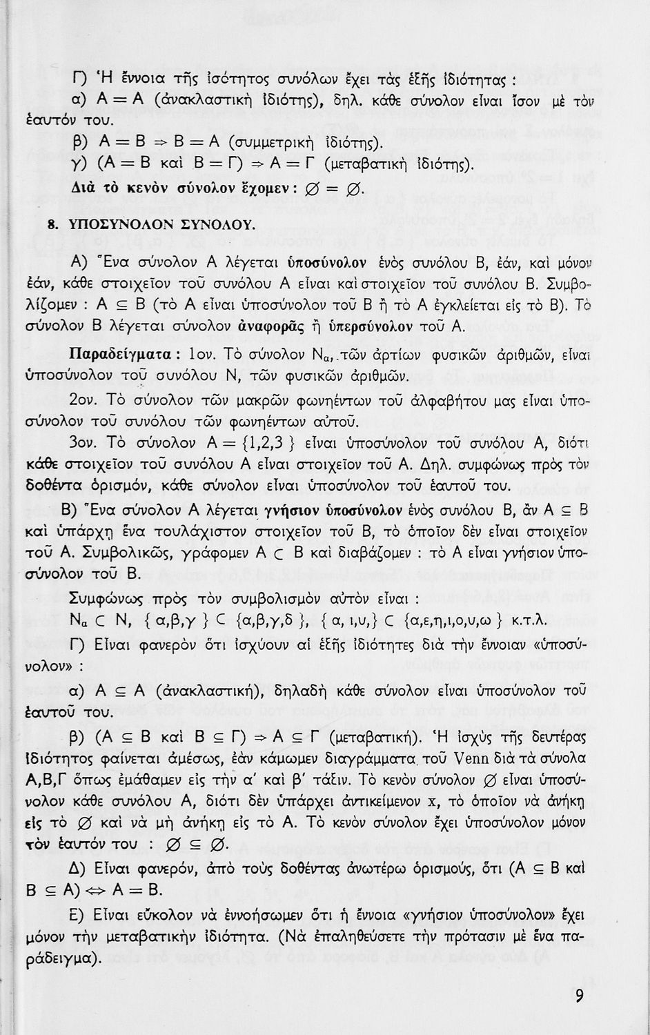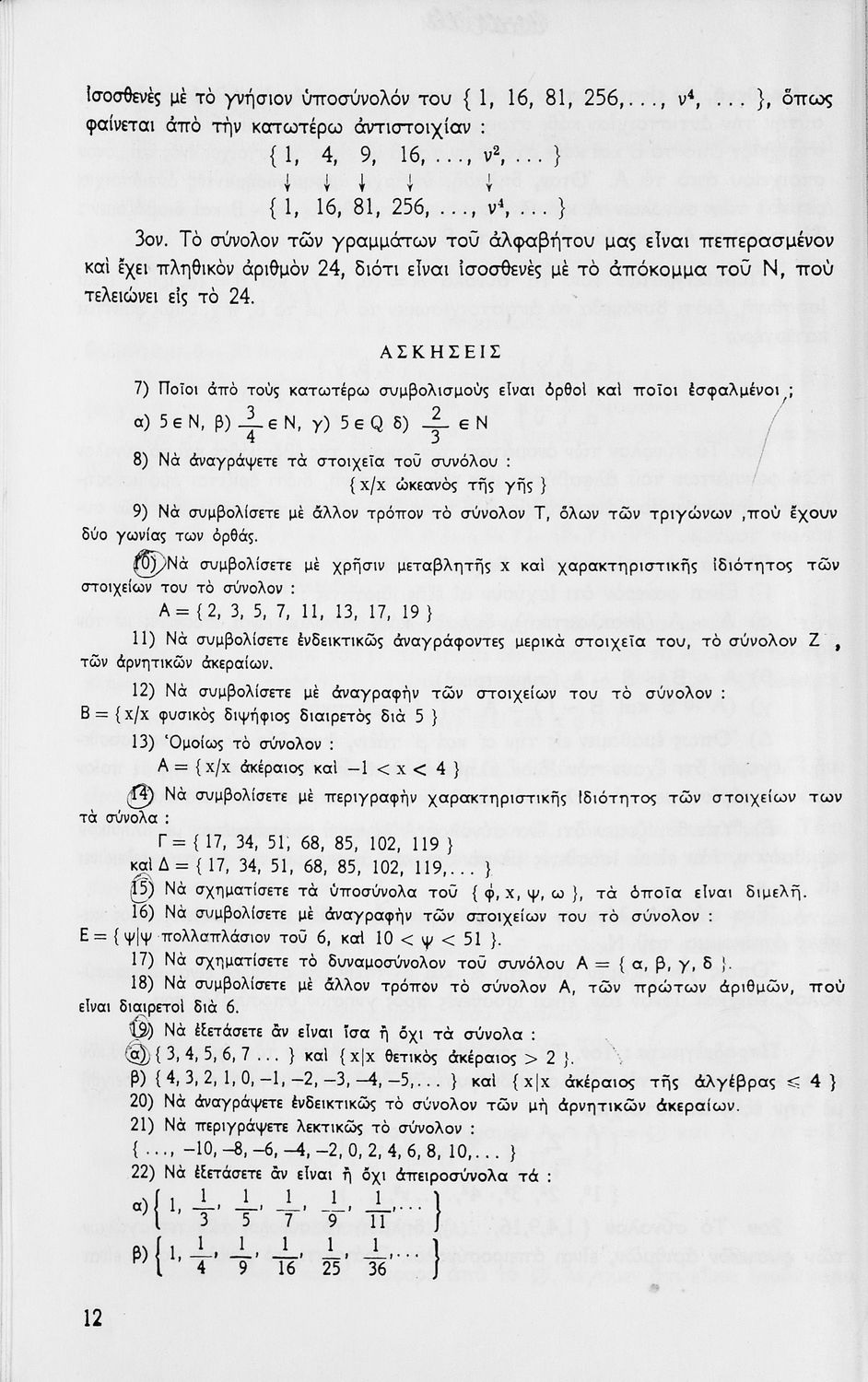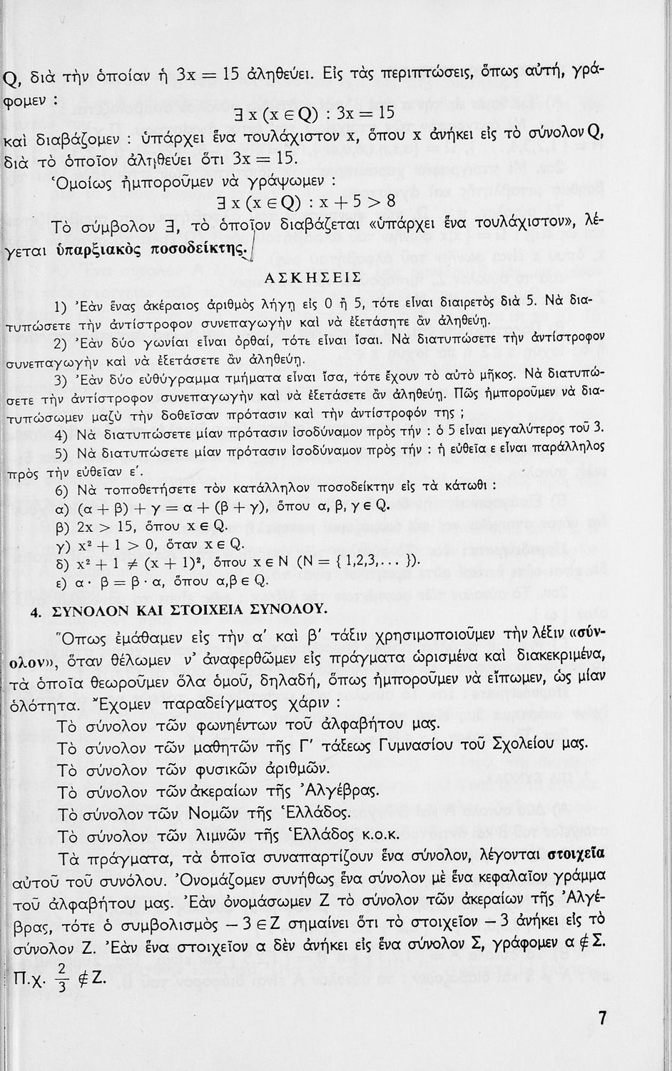 Σχολικό εγχειρίδιο μαθηματικών Γ΄ Γυμνασίου που περιλαμβάνει θεωρία, παραδείγματα και ασκήσεις. Φέρει το σύμβολο της δικτατορίας.