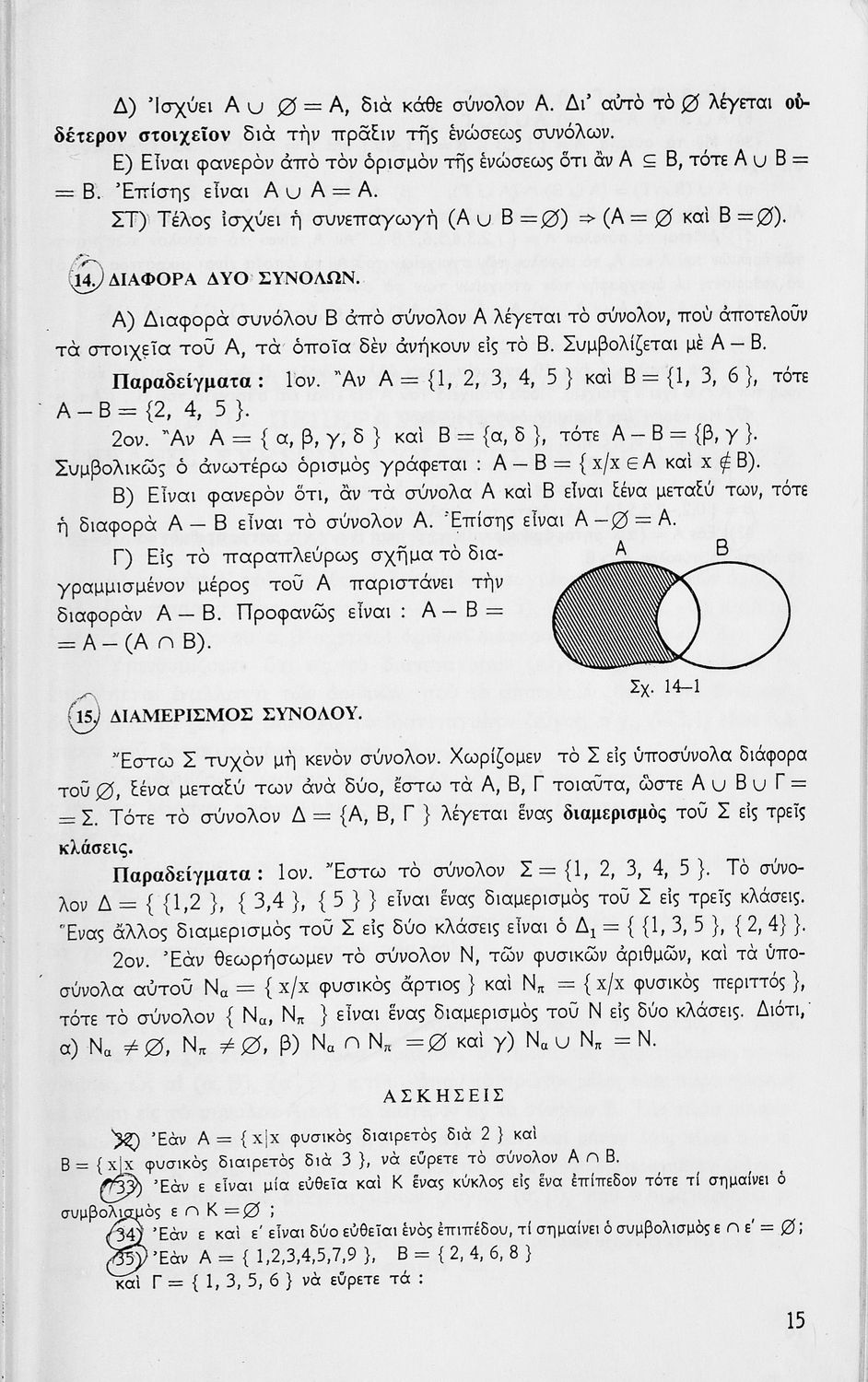 Σχολικό εγχειρίδιο Μαθηματικών Γ΄ Γυμνασίου που περιλαμβάνει θεωρία, παραδείγματα και ασκήσεις. Φέρει το σύμβολο της δικτατορίας.