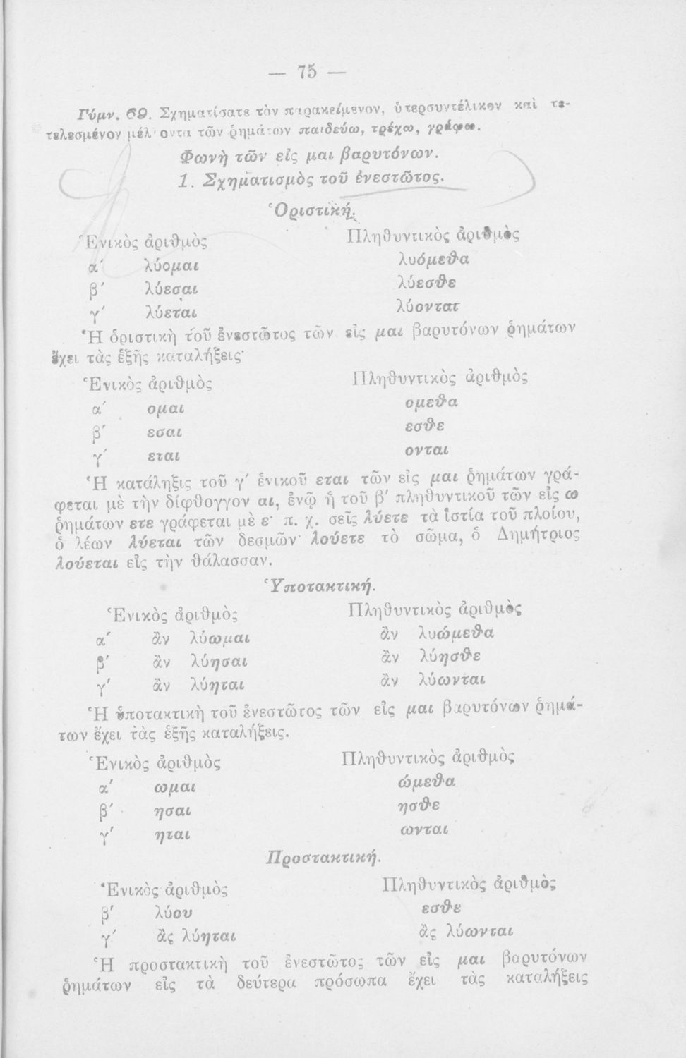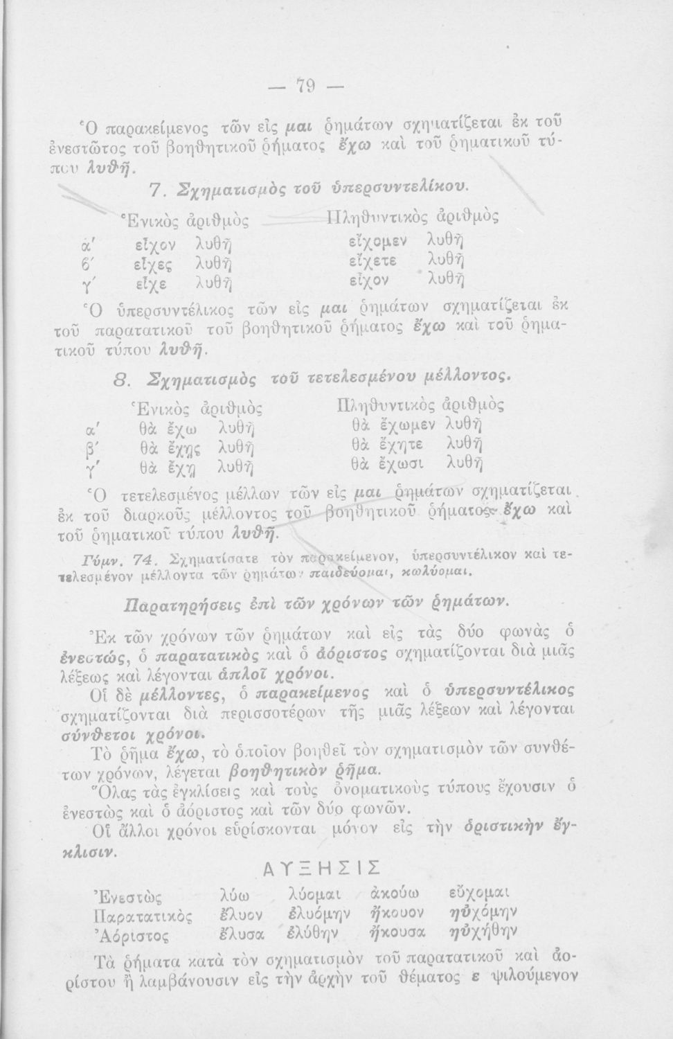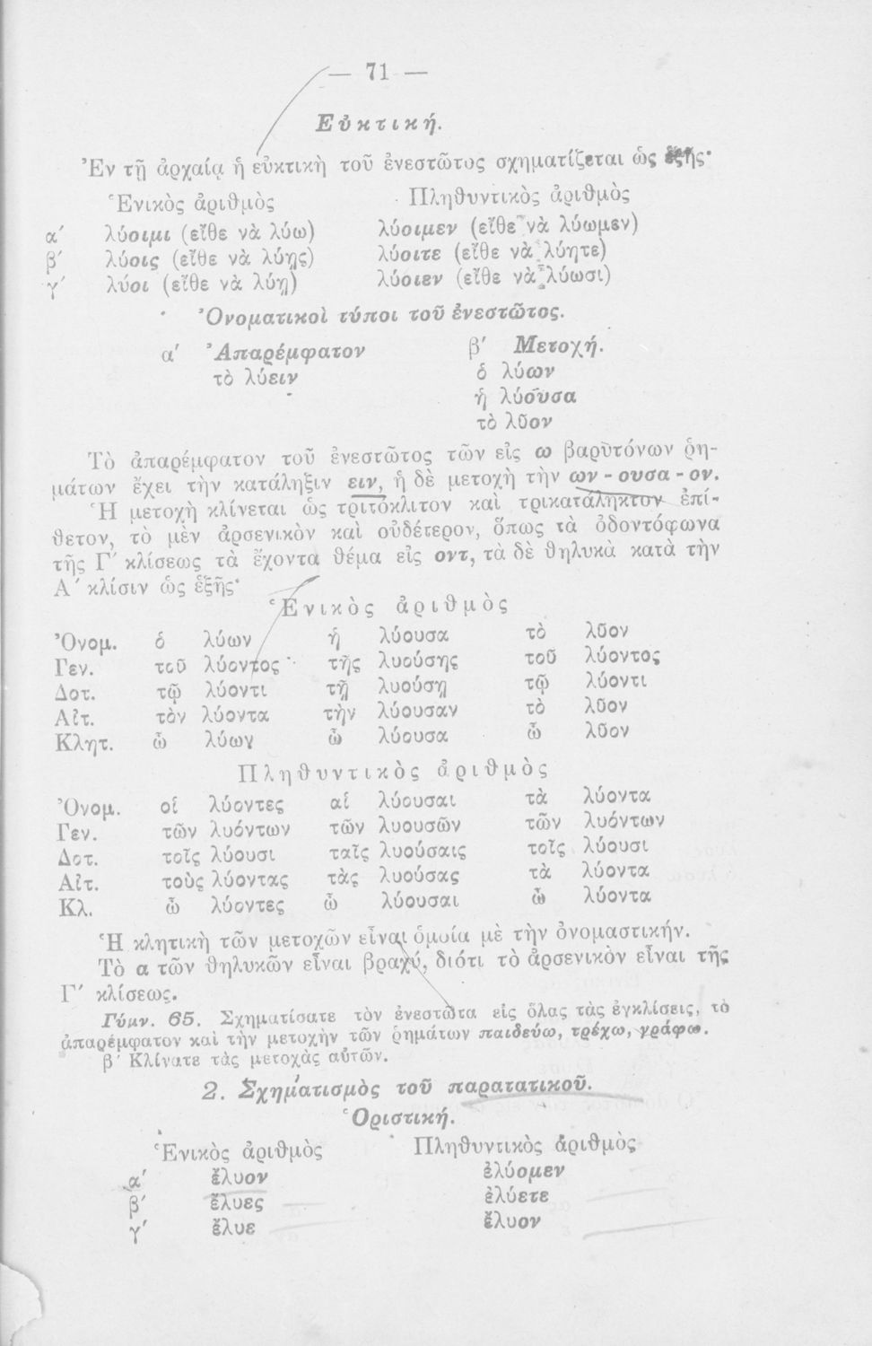 Σχολικό εγχειρίδιο Αρχαίων Ελληνικών Α΄, Β΄, Γ' Ελληνικού Σχολείου που αποτελεί γραμματική της αρχαίας ελληνικής και είναι χωρισμένο στο φθογγολογικό και το τυπολογικό μέρος. Περιέχει και σύντομα κείμενα που ...