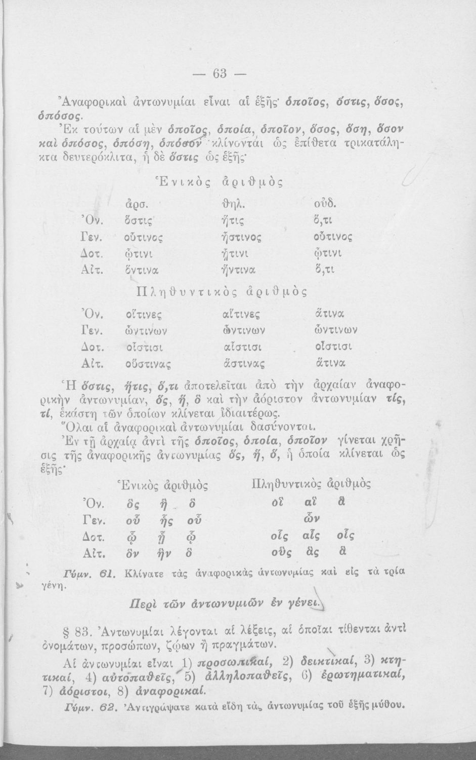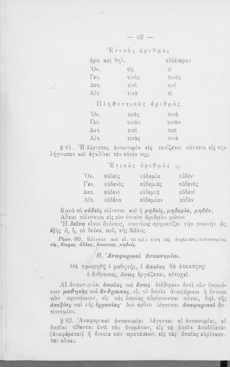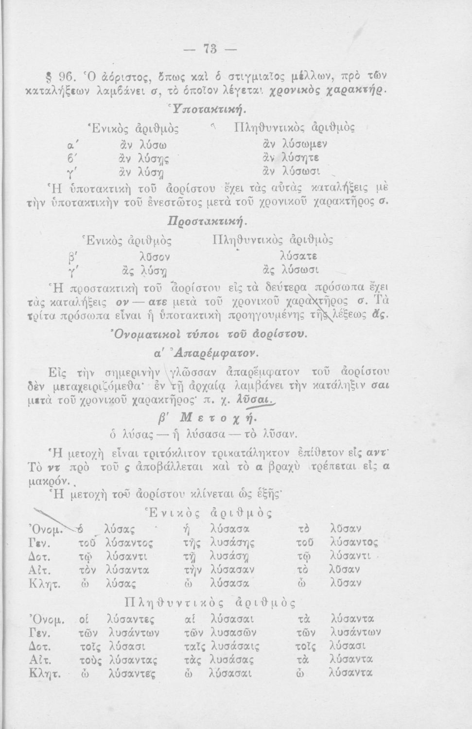 Σχολικό εγχειρίδιο Αρχαίων Ελληνικών Α΄, Β΄, Γ' Ελληνικού Σχολείου που αποτελεί γραμματική της αρχαίας ελληνικής και είναι χωρισμένο στο φθογγολογικό και το τυπολογικό μέρος. Περιέχει και σύντομα κείμενα που ...