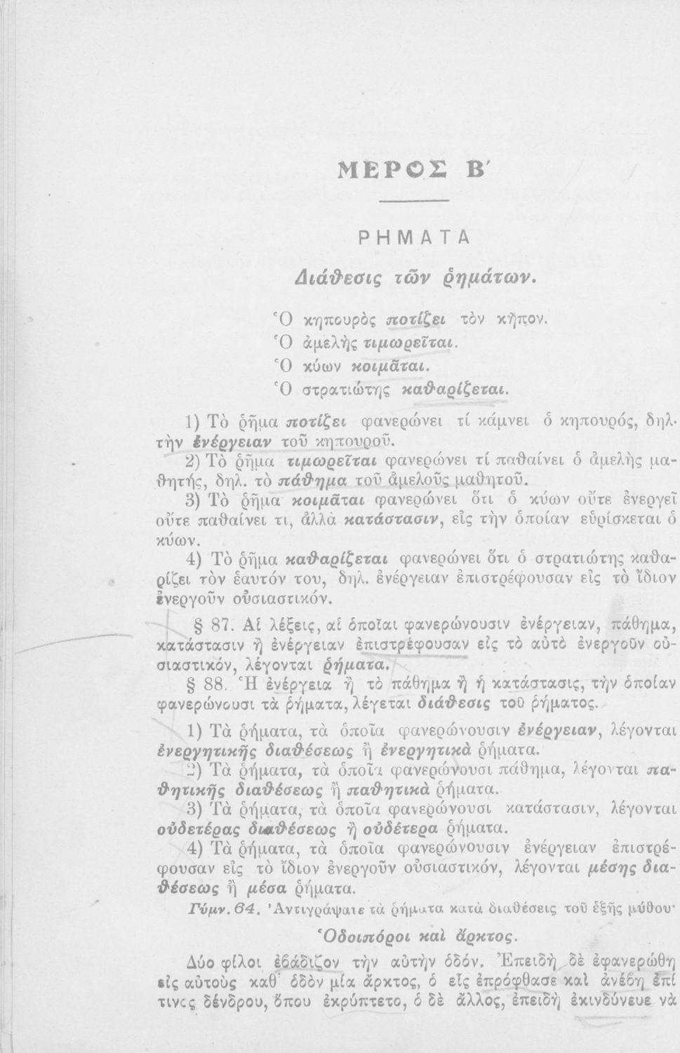 Τίτλος: Γραμματική της νέας ελληνικής γλώσσης μετά γραμματικών και ορθογραφικών ασκήσεων, Τεύχος Β΄