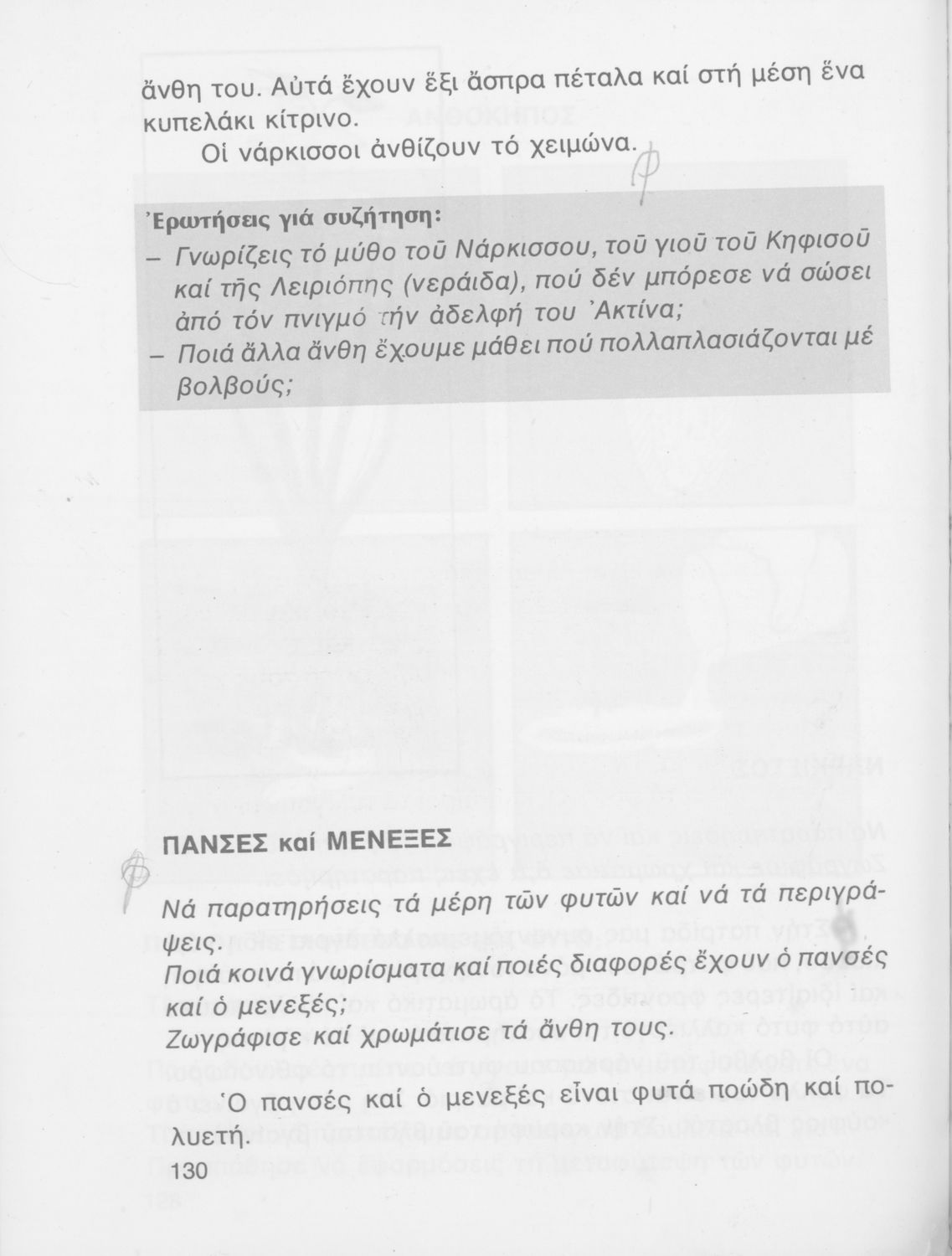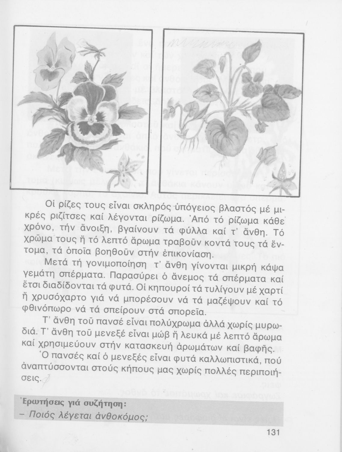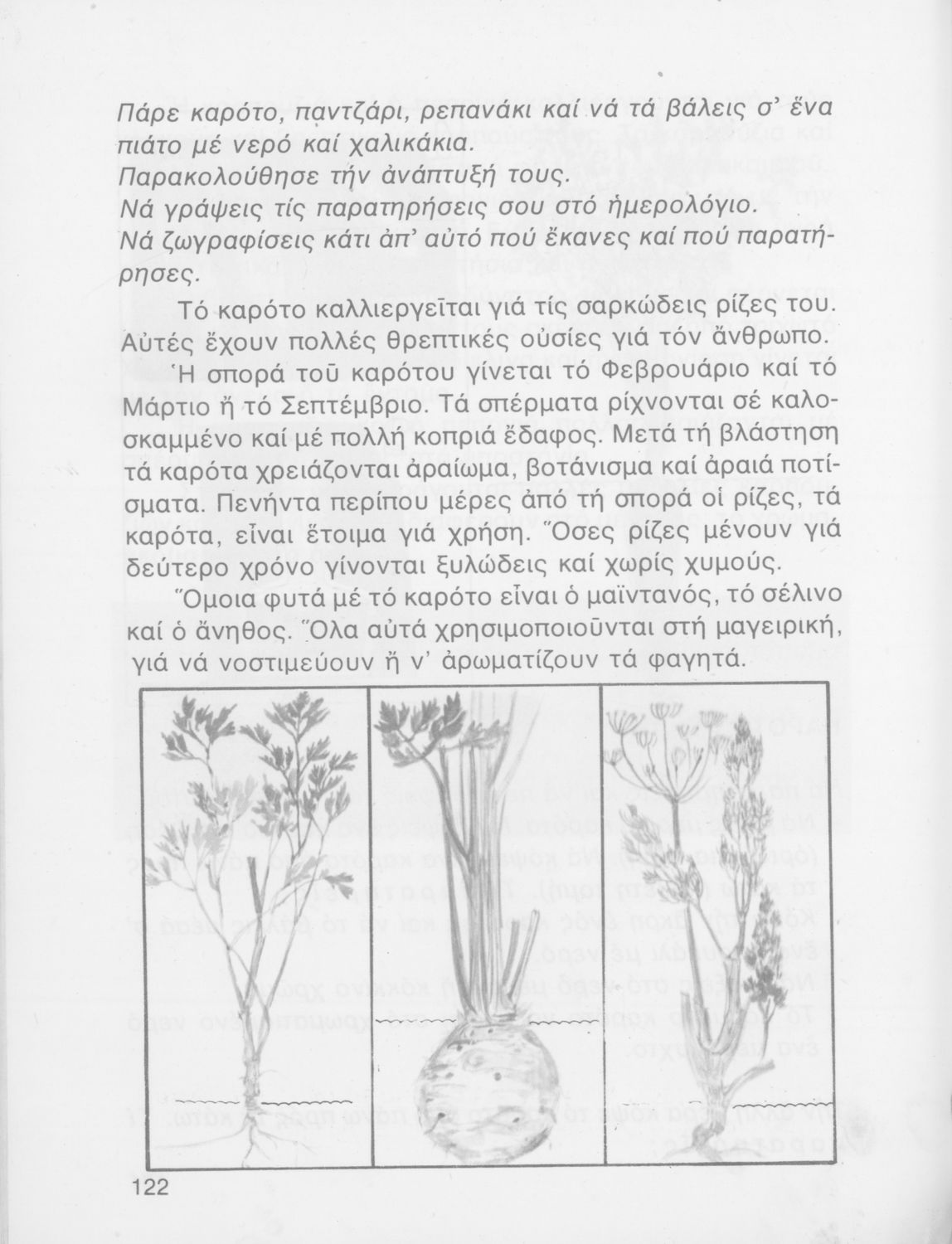 Πρόκειται για βιβλίο Φυτολογίας και Ζωολογίας για την Γ΄ Δημοτικού. Περιέχει στοιχεία για τα μέρη του φυτού, για φυτά και ζώα που υπάρχουν στον κήπο, τον ανθόκηπο και τον λαχανόκηπο.