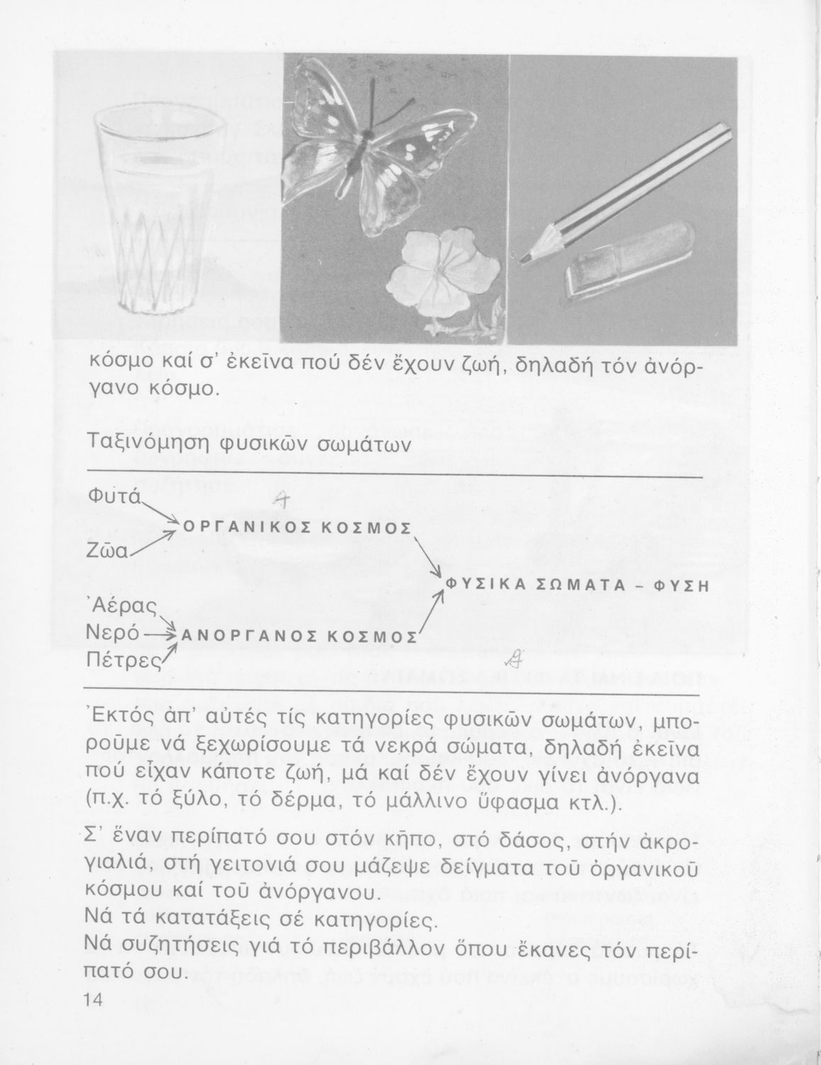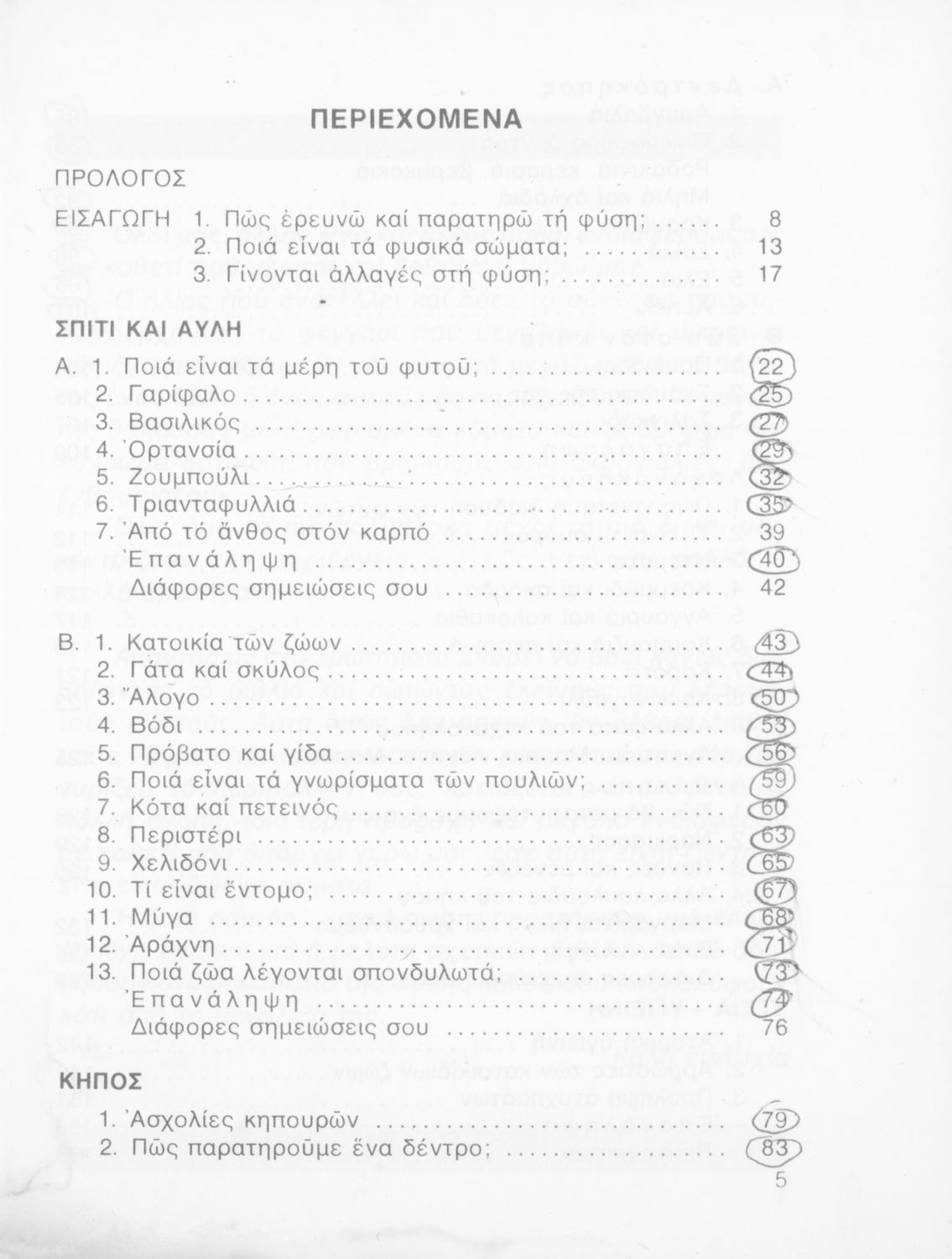 Πρόκειται για βιβλίο Φυτολογίας και Ζωολογίας για την Γ΄ Δημοτικού. Περιέχει στοιχεία για τα μέρη του φυτού, για φυτά και ζώα που υπάρχουν στον κήπο, τον ανθόκηπο και τον λαχανόκηπο.