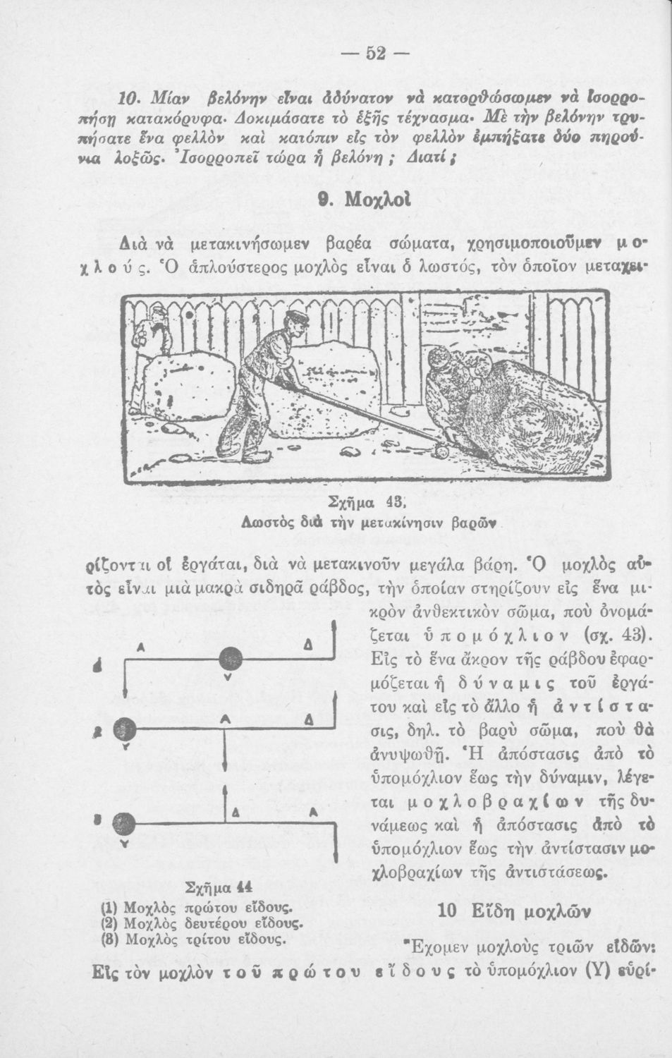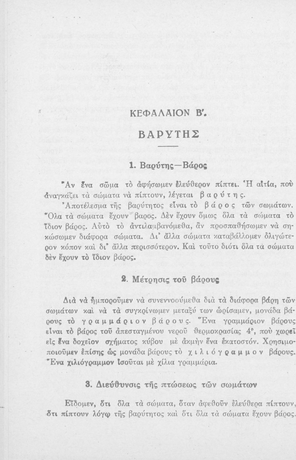 Βαθμίδα εκπαίδευσης: Πρωτοβάθμια Τάξη: Ε' Δημοτικού / ΣΤ' Δημοτικού Μάθημα: Φυσική Γλώσσα: Απλή καθαρεύουσα Παρουσίαση περιεχομένου: Μαθητικό βοήθημα της Ε ΄ και ΣΤ΄ Δημοτικού για το μάθημα της Φυσικής . Παρέχει βασικές γνώσεις της φυσικής επιστήμης και της χημείας. Αναλύει τις ιδιότητες των σωμάτων, καθώς και της θερμότητας, της βαρύτητας, της υδροστατική και της αεροστατική. Σχετικά με τη χημεία αναφέρεται στα μέταλλα, στα οξέα, τις βάσεις, τα άλατα. Αναφέρεται στην πρακτική εφαρμογή της φυσικής και της χημείας στην καθημερινότητά. Επίσης, περιλαμβάνει πολλά από τα όργανα, που χρησιμοποιούνται στη φυσική, και τη χημεία. Περιέχει εικόνες και σχεδιαγράμματα τα οποία βοηθούν τη διδασκαλία. |