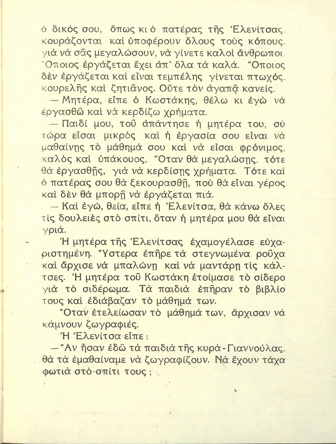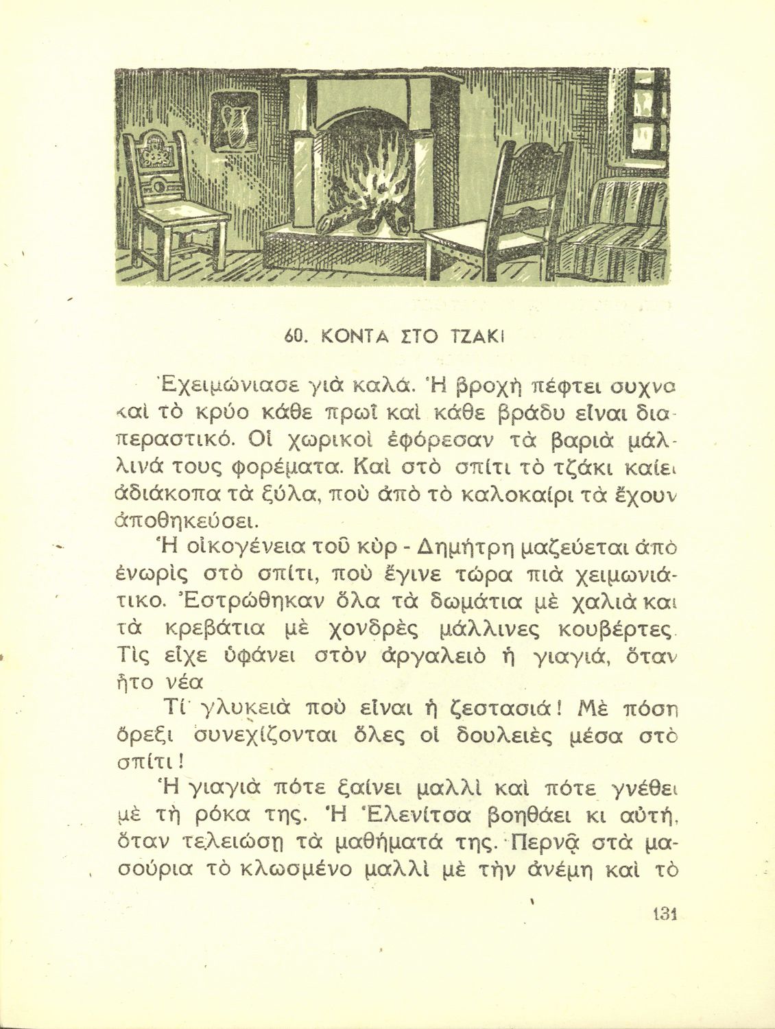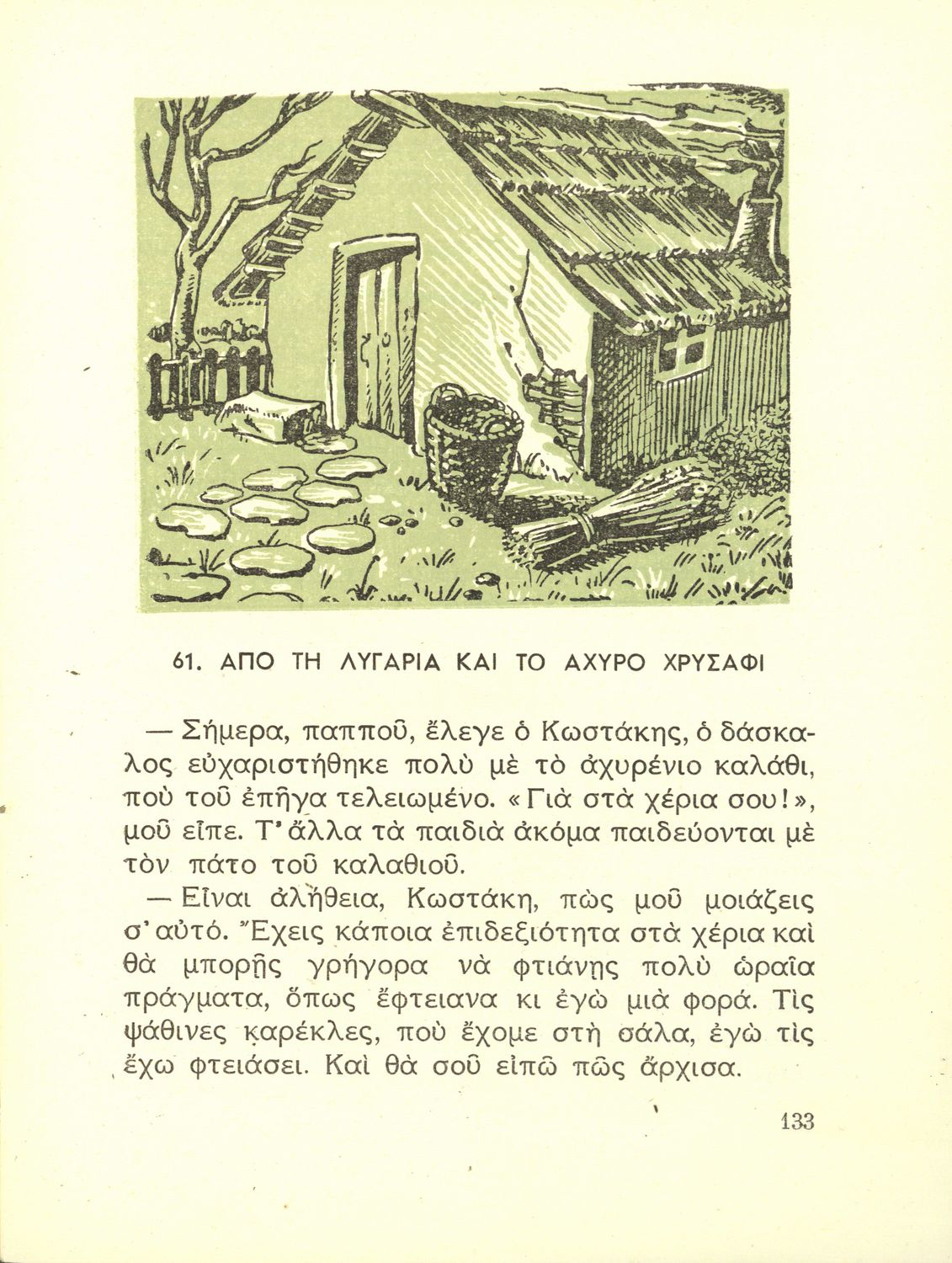Αναγνωστικό της Γ΄ Δημοτικού που περιλαμβάνει μικρές ιστορίες εθνικιστικού περιεχομένου εμπνευσμένες από την ύπαιθρο, την οικογενειακή και κοινωνική ζωή αλλά και το εθνικό παρελθόν.