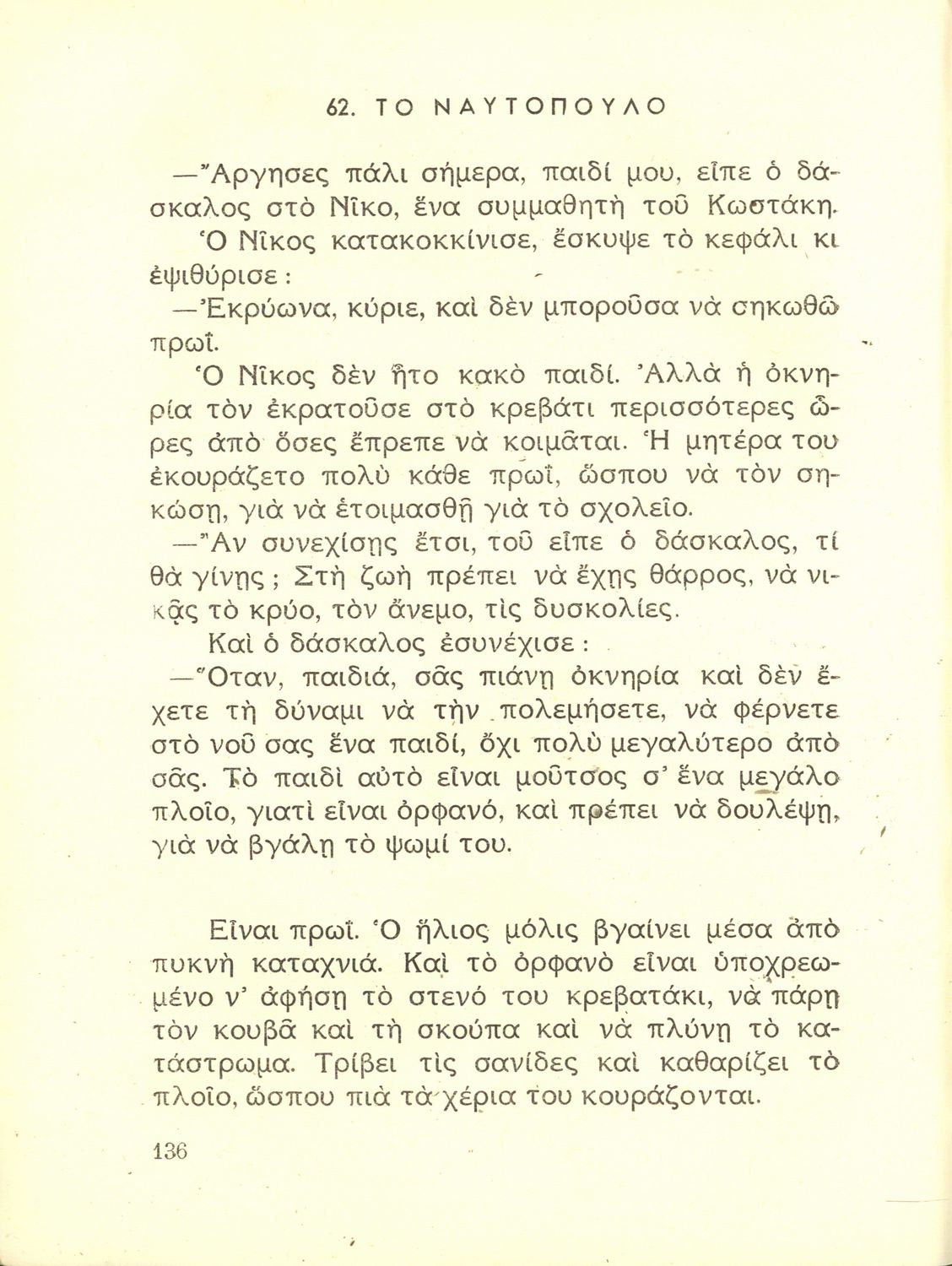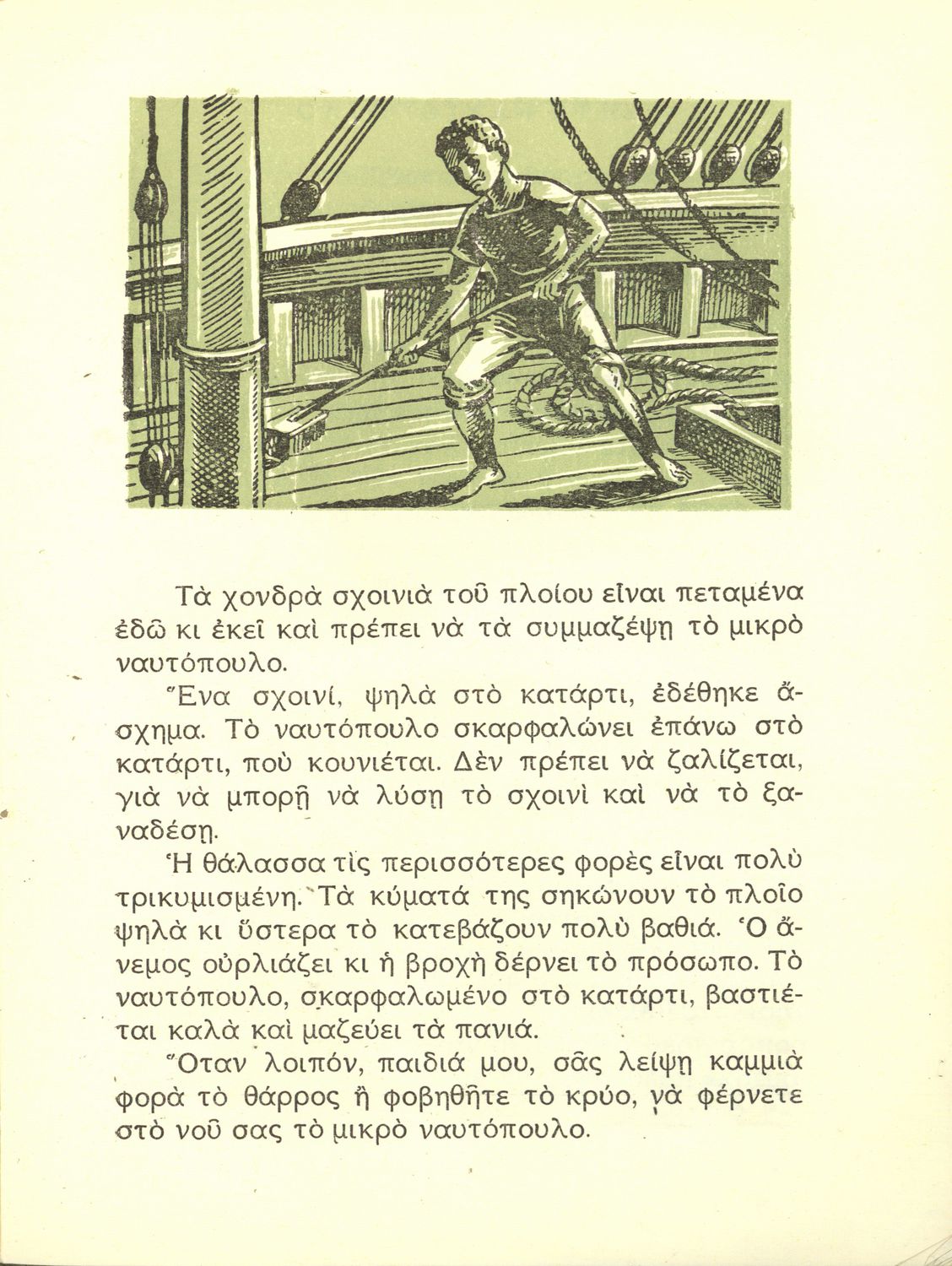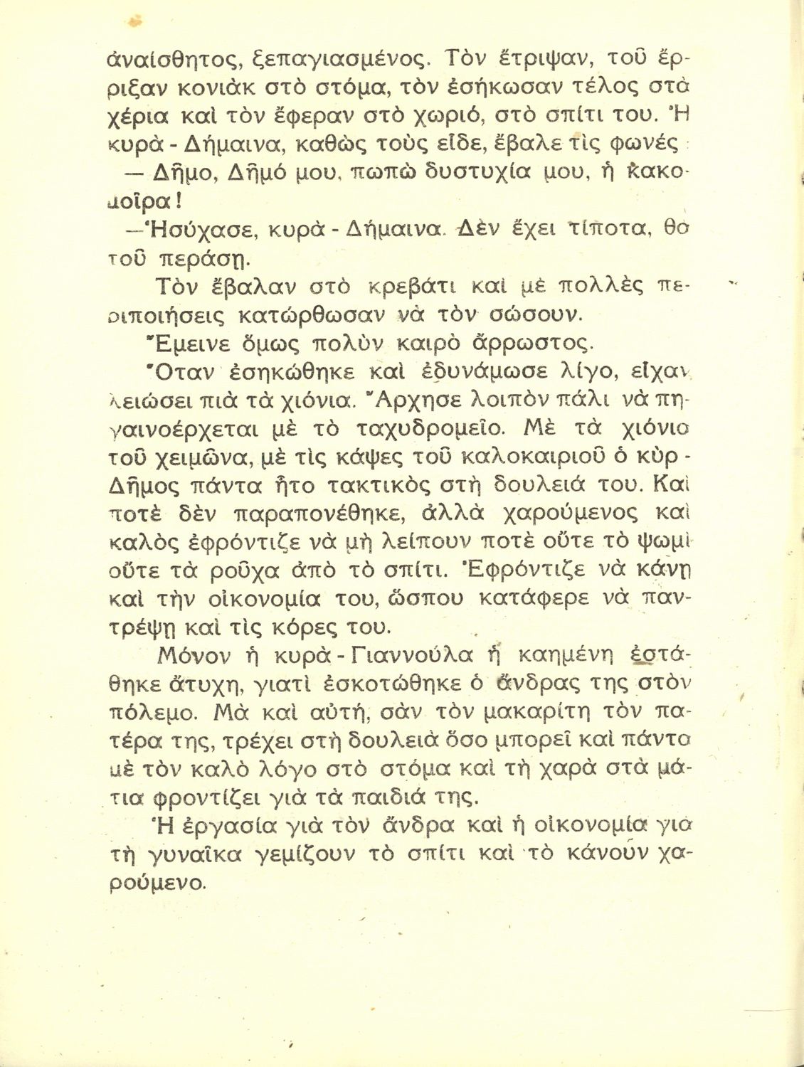 Αναγνωστικό της Γ΄ Δημοτικού που περιλαμβάνει μικρές ιστορίες εθνικιστικού περιεχομένου εμπνευσμένες από την ύπαιθρο, την οικογενειακή και κοινωνική ζωή αλλά και το εθνικό παρελθόν.