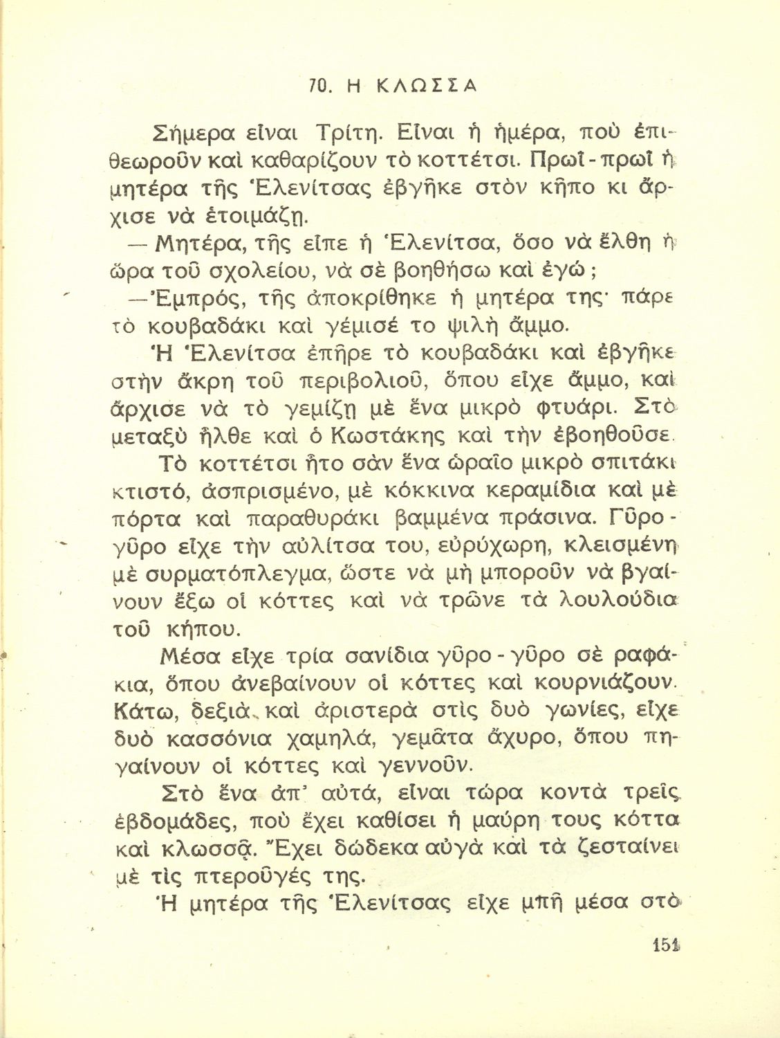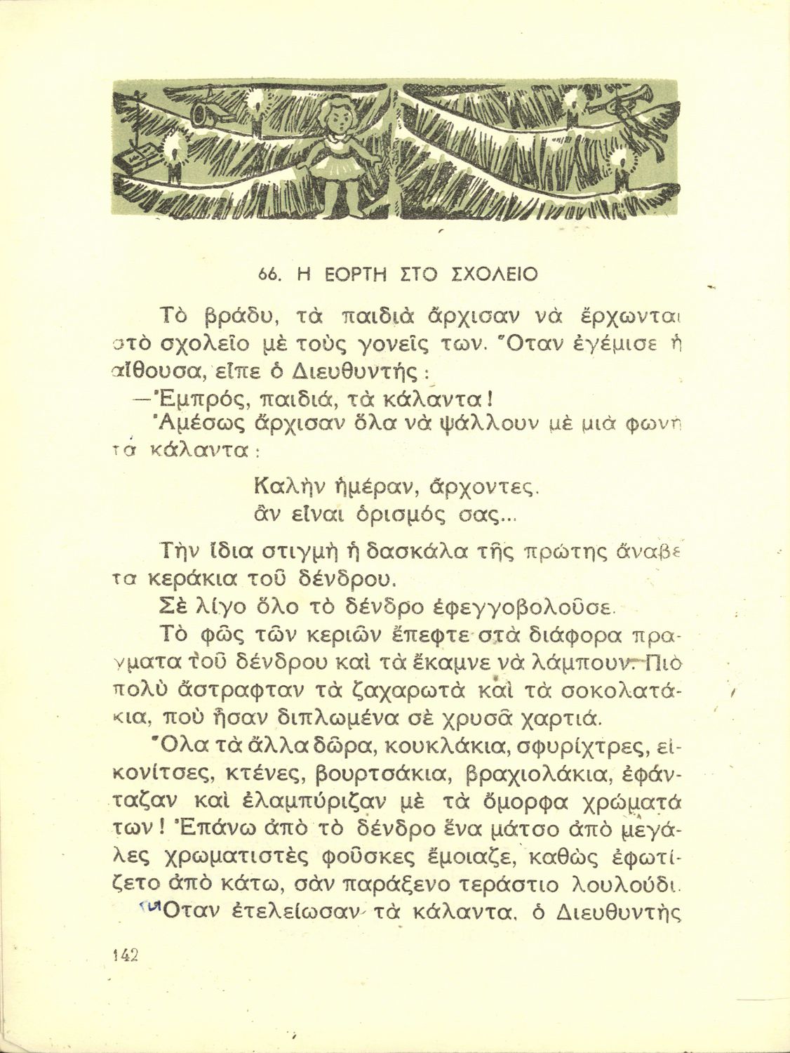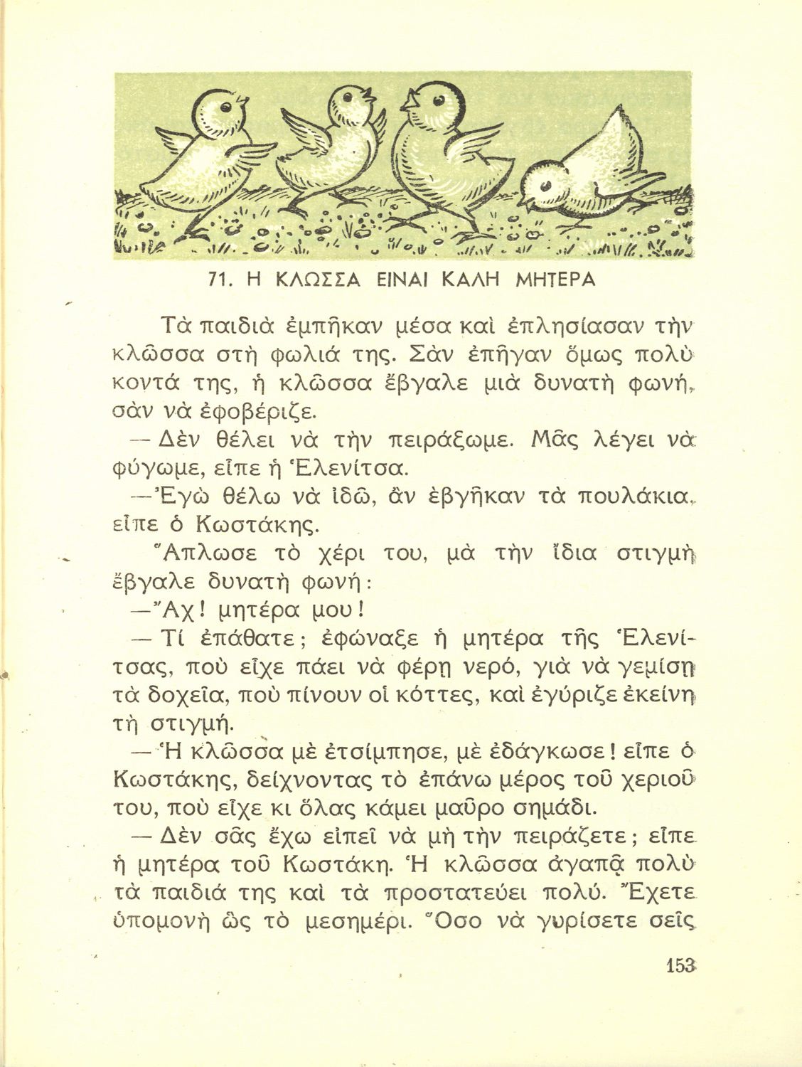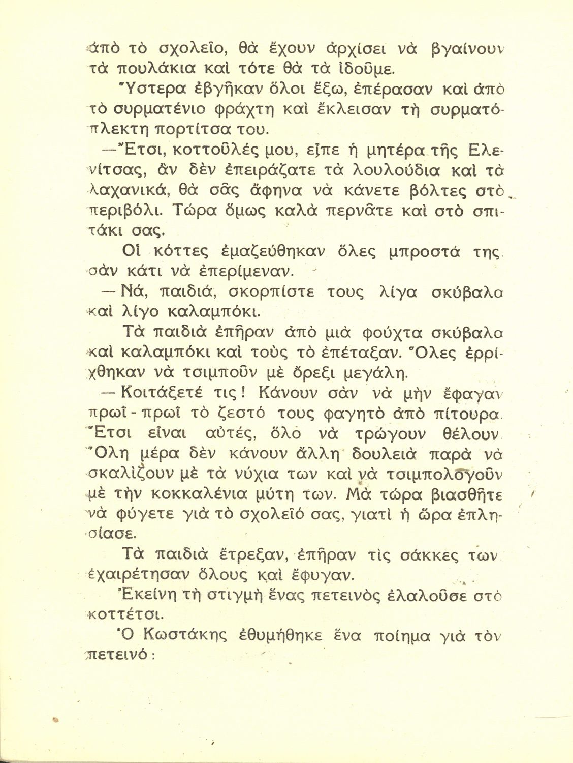 Αναγνωστικό της Γ΄ Δημοτικού που περιλαμβάνει μικρές ιστορίες εθνικιστικού περιεχομένου εμπνευσμένες από την ύπαιθρο, την οικογενειακή και κοινωνική ζωή αλλά και το εθνικό παρελθόν.