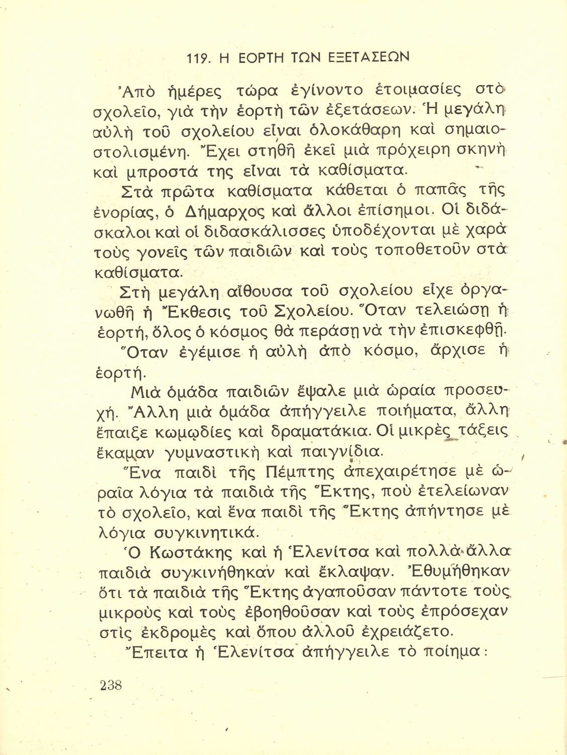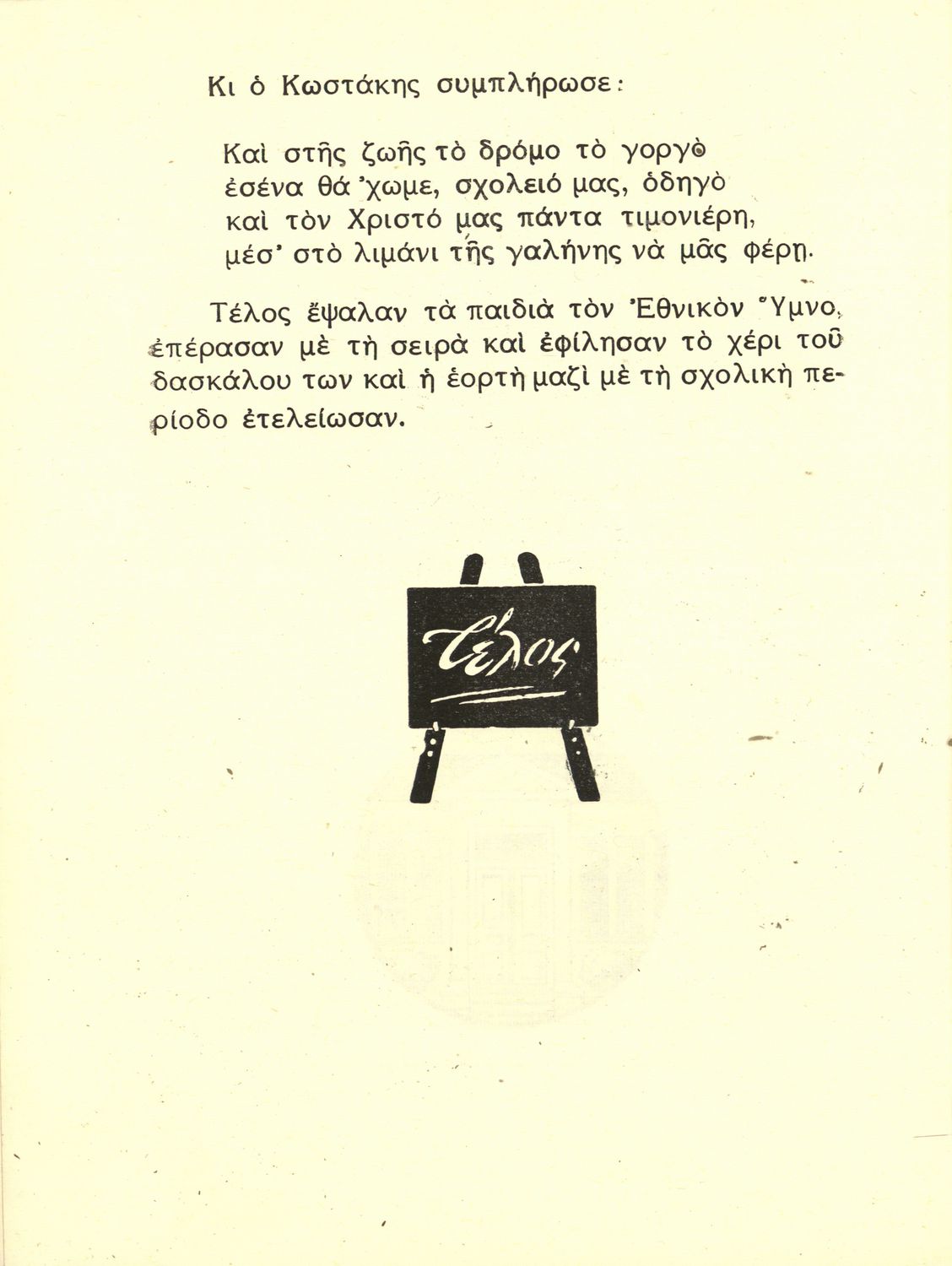 Αναγνωστικό της Γ΄ Δημοτικού που περιλαμβάνει μικρές ιστορίες εθνικιστικού περιεχομένου εμπνευσμένες από την ύπαιθρο, την οικογενειακή και κοινωνική ζωή αλλά και το εθνικό παρελθόν.