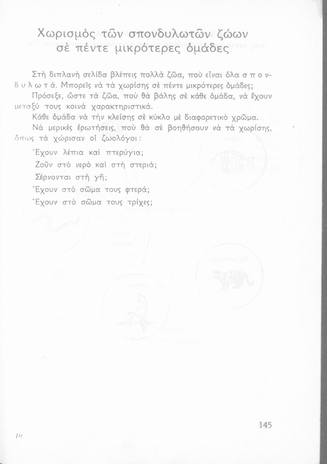 Σχολικό εγχειρίδιο Φυτολογίας και Ζωολογίας της Γ ΄ Δημοτικού. Παρουσιάζει στοιχεία και χαρακτηριστικά των φυτών και των ζώων καθώς και τον τρόπο με τον οποίο ο άνθρωπος τα αξιοποιεί.