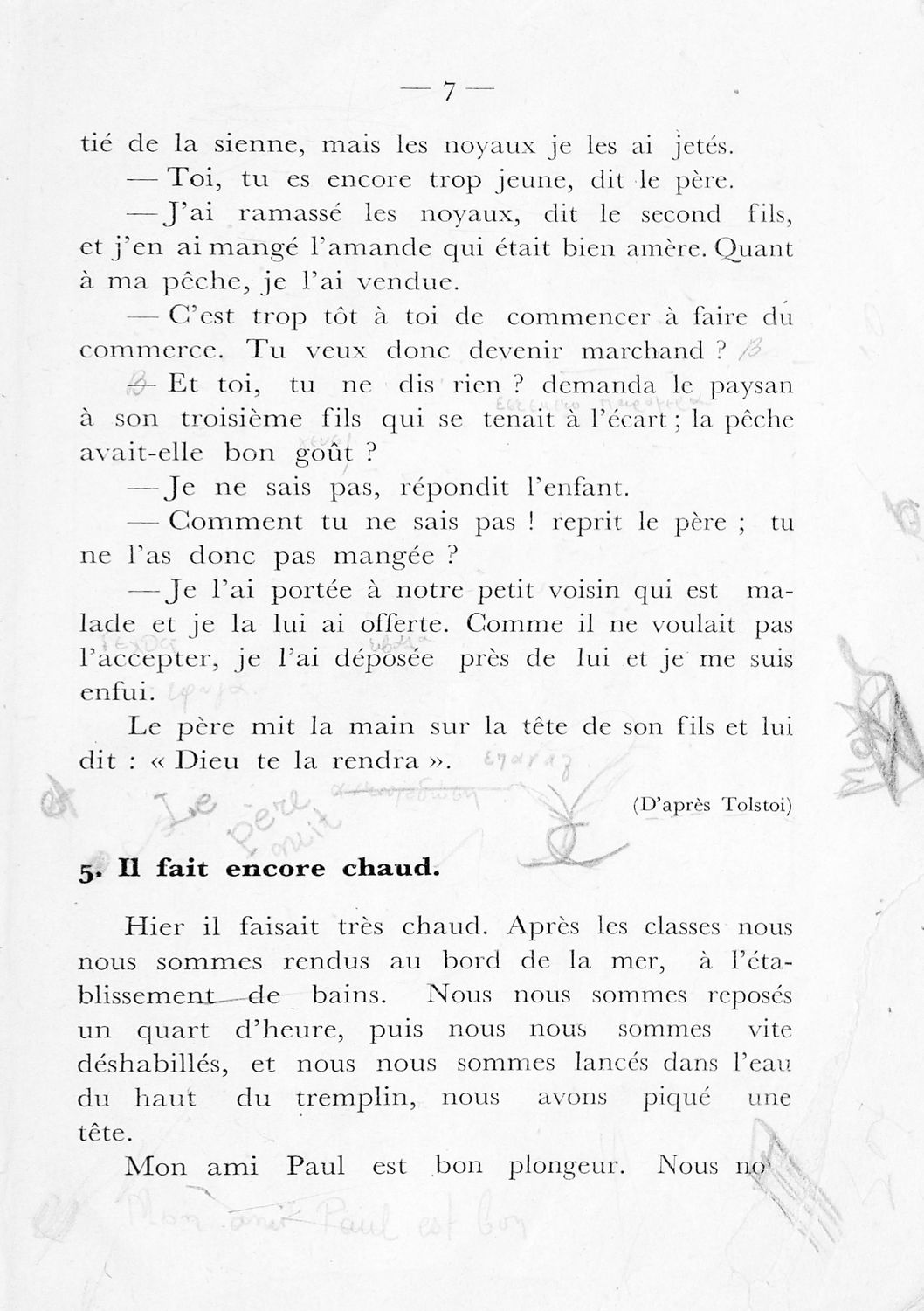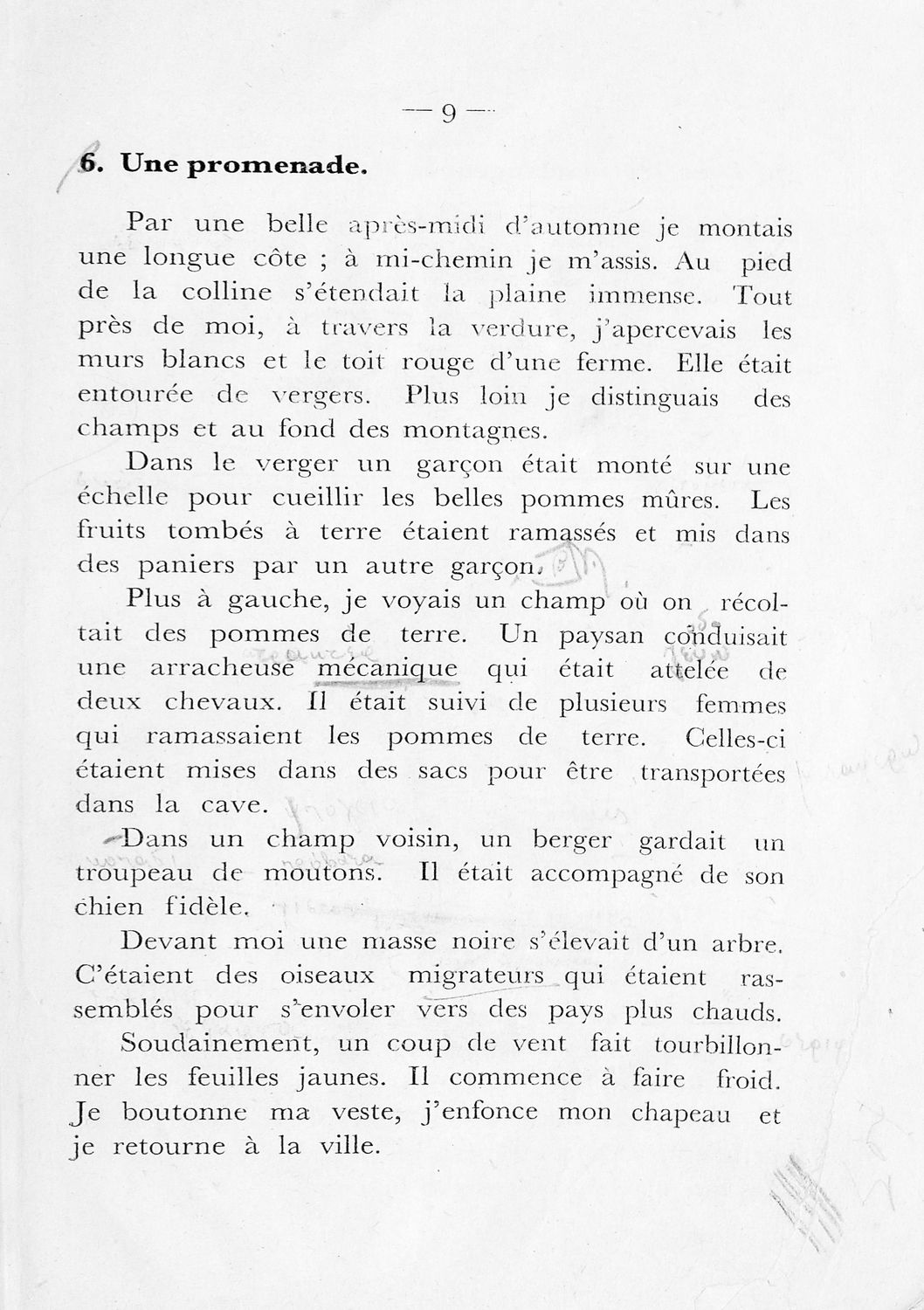 Σχολικό εγχειρίδιο Γαλλικών Γυμνασίου που περιλαμβάνει κείμενα στα γαλλικά και ελληνικά, θεωρία, λεξιλόγιο και βιογραφικά σημειώματα των συγγραφέων. Ο συγγραφέας ήταν καθηγητής της Βαρβακείου πρότυπης σχολής