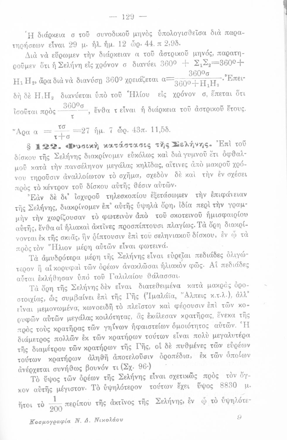 Σχολικό εγχειρίδιο Κοσμογραφίας Γυμνασίου και Λυκείου που εστιάζει στην κίνηση των πλανητών και στον τρόπο υπολογισμού της τροχιάς τους. Ο συγγραφέας ήταν καθηγητής στην πρότυπη Βαρβάκειο σχολή του Διδασκαλείου Μέσης Εκπαίδευσης.