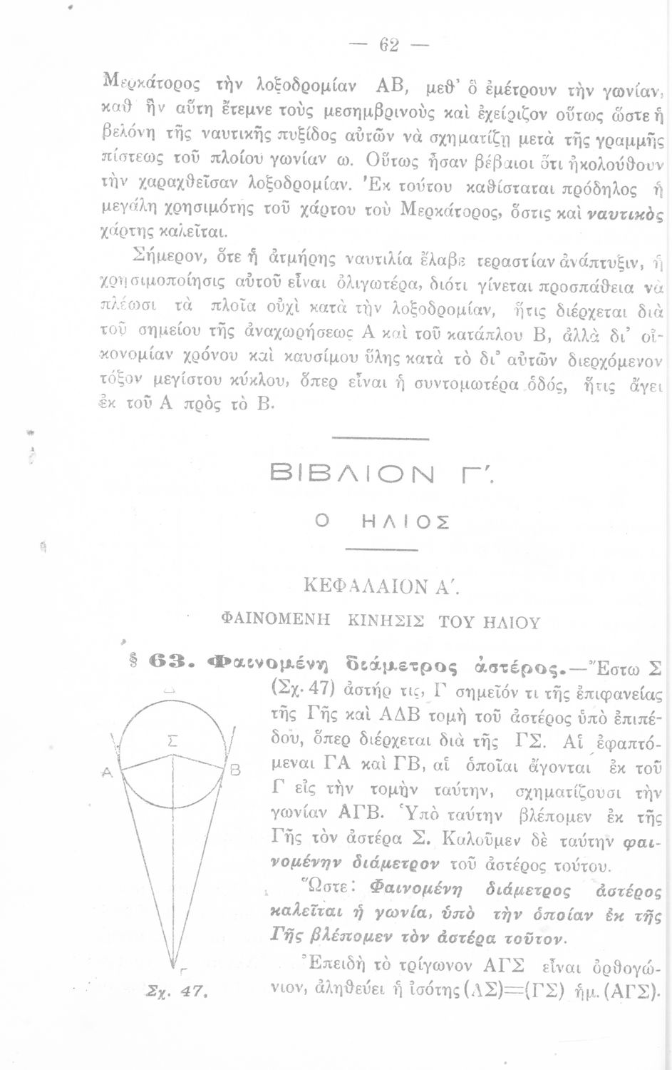 Παρουσίαση περιεχομένου: Σχολικό εγχειρίδιο Κοσμογραφίας Γυμνασίου και Λυκείου που εστιάζει στην κίνηση των πλανητών και στον τρόπο υπολογισμού της τροχιάς τους. Ο συγγραφέας ήταν καθηγητής στην πρότυπη Βαρβάκειο σχολή του Διδασκαλείου Μέσης Εκπαίδευσης.