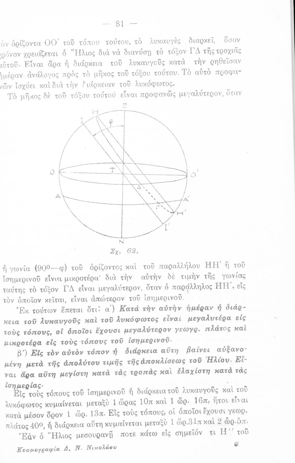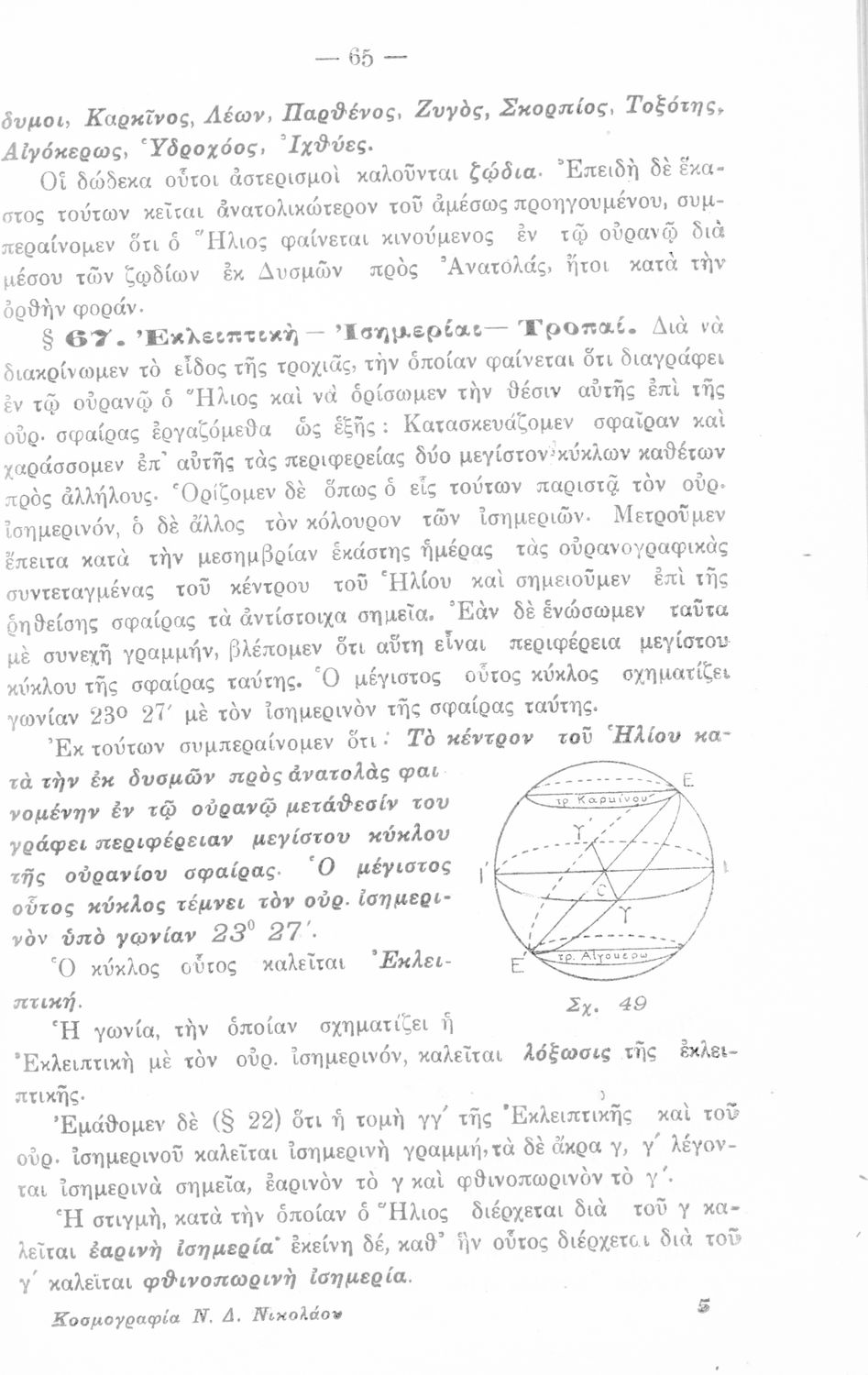 Παρουσίαση περιεχομένου: Σχολικό εγχειρίδιο Κοσμογραφίας Γυμνασίου και Λυκείου που εστιάζει στην κίνηση των πλανητών και στον τρόπο υπολογισμού της τροχιάς τους. Ο συγγραφέας ήταν καθηγητής στην πρότυπη Βαρβάκειο σχολή του Διδασκαλείου Μέσης Εκπαίδευσης.