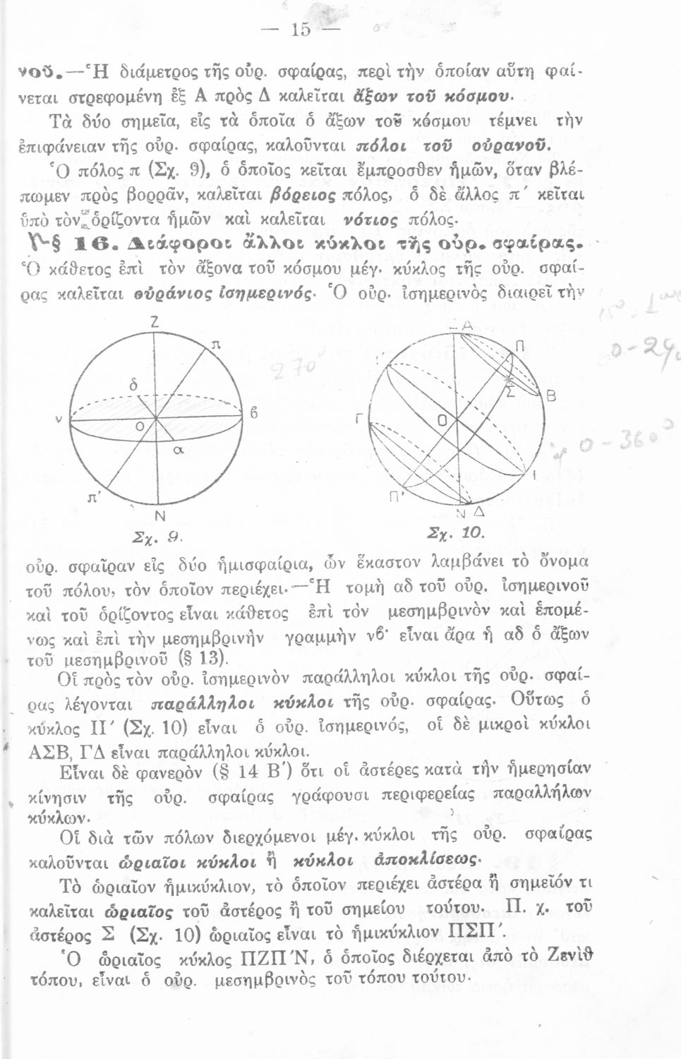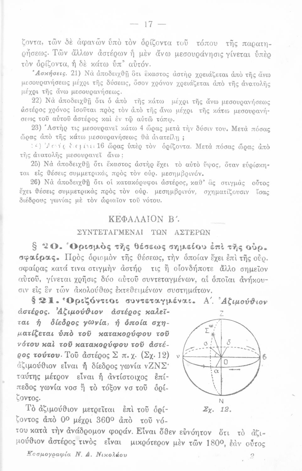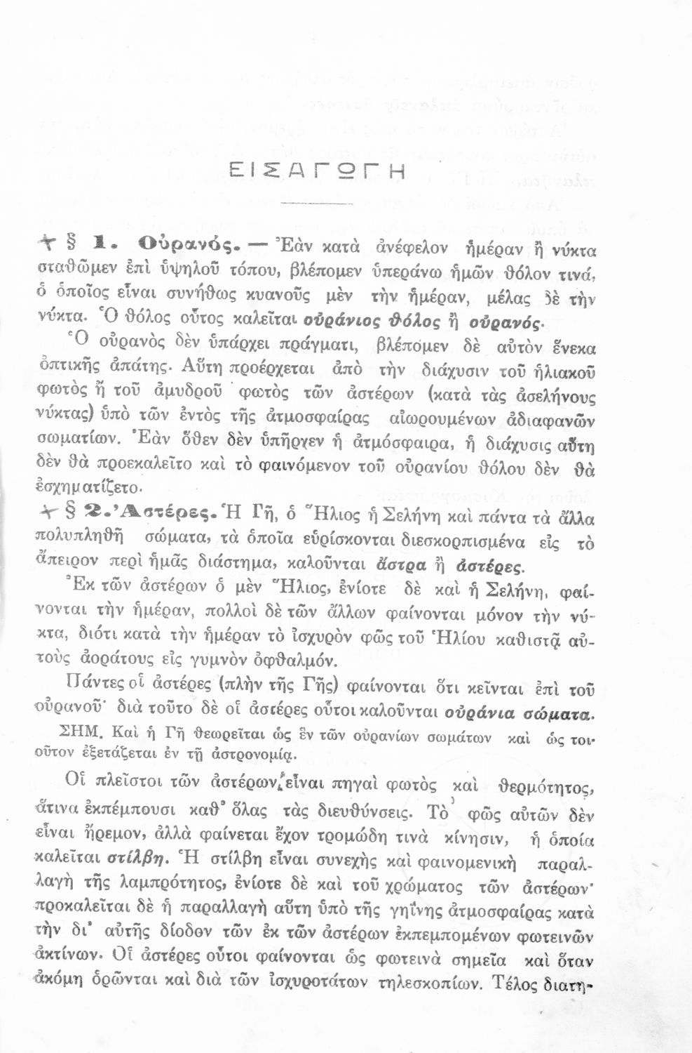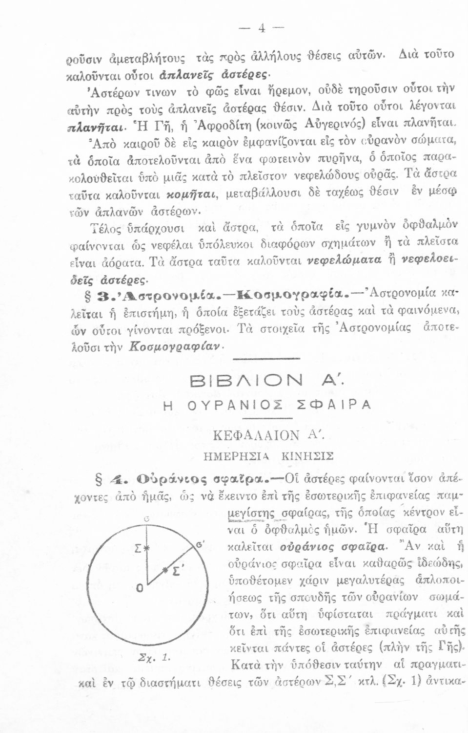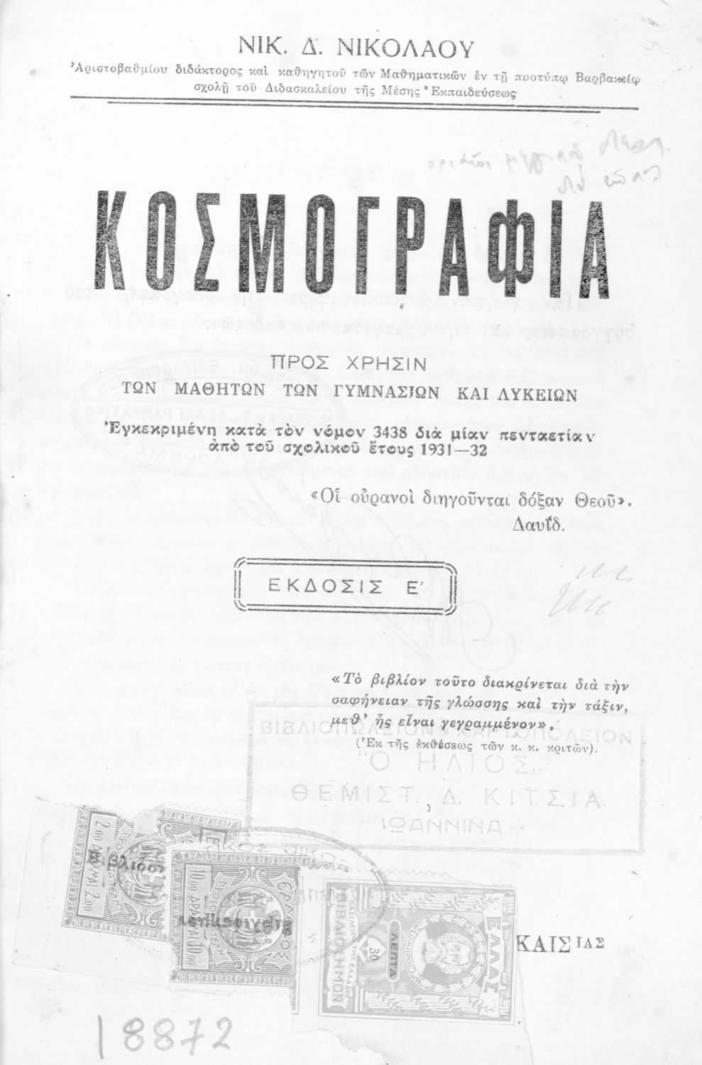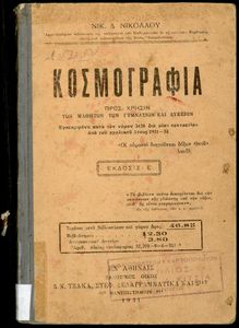 Παρουσίαση περιεχομένου: Σχολικό εγχειρίδιο Κοσμογραφίας Γυμνασίου και Λυκείου που εστιάζει στην κίνηση των πλανητών και στον τρόπο υπολογισμού της τροχιάς τους. Ο συγγραφέας ήταν καθηγητής στην πρότυπη Βαρβάκειο σχολή του Διδασκαλείου Μέσης Εκπαίδευσης.