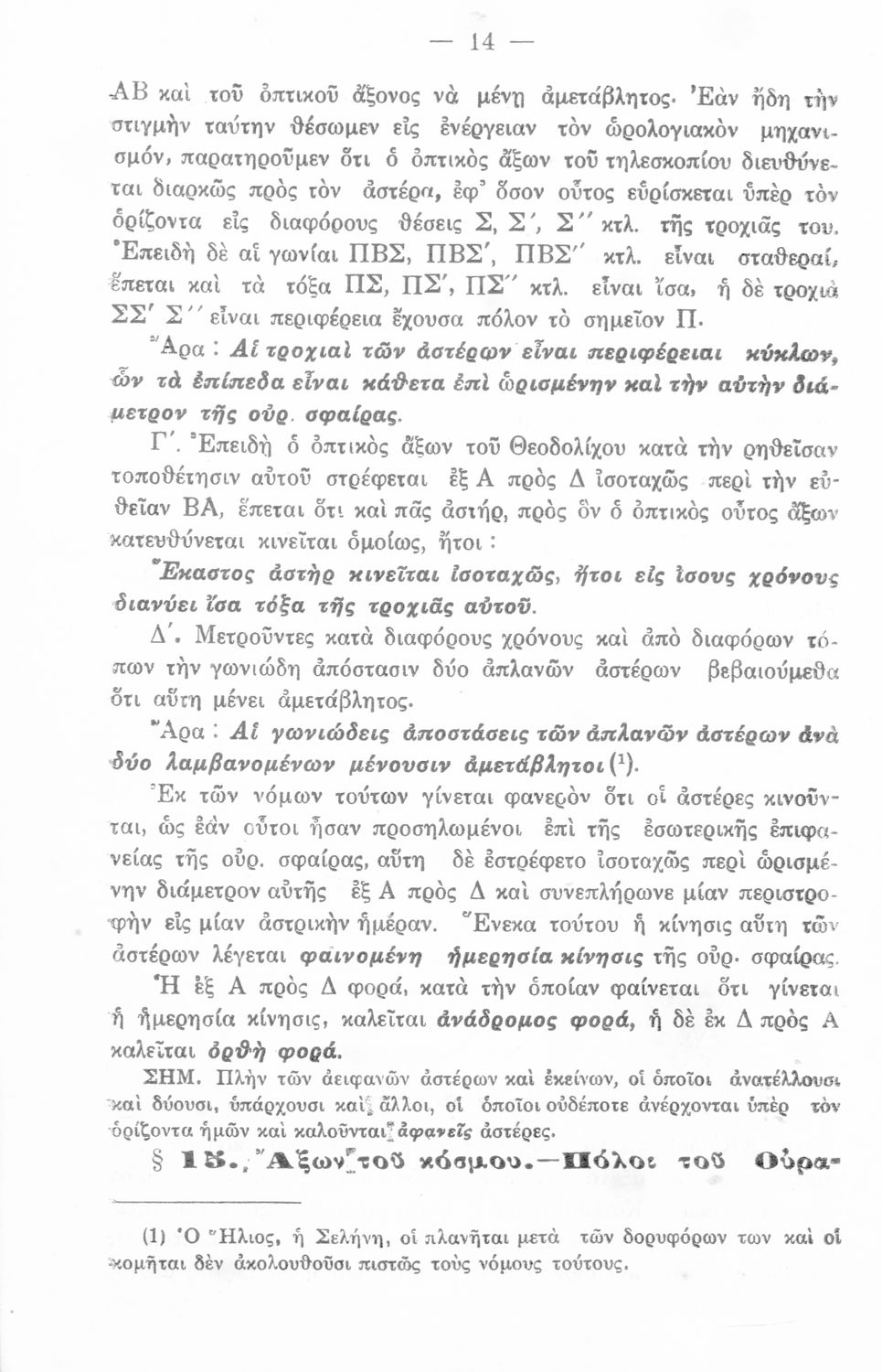 Σχολικό εγχειρίδιο Κοσμογραφίας Γυμνασίου και Λυκείου που εστιάζει στην κίνηση των πλανητών και στον τρόπο υπολογισμού της τροχιάς τους. Ο συγγραφέας ήταν καθηγητής στην πρότυπη Βαρβάκειο σχολή του Διδασκαλείου Μέσης Εκπαίδευσης.