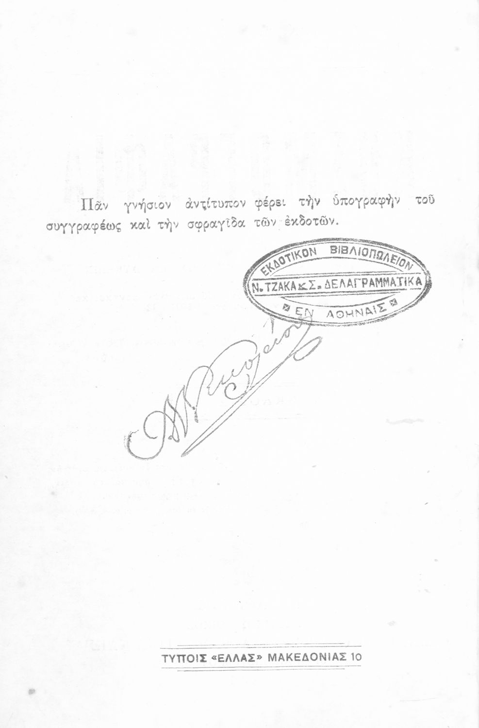 Εκδότης: Δημ. Ν. Τζάκας, Στεφ. Δελαγραμμάτικας