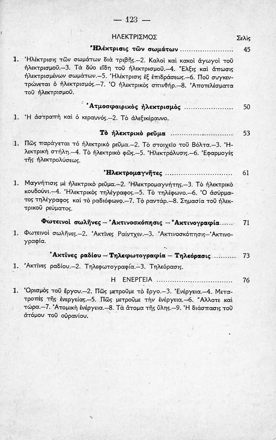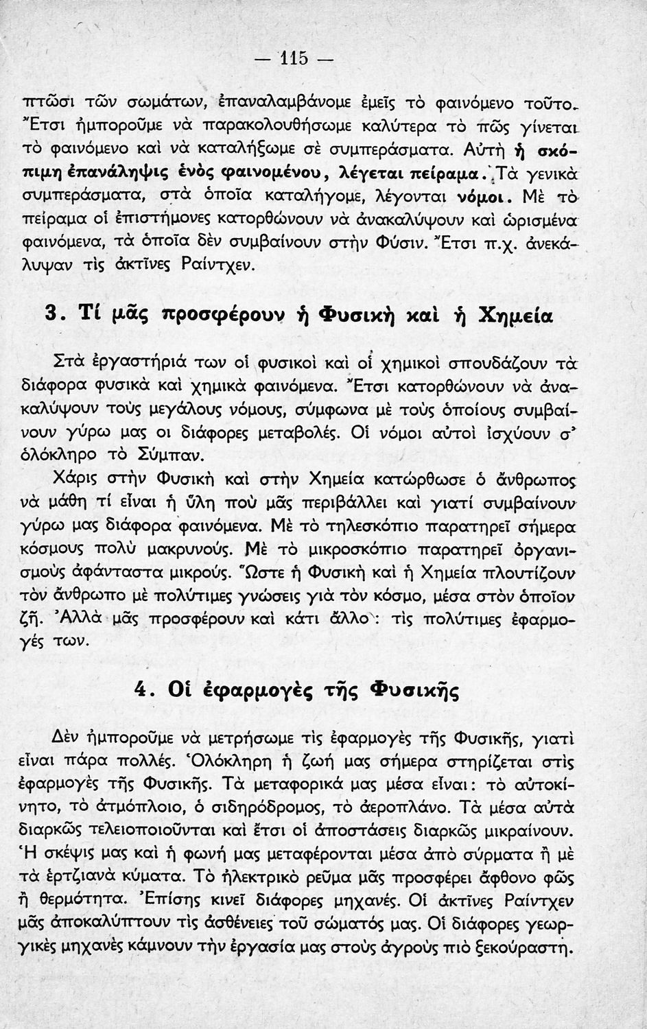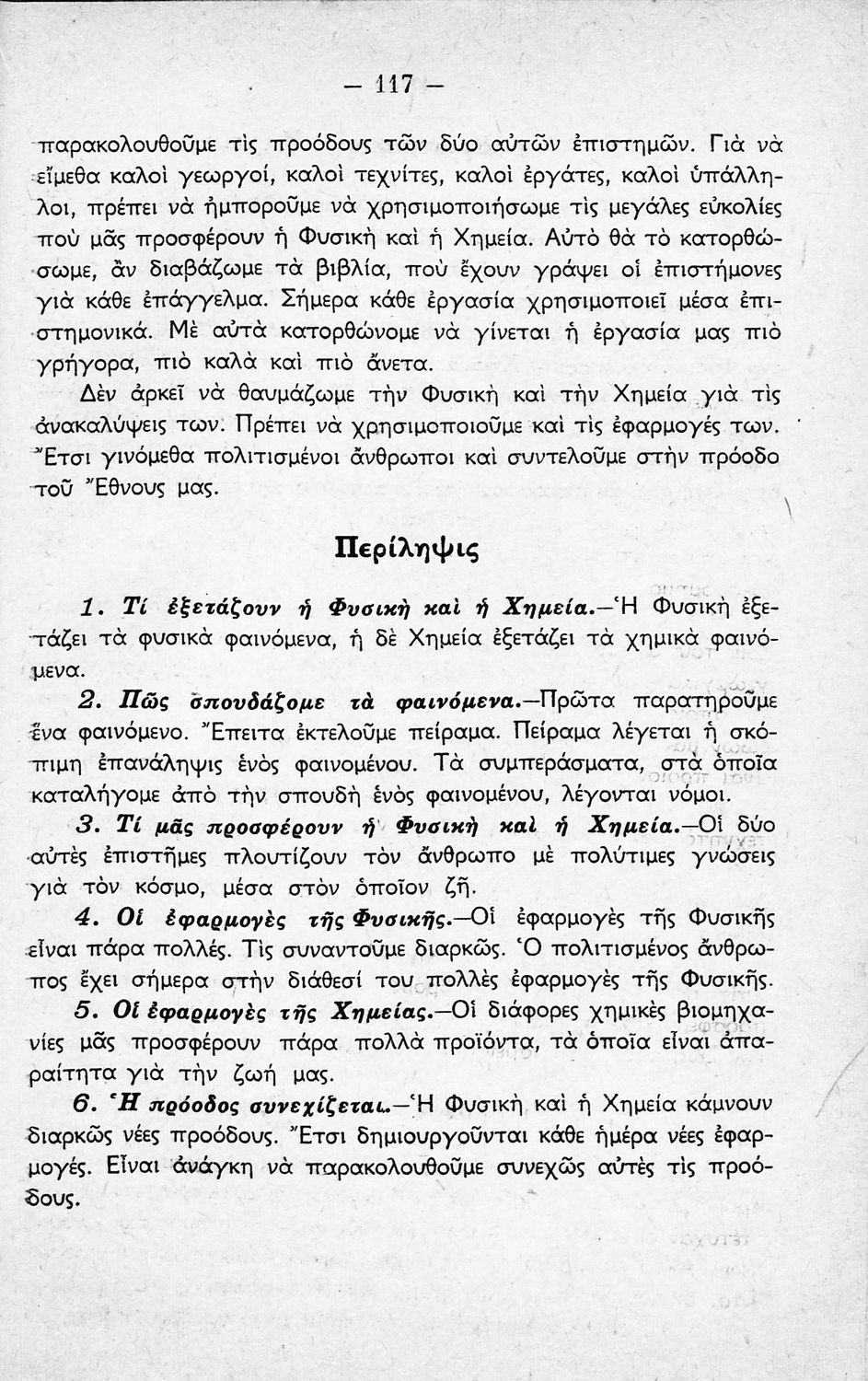 Βαθμίδα εκπαίδευσης: Πρωτοβάθμια Τάξη: ΣΤ' Δημοτικού Μάθημα: Φυσική Γλώσσα: Απλή καθαρεύουσα Παρουσίαση περιεχομένου: Μαθητικό βοήθημα της ΣΤ΄ Δημοτικού για το μάθημα της Φυσικής. Παρέχει βασικές γνώσεις της φυσικής επιστήμης και της χημείας. Αναλύει τις ιδιότητες των σωμάτων, καθώς και του ήχου, του ηλεκτρισμού και του φωτός. Σχετικά με τη χημεία αναφέρεται στα μέταλλα, στα οξέα, τις βάσεις, τα άλατα. Αναφέρεται στην πρακτική εφαρμογή της φυσικής και της χημείας στην καθημερινότητά. Επίσης, περιλαμβάνει πολλά από τα όργανα, που χρησιμοποιούνται στη φυσική, και τη χημεία. Περιέχει εικόνες και σχεδιαγράμματα τα οποία βοηθούν τη διδασκαλία. Προτείνεται μια συγκεκριμένη δομή για τη διδασκαλία σύμφωνα με την οποία το μάθημα διαρθρώνεται αρχικά με την ανάγνωση, που αναφέρεται στη θεωρία, στην περίληψη των σημαντικότερων σημείων, στις ερωτήσεις κατανόησης και τέλος στο γύμνασμα, το οποίο είναι η πρακτική εφαρμογή για την εμπέδωση της θεωρίας. |