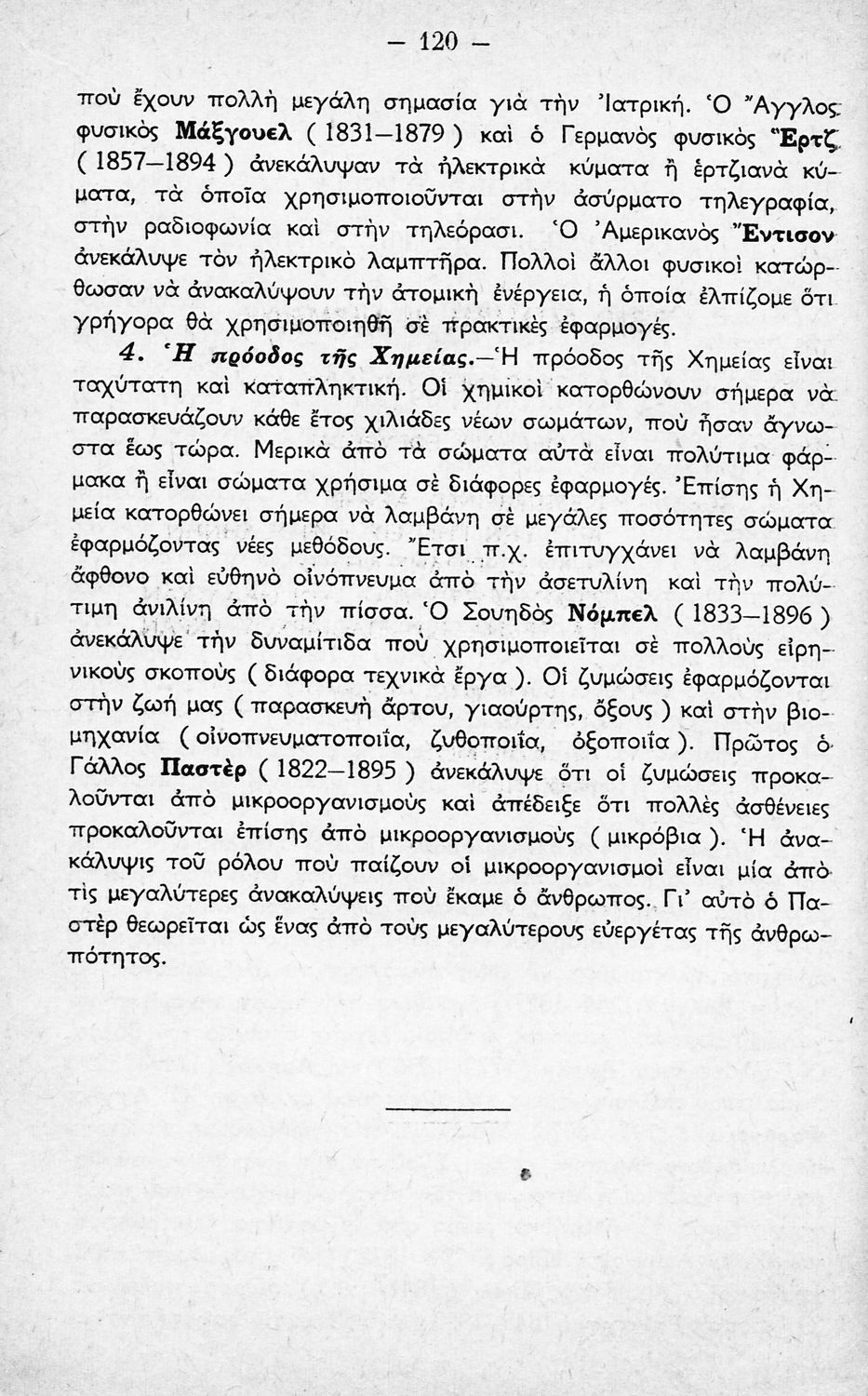 LDR 02425 2200205 4500 035 ## _a01-18874 040 ## _aΙνστιτούτο Εκπαιδευτικής Πολιτικής 041 ## _ael 100 ## _aΑλκ. Ε Μάζης _aΙωαν. Γ. Δρίβας 110 ## _a18874 245 0# _aΦυσική και Χημεία δια την ΣΤ΄ τάξιν του Δημοτικού Σχολείου 260 ## _aΑθήνα _bΙωάννης Δ. Κολλάρος, Βιβλιοπωλείο της "Εστίας" _c1955 300 ## _a124 _bΣκίτσα, σχεδιαγράμματα (ασπρόμαυρα) 520 ## _aΜαθητικό βοήθημα της ΣΤ΄ Δημοτικού για το μάθημα της Φυσικής. Παρέχει βασικές γνώσεις της φυσικής επιστήμης και της χημείας. Αναλύει τις ιδιότητες των σωμάτων, καθώς και του ήχου, του ηλεκτρισμού και του φωτός. Σχετικά με τη χημεία αναφέρεται στα μέταλλα, στα οξέα, τις βάσεις, τα άλατα. Αναφέρεται στην πρακτική εφαρμογή της φυσικής και της χημείας στην καθημερινότητά. Επίσης, περιλαμβάνει πολλά από τα όργανα, που χρησιμοποιούνται στη φυσική, και τη χημεία. Περιέχει εικόνες και σχεδιαγράμματα τα οποία βοηθούν τη διδασκαλία. Προτείνεται μια συγκεκριμένη δομή για τη διδασκαλία σύμφωνα με την οποία το μάθημα διαρθρώνεται αρχικά με την ανάγνωση, που αναφέρεται στη θεωρία, στην περίληψη των σημαντικότερων σημείων, στις ερωτήσεις κατανόησης και τέλος στο γύμνασμα, το οποίο είναι η πρακτική εφαρμογή για την εμπέδωση της θεωρίας. 521 ## _aΣΤ' Δημοτικού 522 ## _aΕλλάδα 546 ## _aΑπλή καθαρεύουσα 563 ## _aΜαλακό Εξώφυλλο 583 ## _a80316/13-7-1955 _c1955 650 #4 _aΆλας _aΒάση _aΗλεκτρισμός _aΉχος _aΚάτοπτρα _aΟξύ _aΦακοί _aΦως