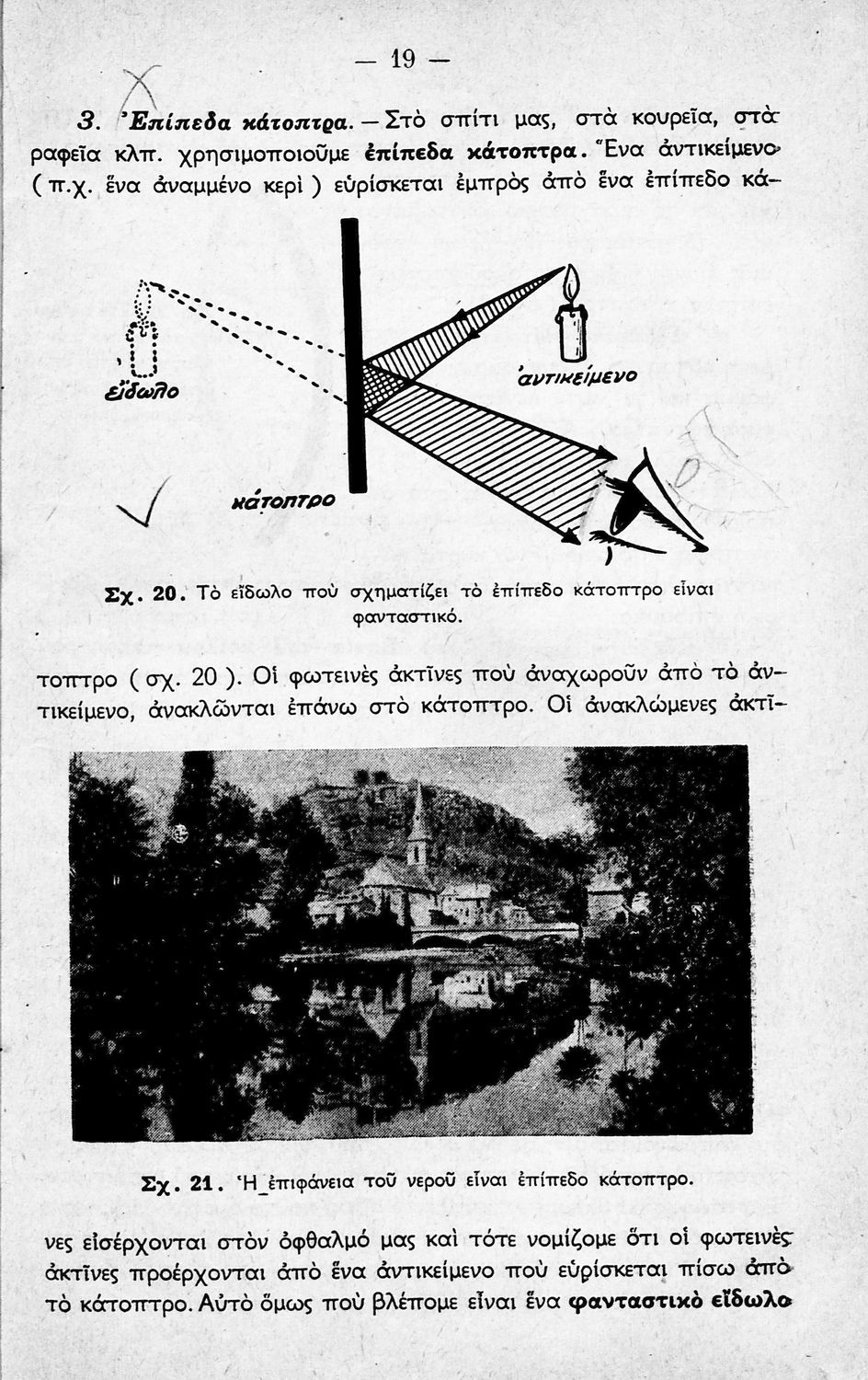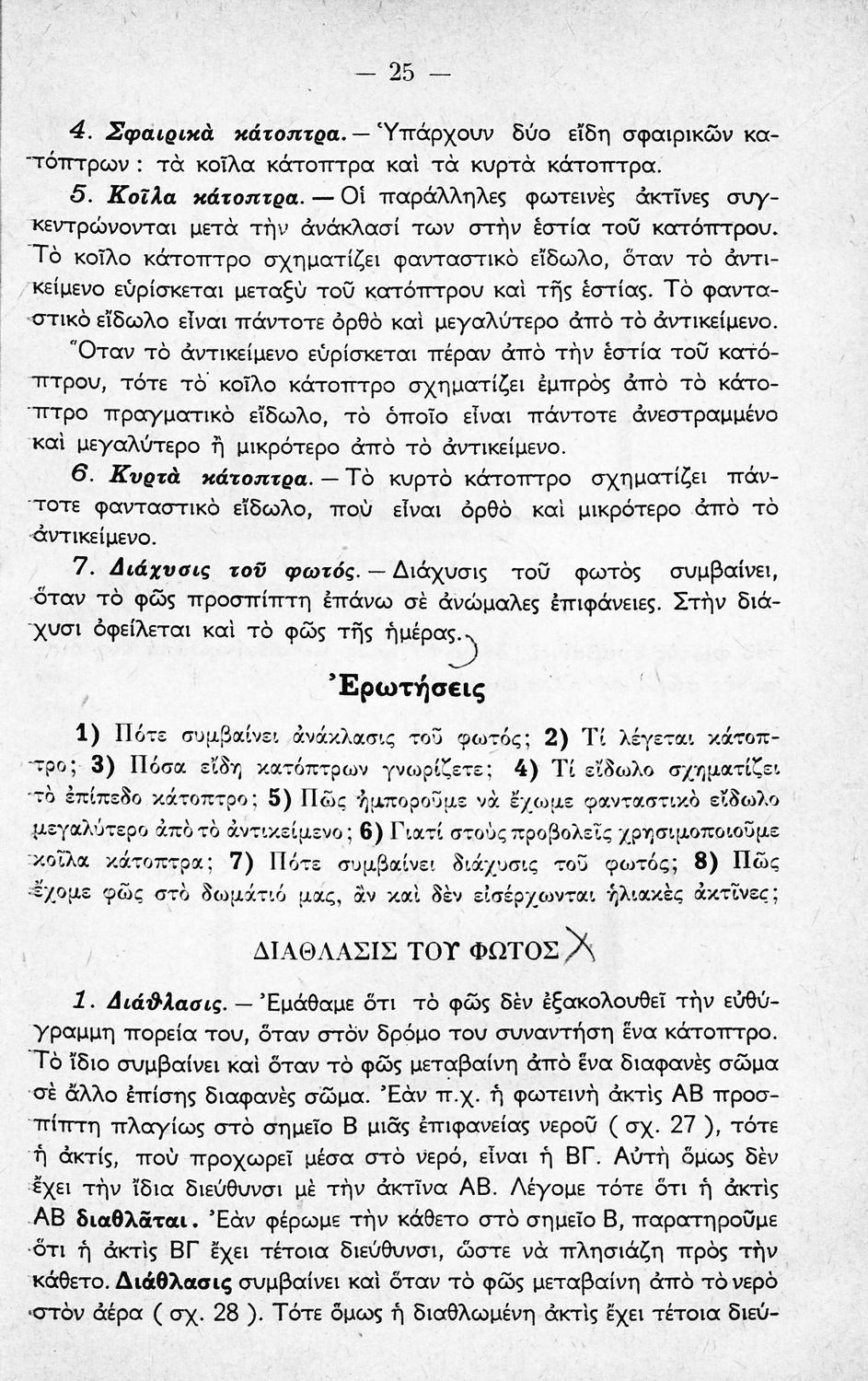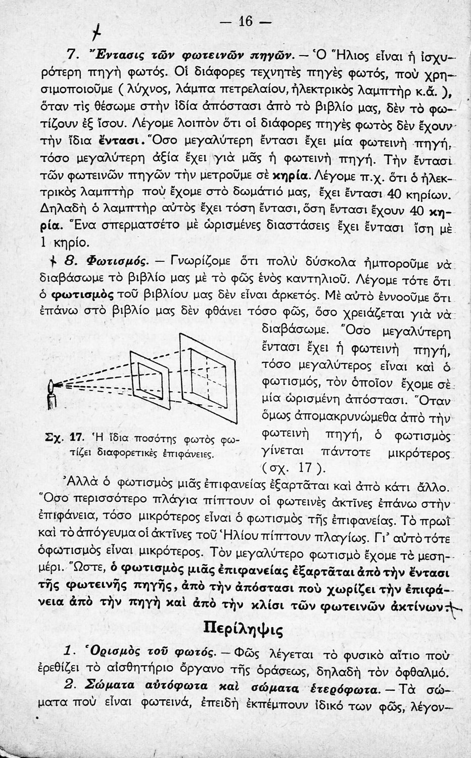 Βαθμίδα εκπαίδευσης: Πρωτοβάθμια Τάξη: ΣΤ' Δημοτικού Μάθημα: Φυσική Γλώσσα: Απλή καθαρεύουσα Παρουσίαση περιεχομένου: Μαθητικό βοήθημα της ΣΤ΄ Δημοτικού για το μάθημα της Φυσικής. Παρέχει βασικές γνώσεις της φυσικής επιστήμης και της χημείας. Αναλύει τις ιδιότητες των σωμάτων, καθώς και του ήχου, του ηλεκτρισμού και του φωτός. Σχετικά με τη χημεία αναφέρεται στα μέταλλα, στα οξέα, τις βάσεις, τα άλατα. Αναφέρεται στην πρακτική εφαρμογή της φυσικής και της χημείας στην καθημερινότητά. Επίσης, περιλαμβάνει πολλά από τα όργανα, που χρησιμοποιούνται στη φυσική, και τη χημεία. Περιέχει εικόνες και σχεδιαγράμματα τα οποία βοηθούν τη διδασκαλία. Προτείνεται μια συγκεκριμένη δομή για τη διδασκαλία σύμφωνα με την οποία το μάθημα διαρθρώνεται αρχικά με την ανάγνωση, που αναφέρεται στη θεωρία, στην περίληψη των σημαντικότερων σημείων, στις ερωτήσεις κατανόησης και τέλος στο γύμνασμα, το οποίο είναι η πρακτική εφαρμογή για την εμπέδωση της θεωρίας. |