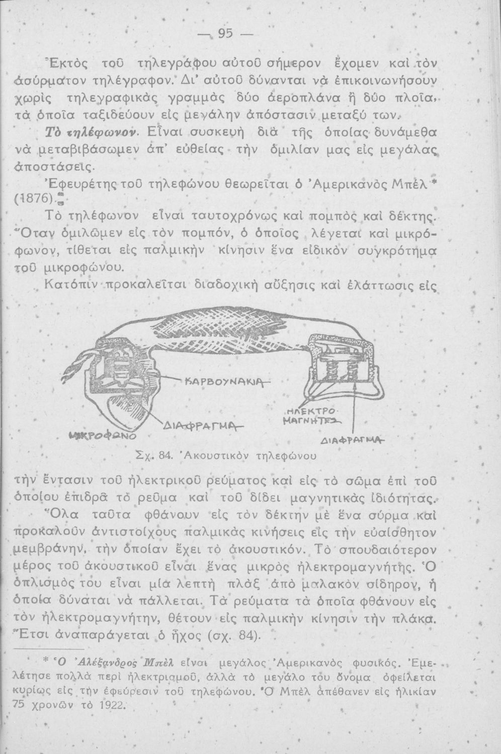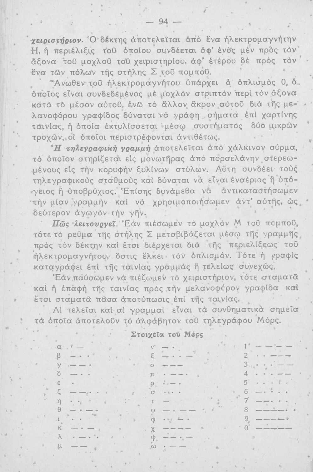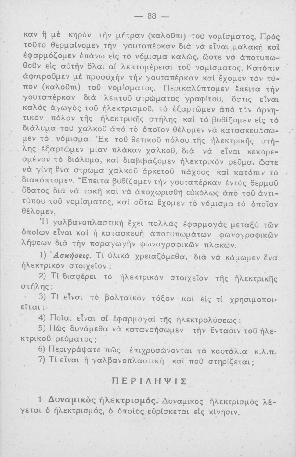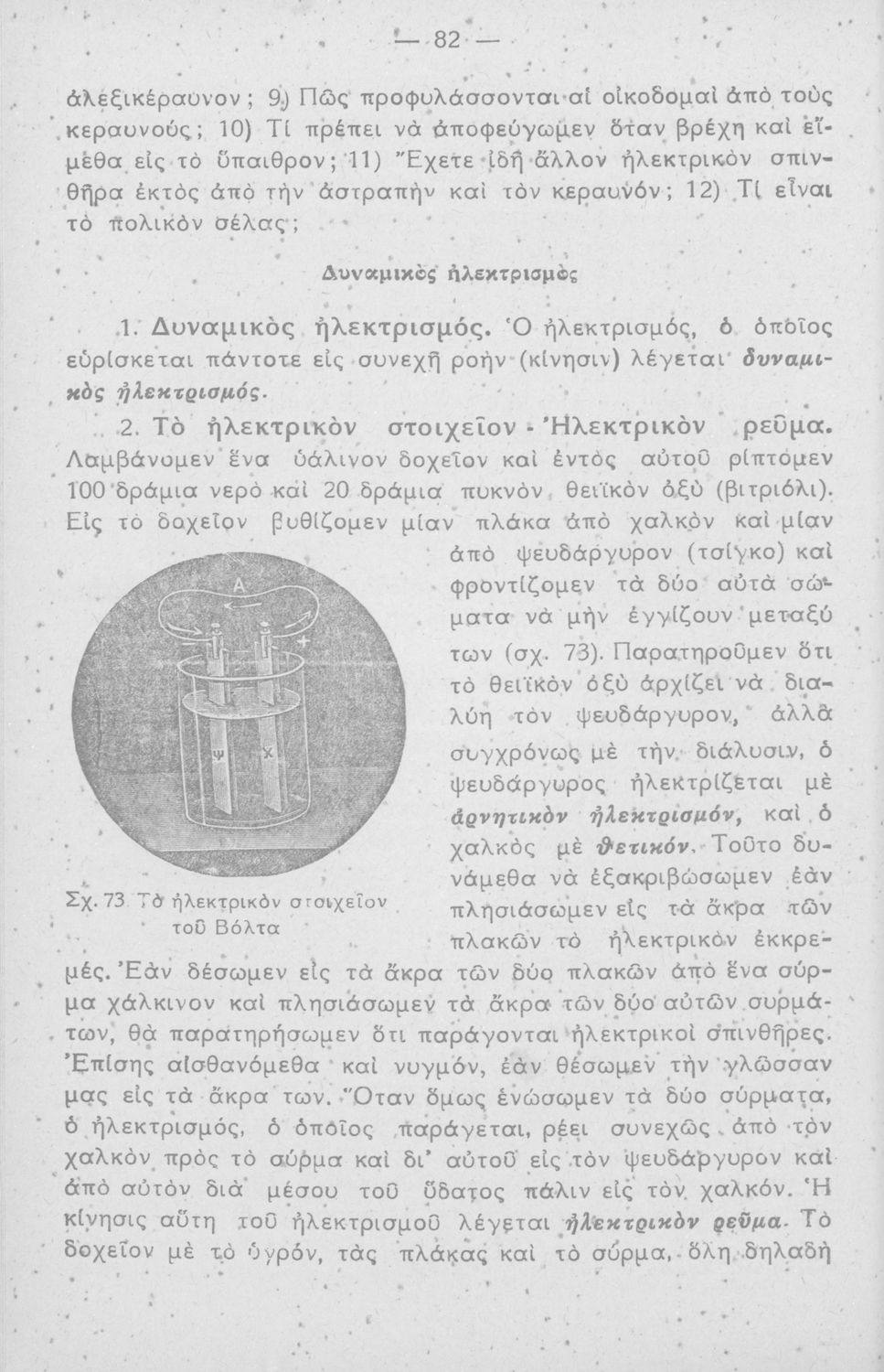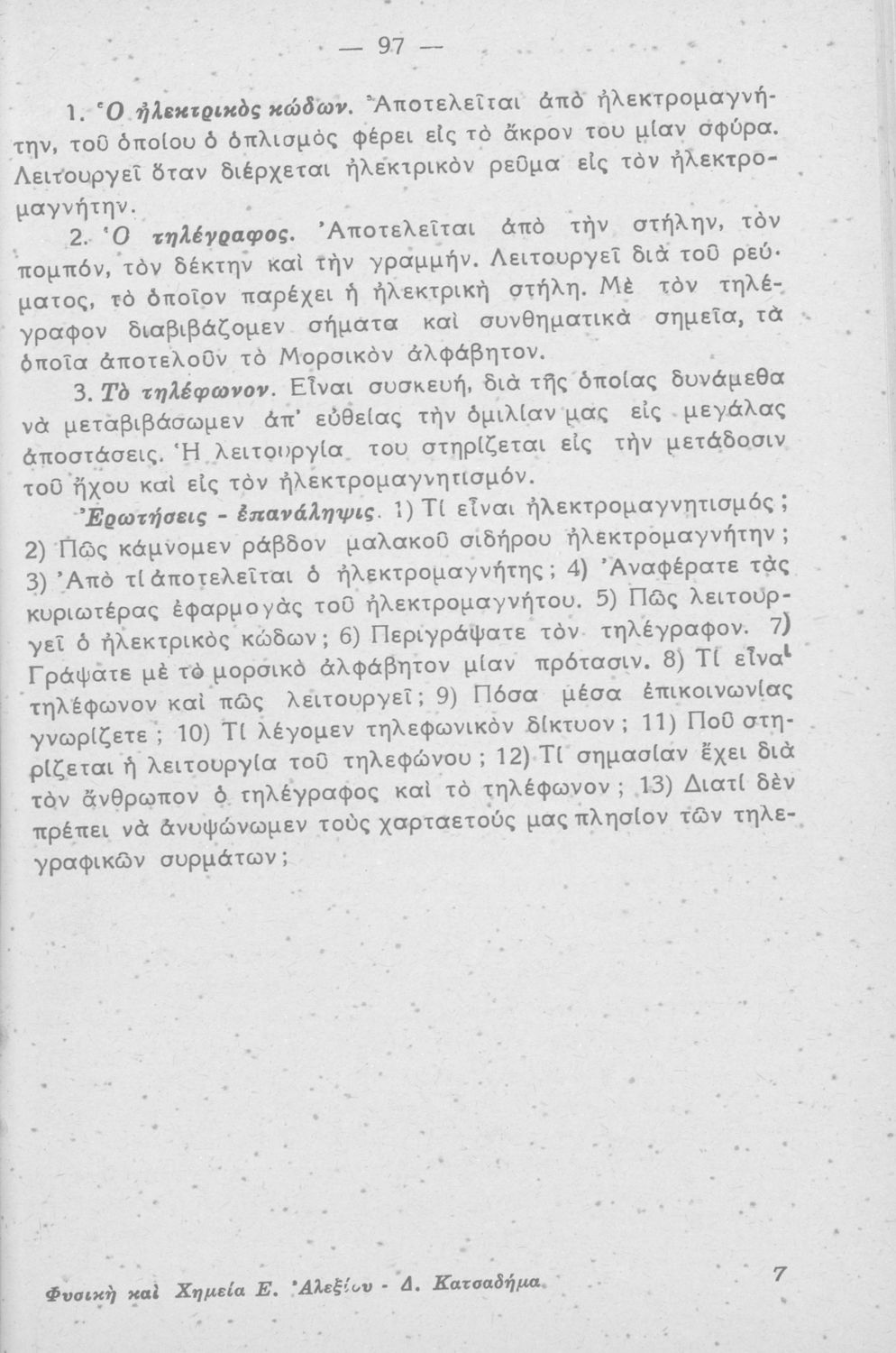 Βαθμίδα εκπαίδευσης: Πρωτοβάθμια Τάξη: ΣΤ' Δημοτικού Μάθημα: Φυσική Γλώσσα: Απλή καθαρεύουσα Παρουσίαση περιεχομένου: Μαθητικό βοήθημα της ΣΤ΄ Δημοτικού για το μάθημα της Φυσικής στο Δημοτικό . Παρέχει βασικές γνώσεις της φυσικής επιστήμης και της χημείας. Αναλύει τις ιδιότητες των σωμάτων, καθώς και του ήχου, του ηλεκτρισμού και του φωτός. Σχετικά με τη χημεία αναφέρεται στα μέταλλα, στα οξέα, τις βάσεις, τα άλατα. Αναφέρεται στην πρακτική εφαρμογή της φυσικής και της χημείας στην καθημερινότητά. Επίσης, περιλαμβάνει πολλά από τα όργανα, που χρησιμοποιούνται στη φυσική, και τη χημεία. Περιέχει εικόνες και σχεδιαγράμματα τα οποία βοηθούν τη διδασκαλία. |