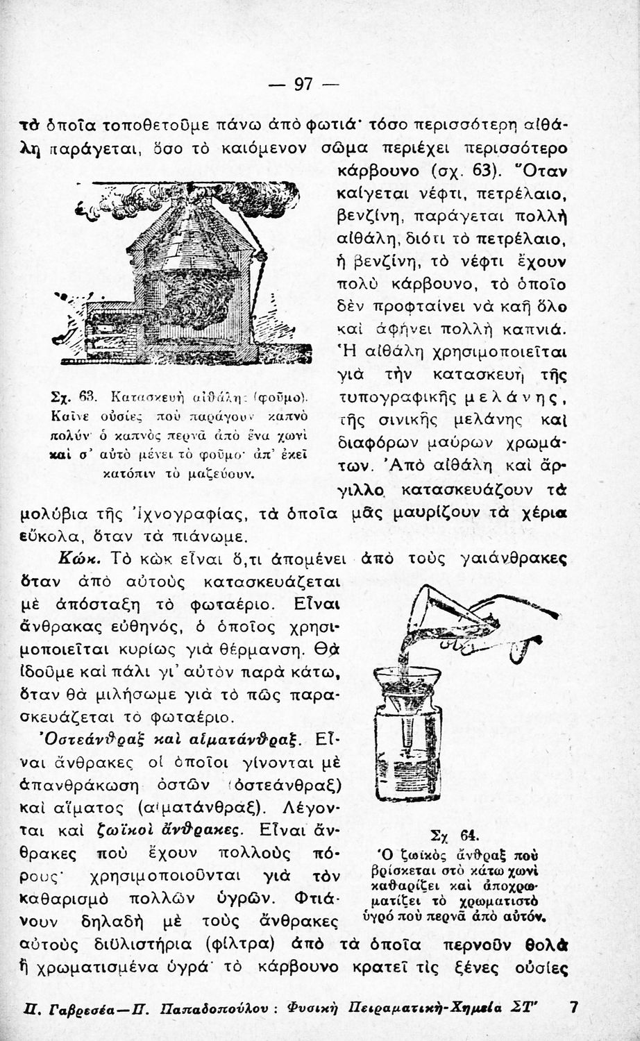 Σχολικό εγχειρίδιο Φυσικής Πειραματικής ΣΤ΄ Δημοτικού που εστιάζει στα φυσικά φαινόμενα (ακουστική, οπτική, μαγνητισμός και ηλεκτρισμός) και στα χημικά φαινόμενα (είδη του άνθρακα, παραγωγή πίσσας, ναφθαλίνης,