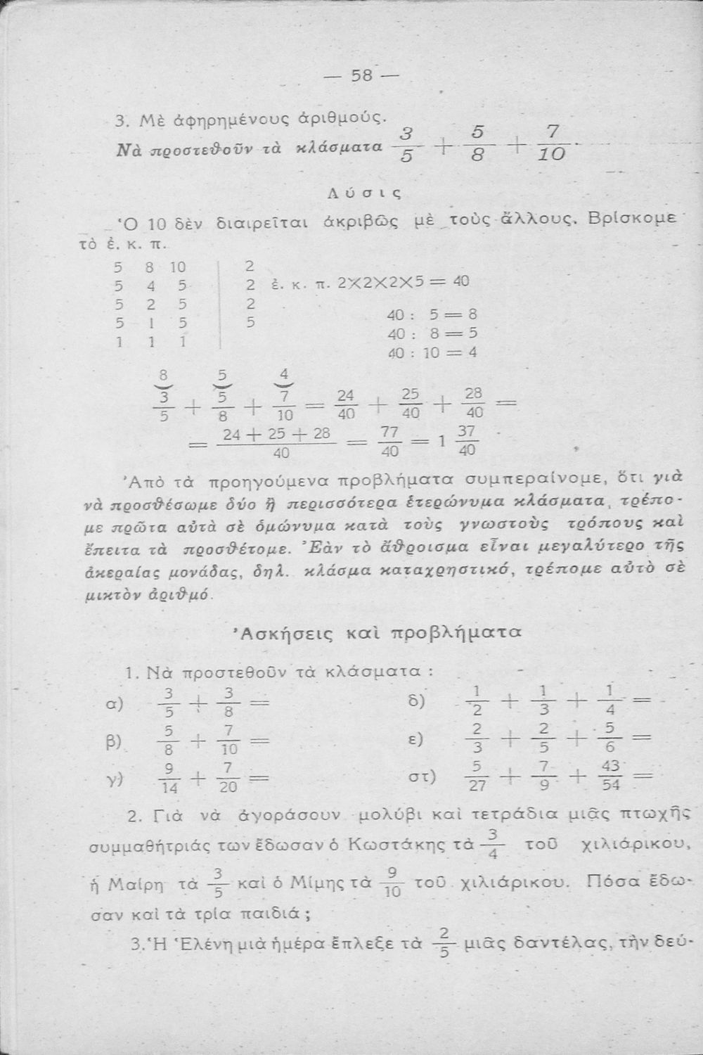 Παρουσίαση περιεχομένου: Μαθητικό βοήθημα Αριθμητικής για τις Ε΄ και ΣΤ΄ Δημοτικού που περιέχει ασκήσεις με επιχειρηματικό προσανατολισμό και εστιάζει στις αριθμητικές πράξεις με κλάσματα και την απλή μέθοδο των τριών.