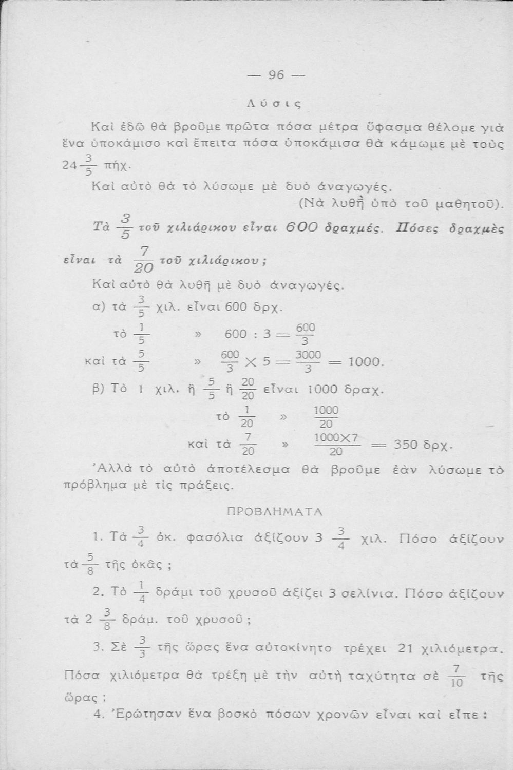 Παρουσίαση περιεχομένου: Μαθητικό βοήθημα Αριθμητικής για τις Ε΄ και ΣΤ΄ Δημοτικού που περιέχει ασκήσεις με επιχειρηματικό προσανατολισμό και εστιάζει στις αριθμητικές πράξεις με κλάσματα και την απλή μέθοδο των τριών.