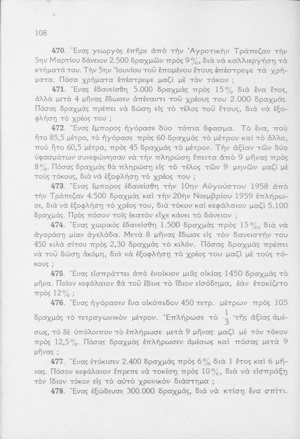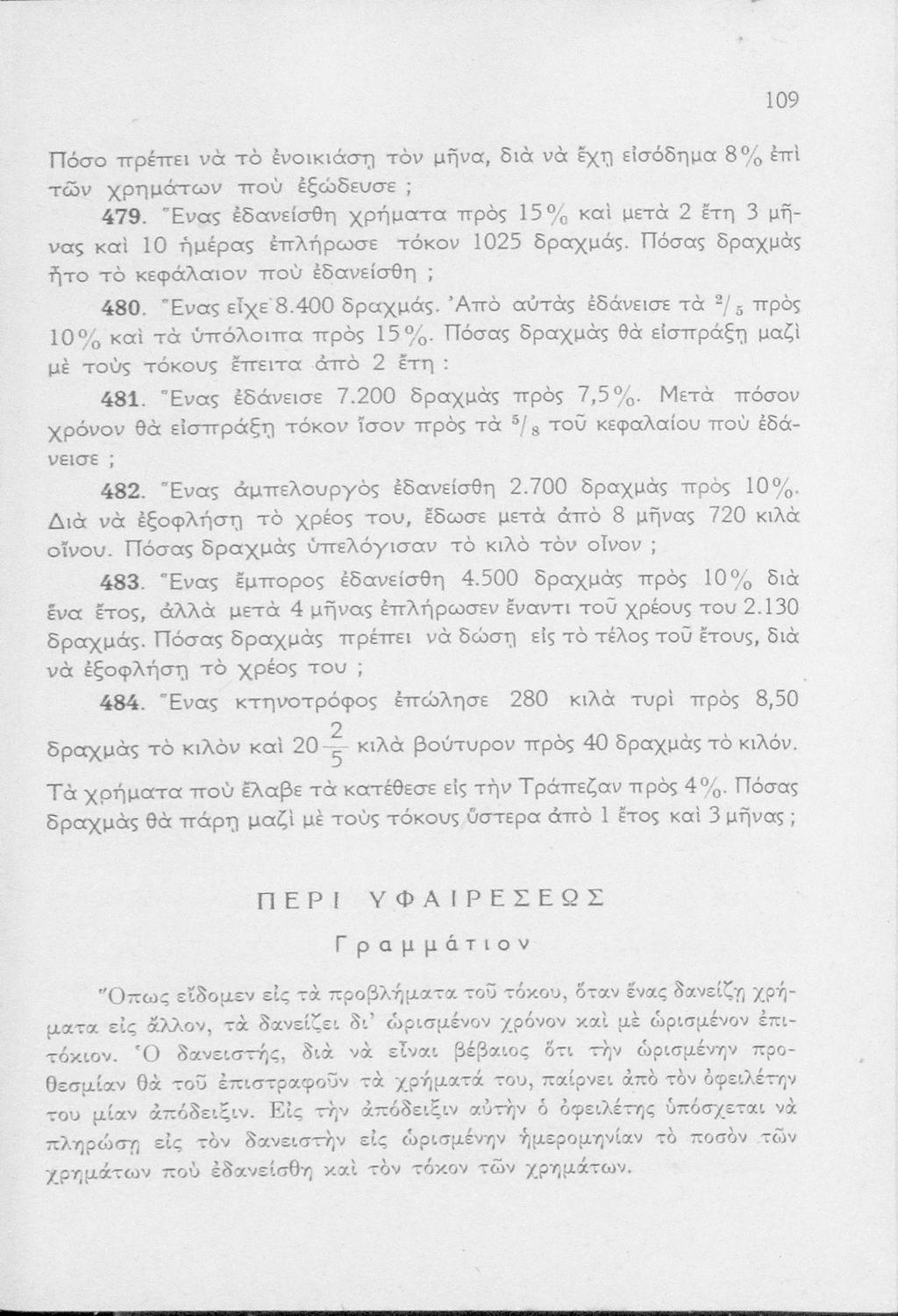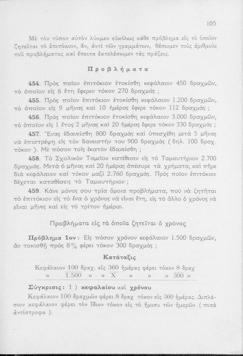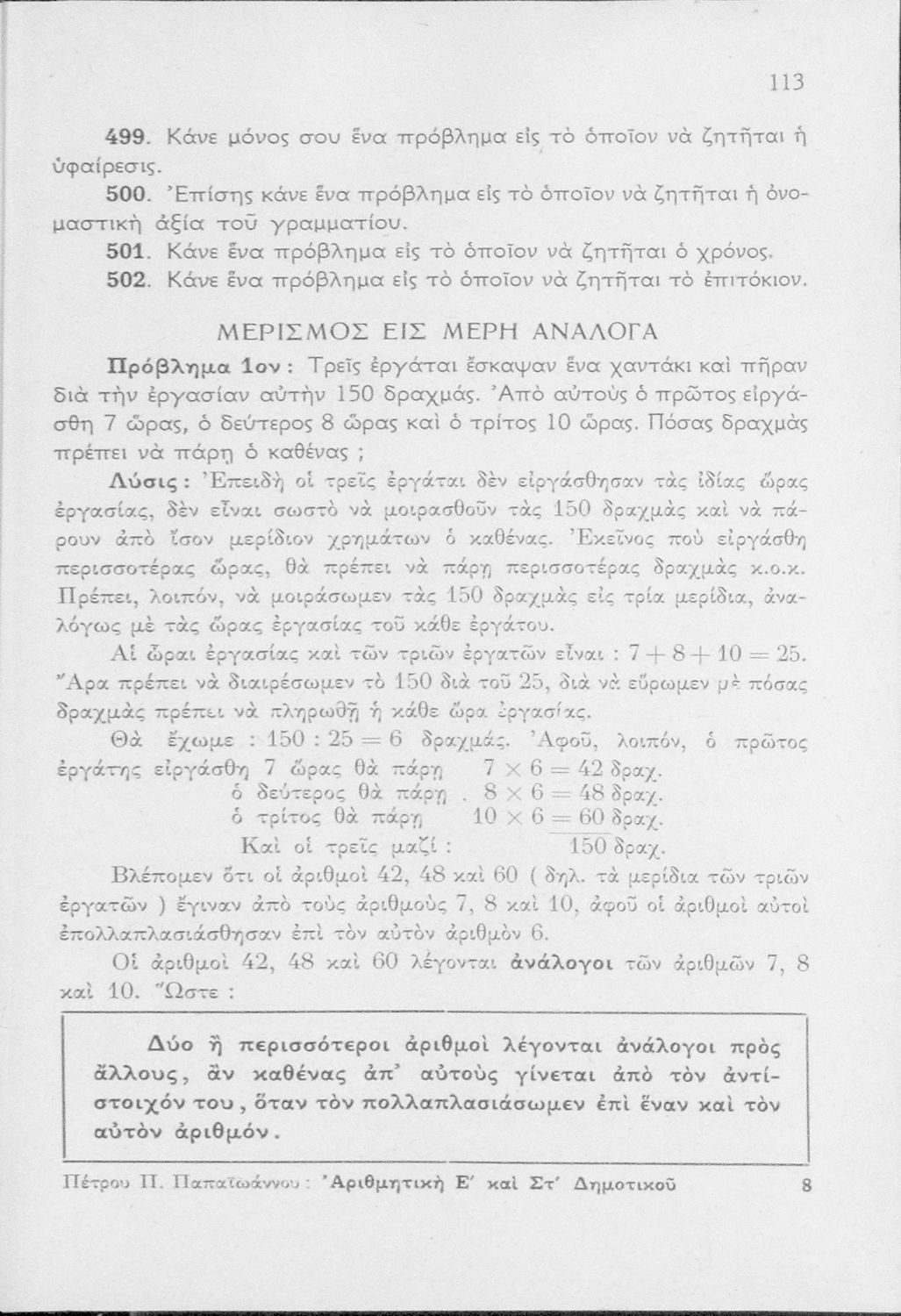 Μαθητικό βοήθημα Αριθμητικής για τις Ε΄ και ΣΤ΄ Δημοτικού που περιέχει ασκήσεις με επιχειρηματικό προσανατολισμό και εστιάζει στις αριθμητικές πράξεις με κλάσματα και την απλή μέθοδο των τριών. Η παρούσα έκδοση έχει μεταγλωττιστεί στην καθαρεύουσα.