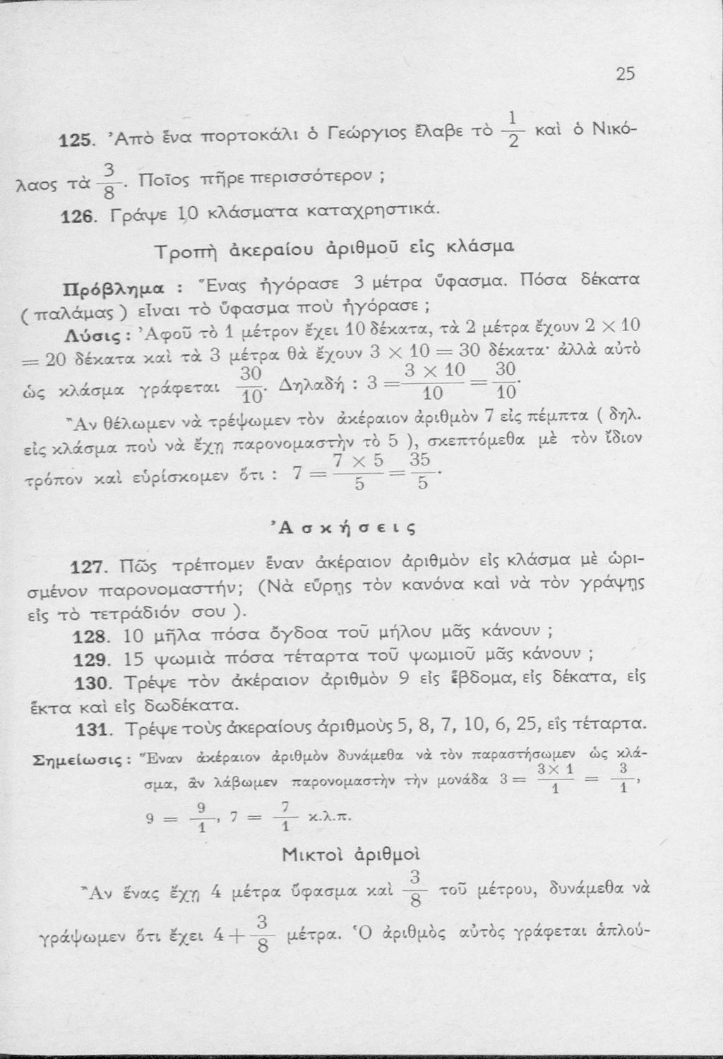 Μαθητικό βοήθημα Αριθμητικής για τις Ε΄ και ΣΤ΄ Δημοτικού που περιέχει ασκήσεις με επιχειρηματικό προσανατολισμό και εστιάζει στις αριθμητικές πράξεις με κλάσματα και την απλή μέθοδο των τριών. Η παρούσα έκδοση έχει μεταγλωττιστεί στην καθαρεύουσα.