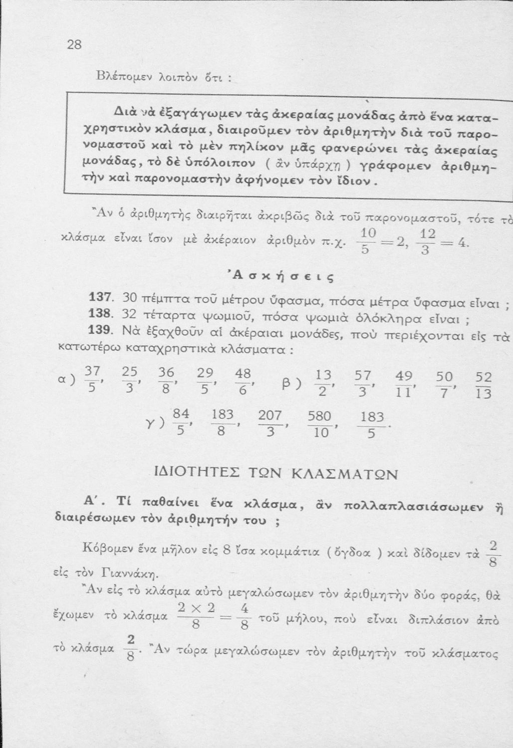 Αριθμητική Ε΄ και ΣΤ΄ τάξεως του Δημοτικού Σχολείου