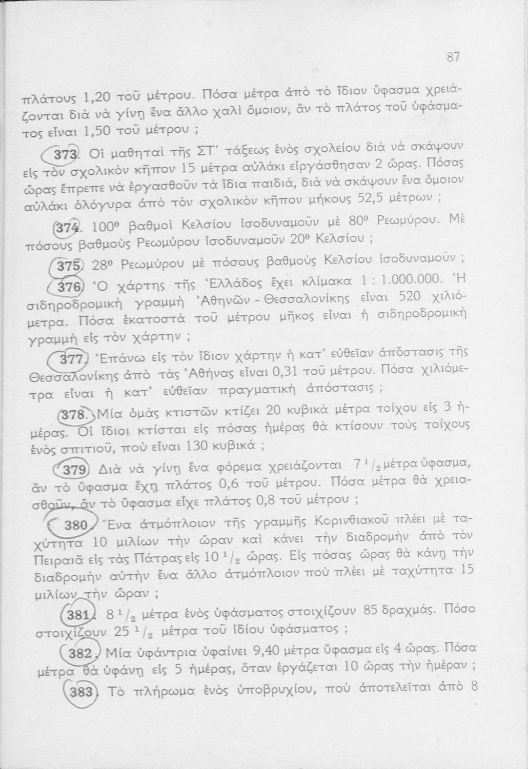 Σχολικό εγχειρίδιο Μαθηματικών ΣΤ΄ Δημοτικού που περιλαμβάνει ασκήσεις λογιστικού χαρακτήρα και ασκήσεις μέτρησης γεωμετρικών σχημάτων. Φέρει το σύμβολο της δικτατορίας.