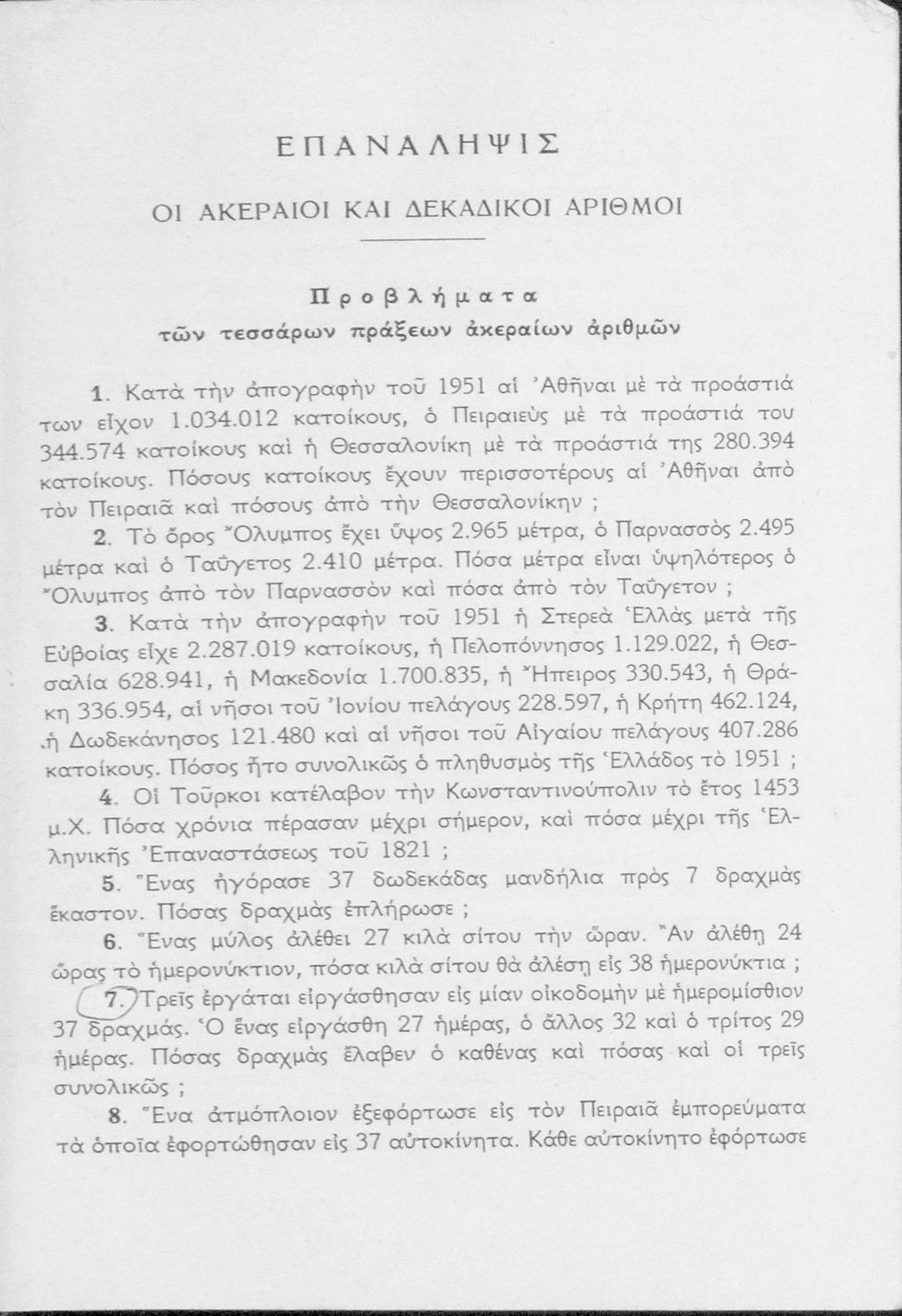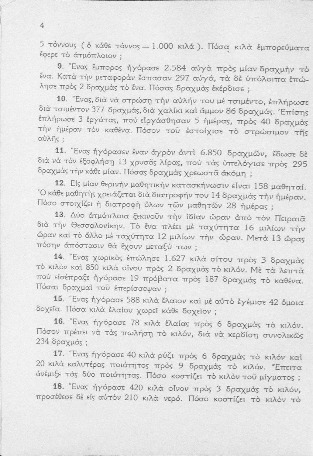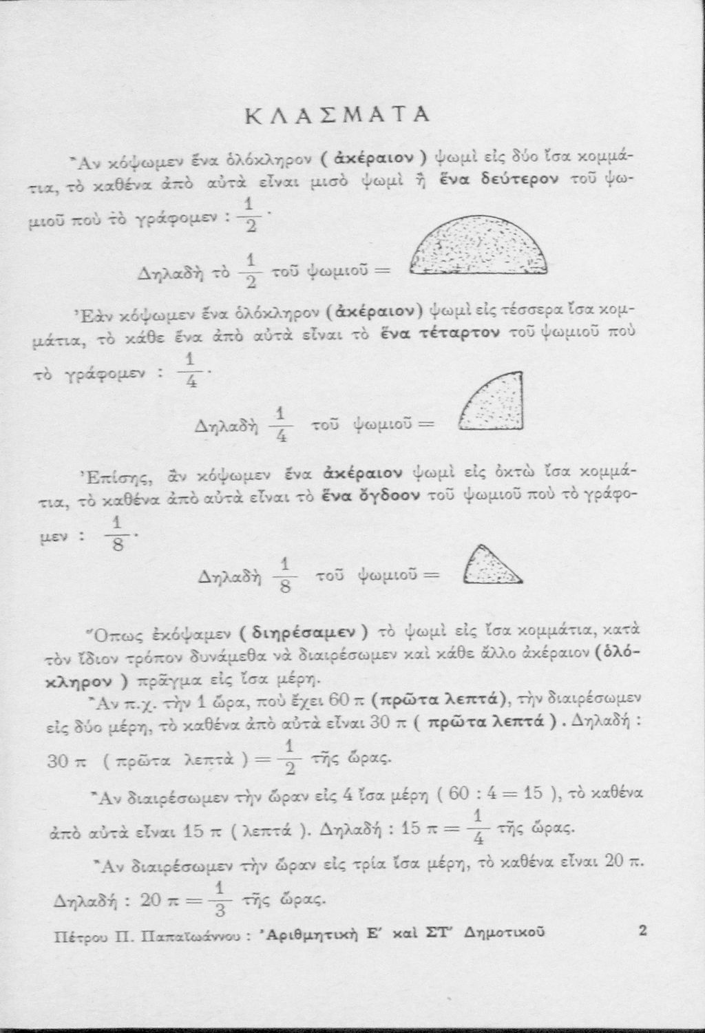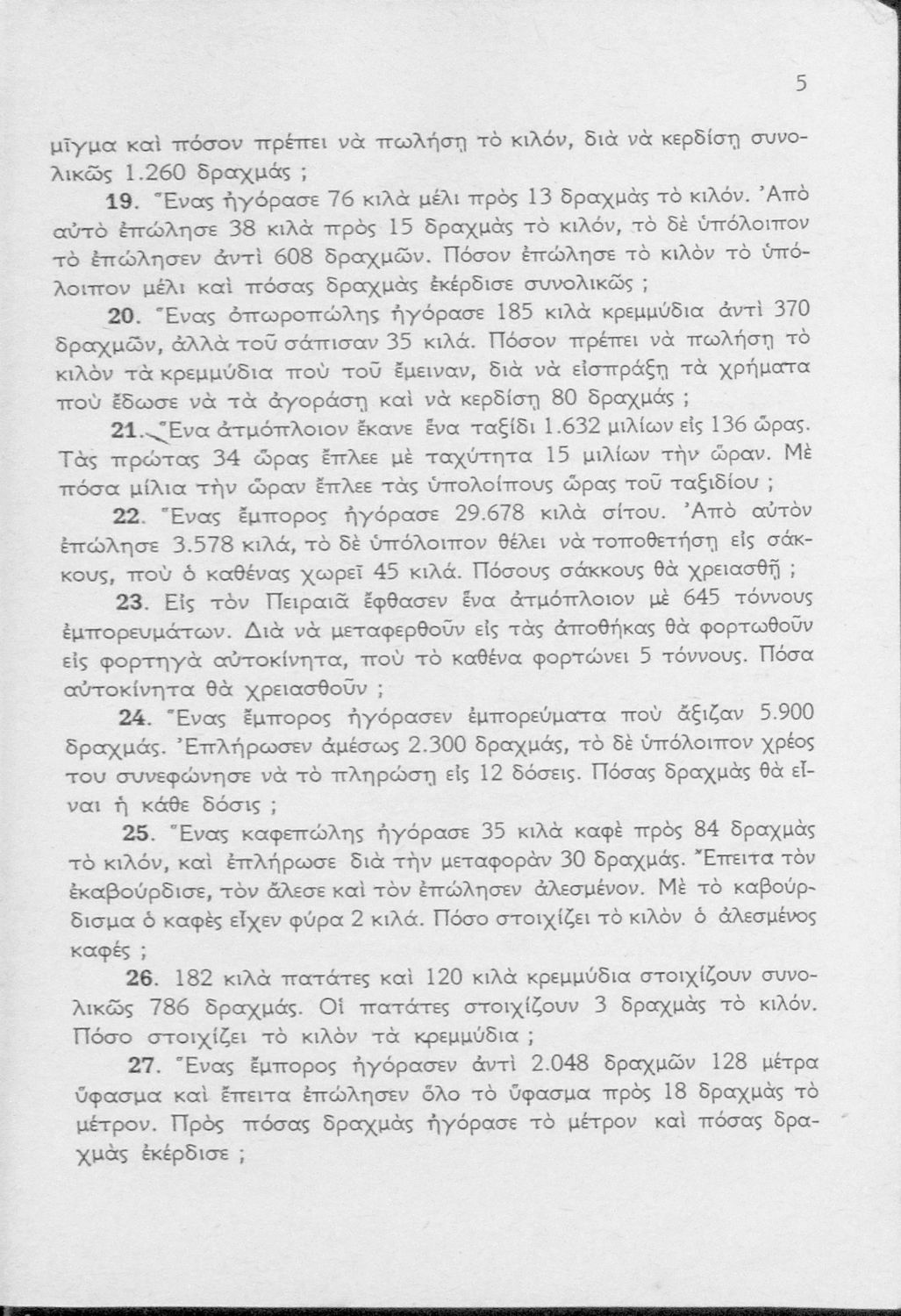 Μαθητικό βοήθημα Αριθμητικής για τις Ε΄ και ΣΤ΄ Δημοτικού που περιέχει ασκήσεις με επιχειρηματικό προσανατολισμό και εστιάζει στις αριθμητικές πράξεις με κλάσματα και την απλή μέθοδο των τριών. Η παρούσα έκδοση έχει μεταγλωττιστεί στην καθαρεύουσα.